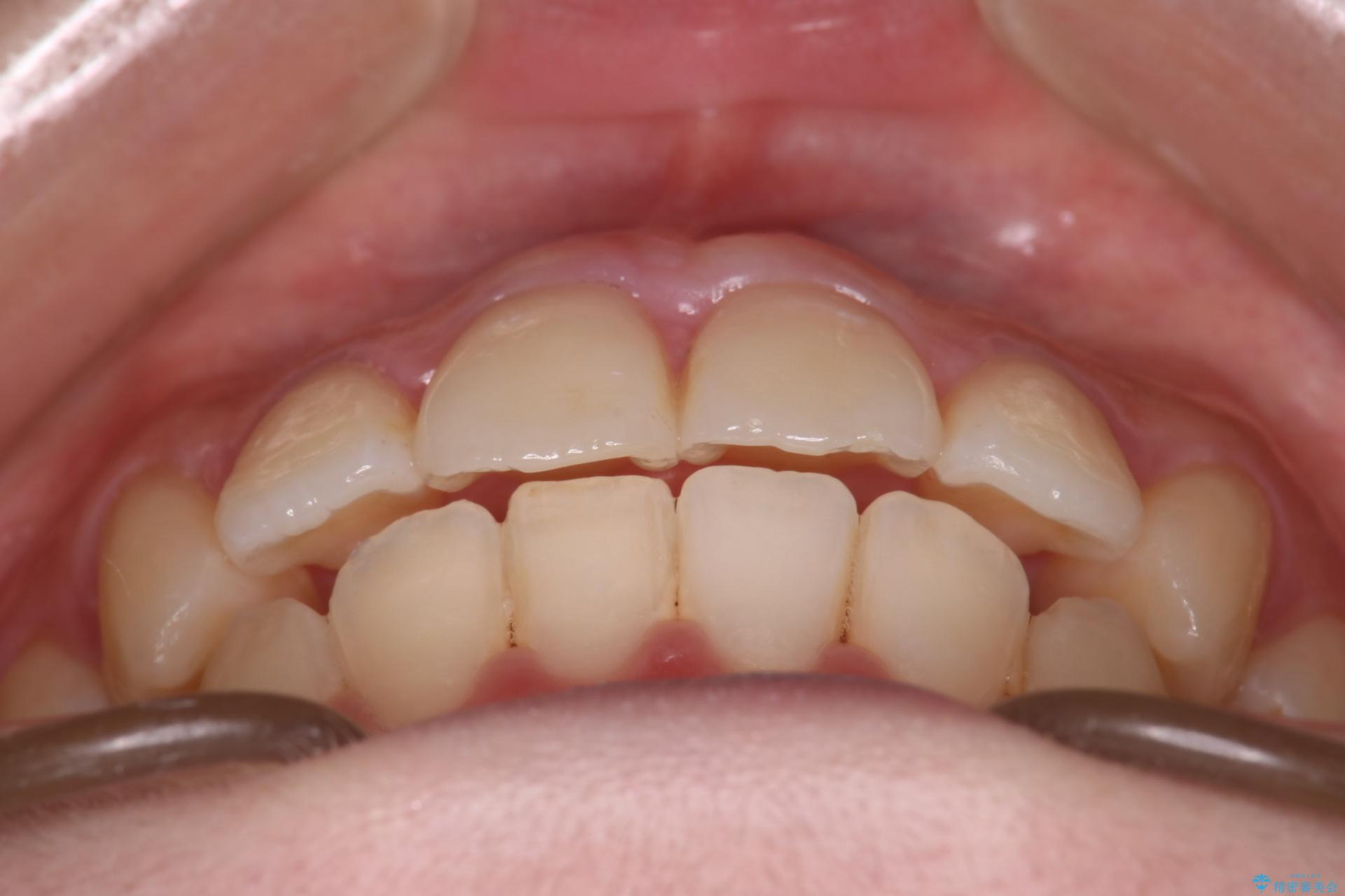 IPR(歯と歯の間を削る処置)と顎間ゴムを行いながら、インビザラインで開咬を治療する計画を立てました。