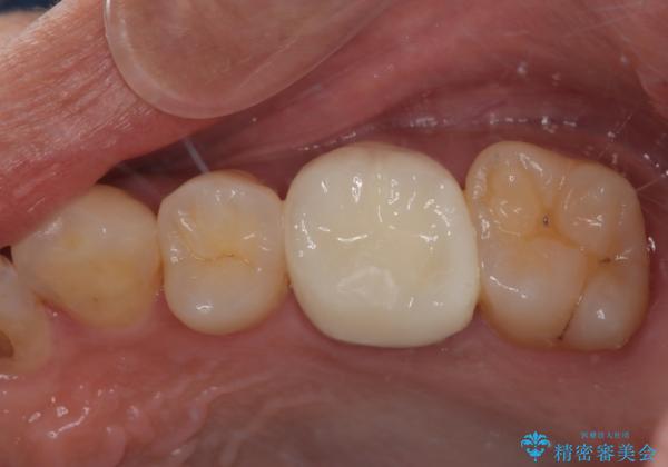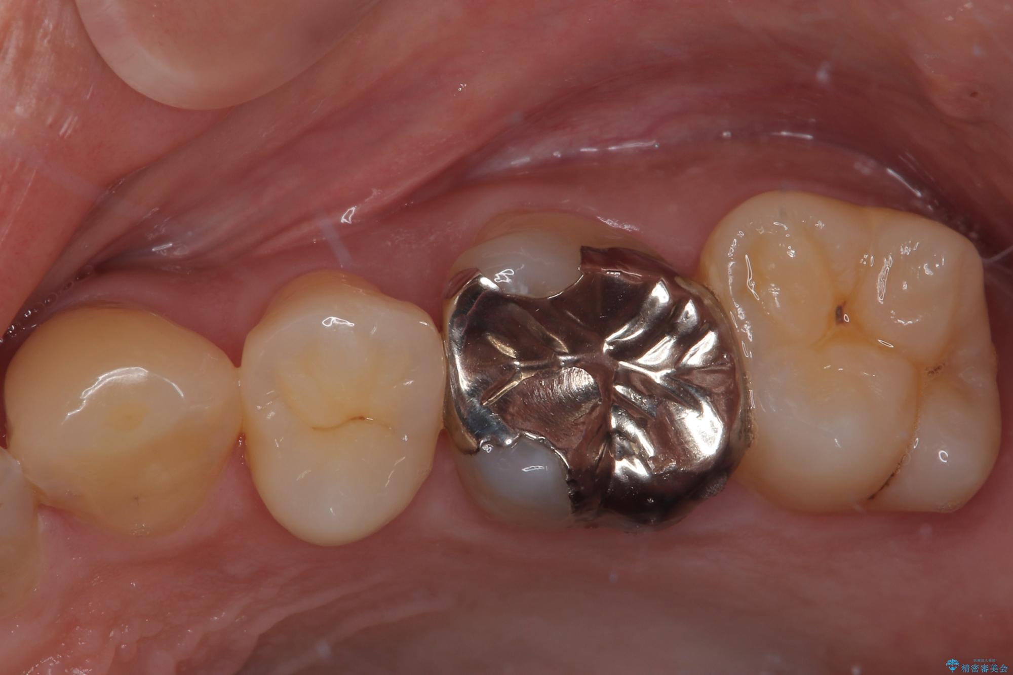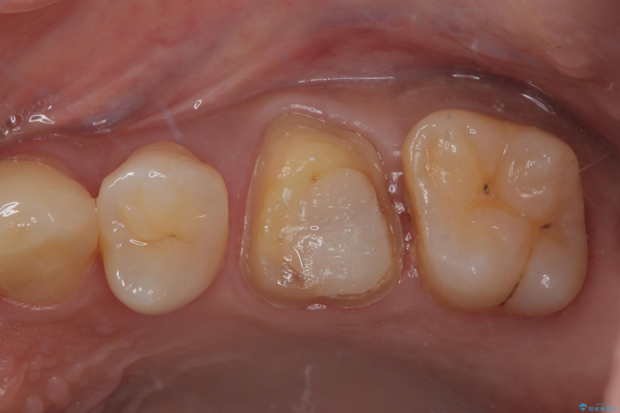 拡大鏡視野下でメタルインレー、虫歯の除去を行いオールセラミッククラウンに適した形に整えました。