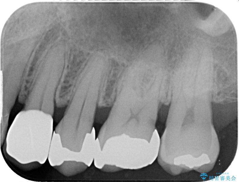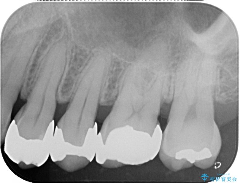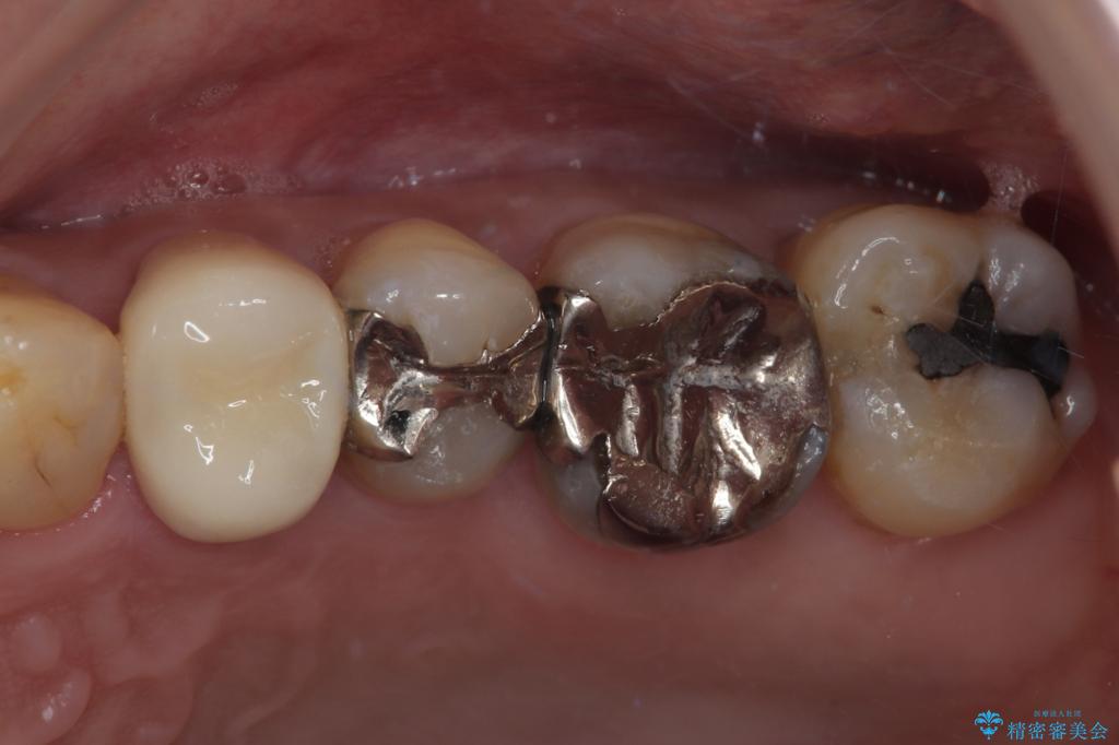 - 当院で矯正後徐々にセラミックにやり替えたいとのことで来院された患者様です。レントゲン撮影の結果、メタルインレーの不適合を認めました。またメタルインレーの範囲も大きくご自身の残せる歯の量を考慮してオールセラミッククラウンによる補綴治療を行っていくことにしました。