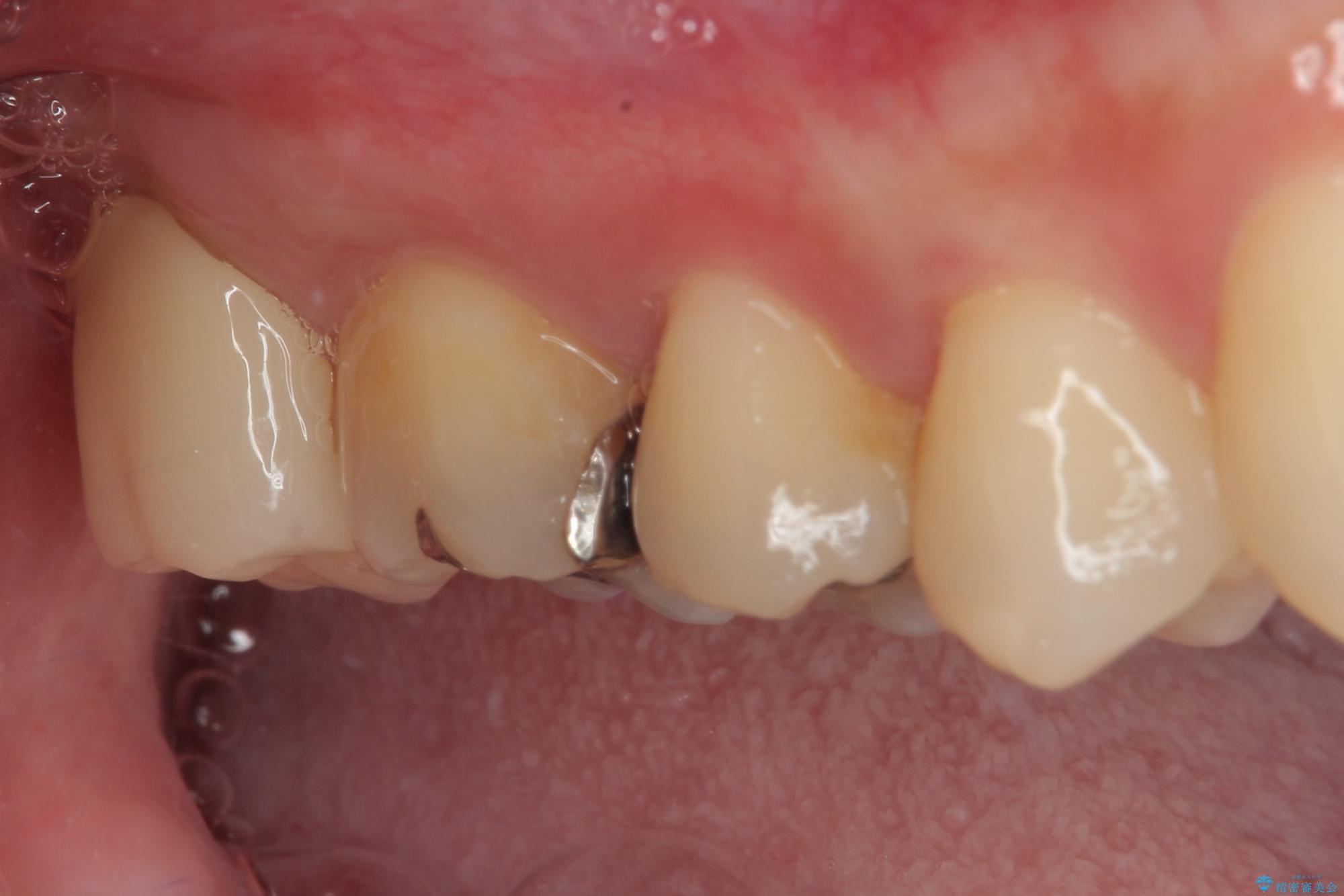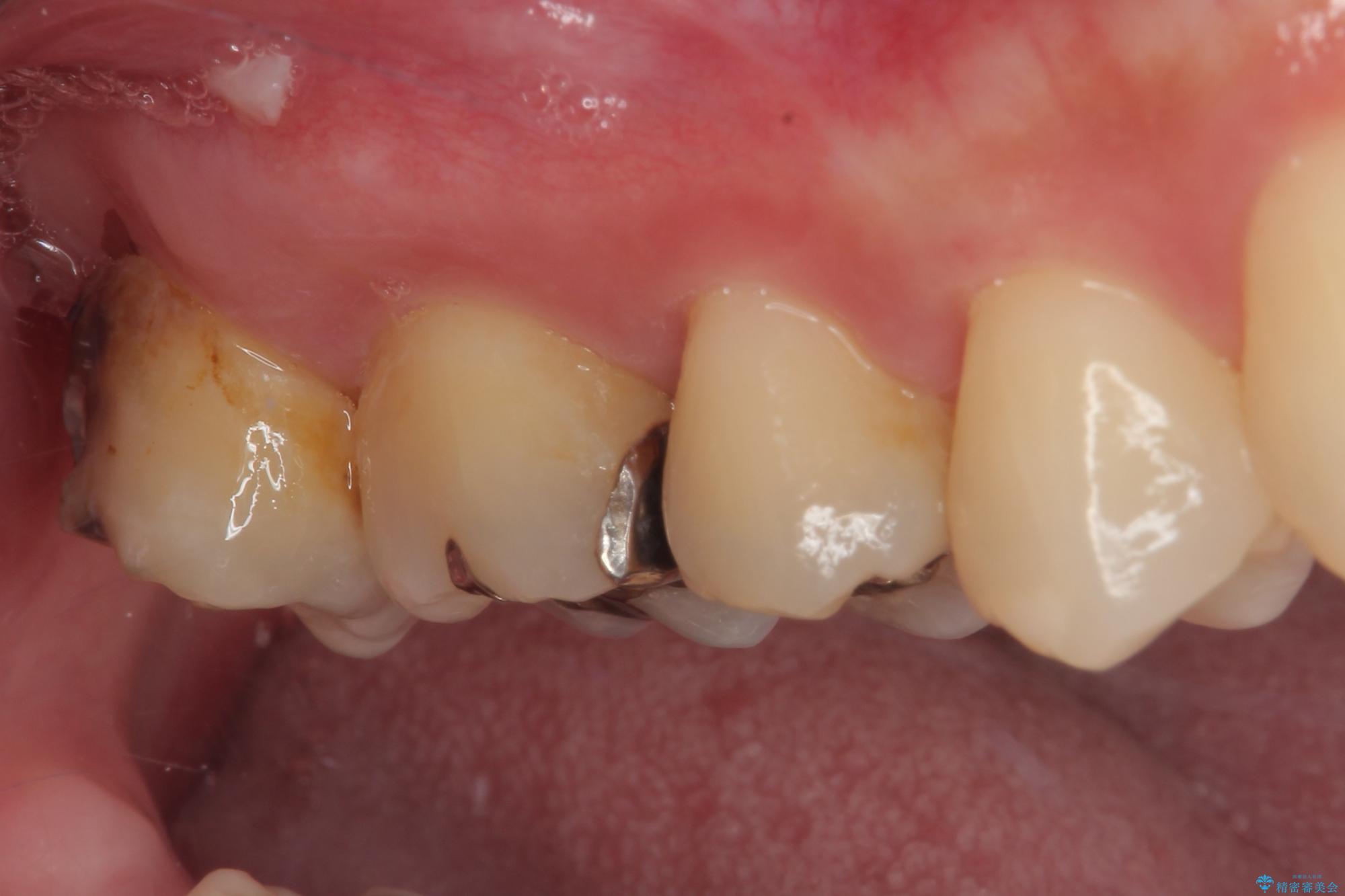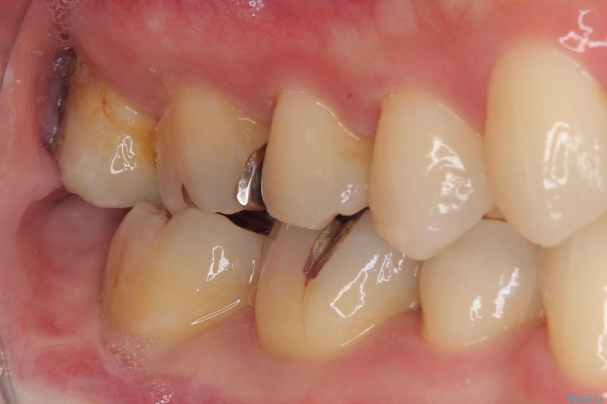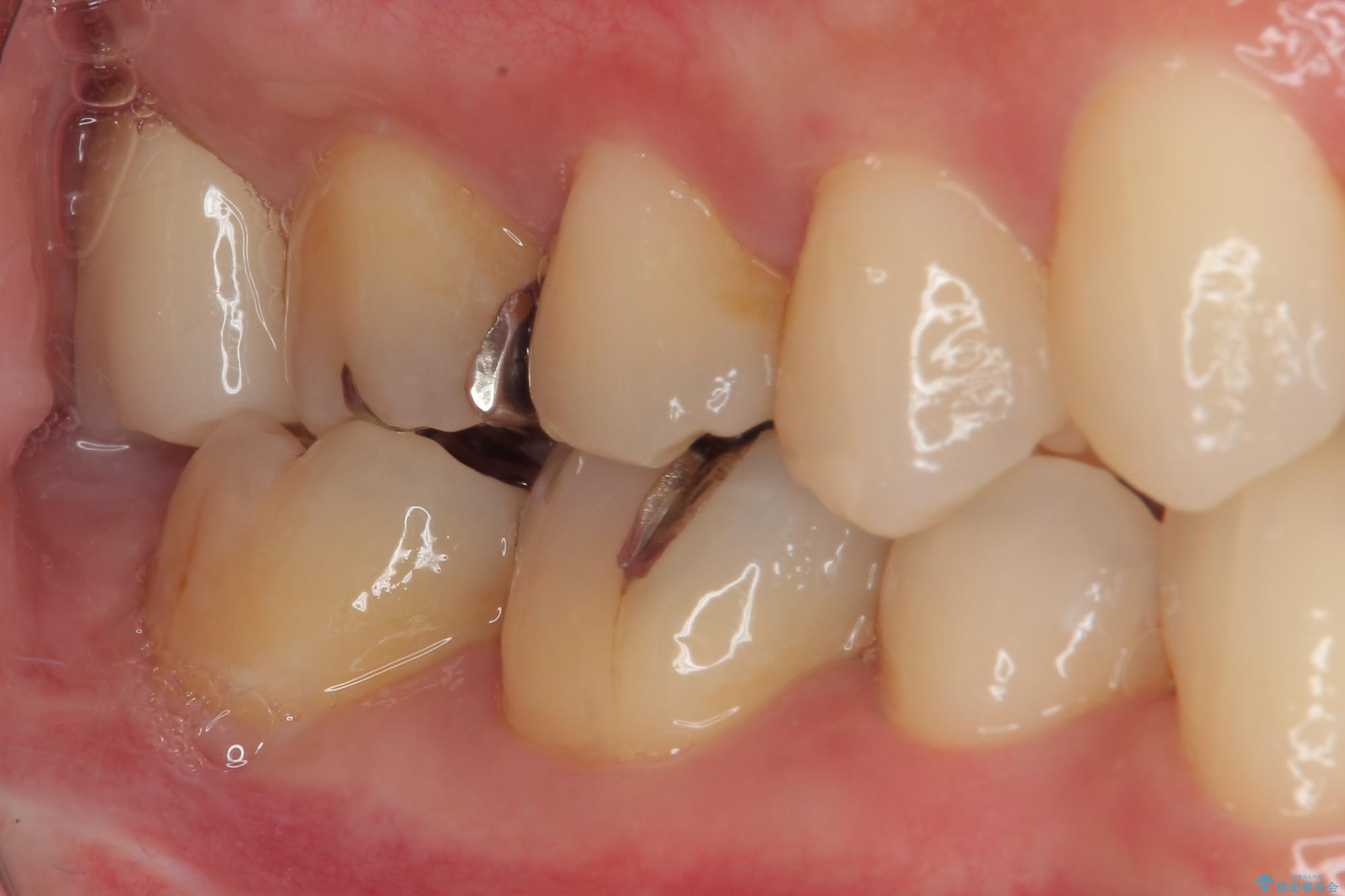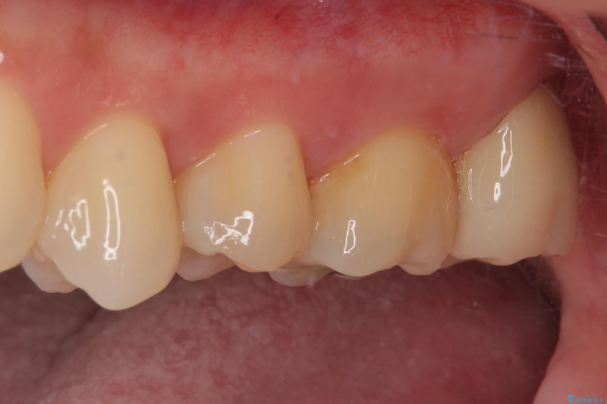 歯列が移動したとはいえ、左右ともに後方傾斜しており、むし歯の除去、形成(形を整える)、型取りの全てが非常に困難な処置となりました。