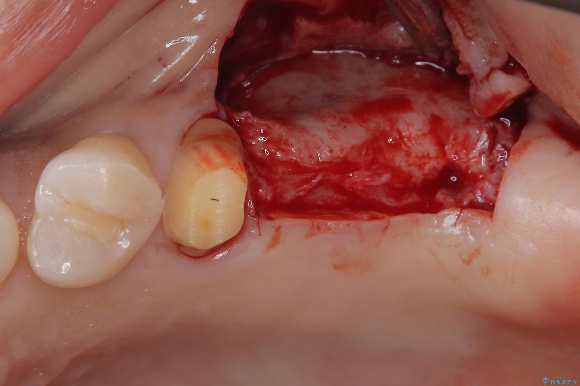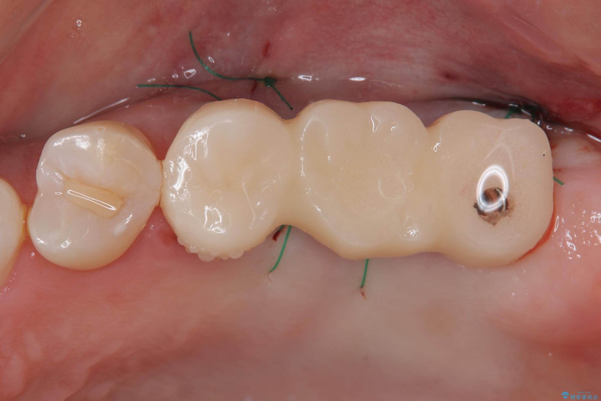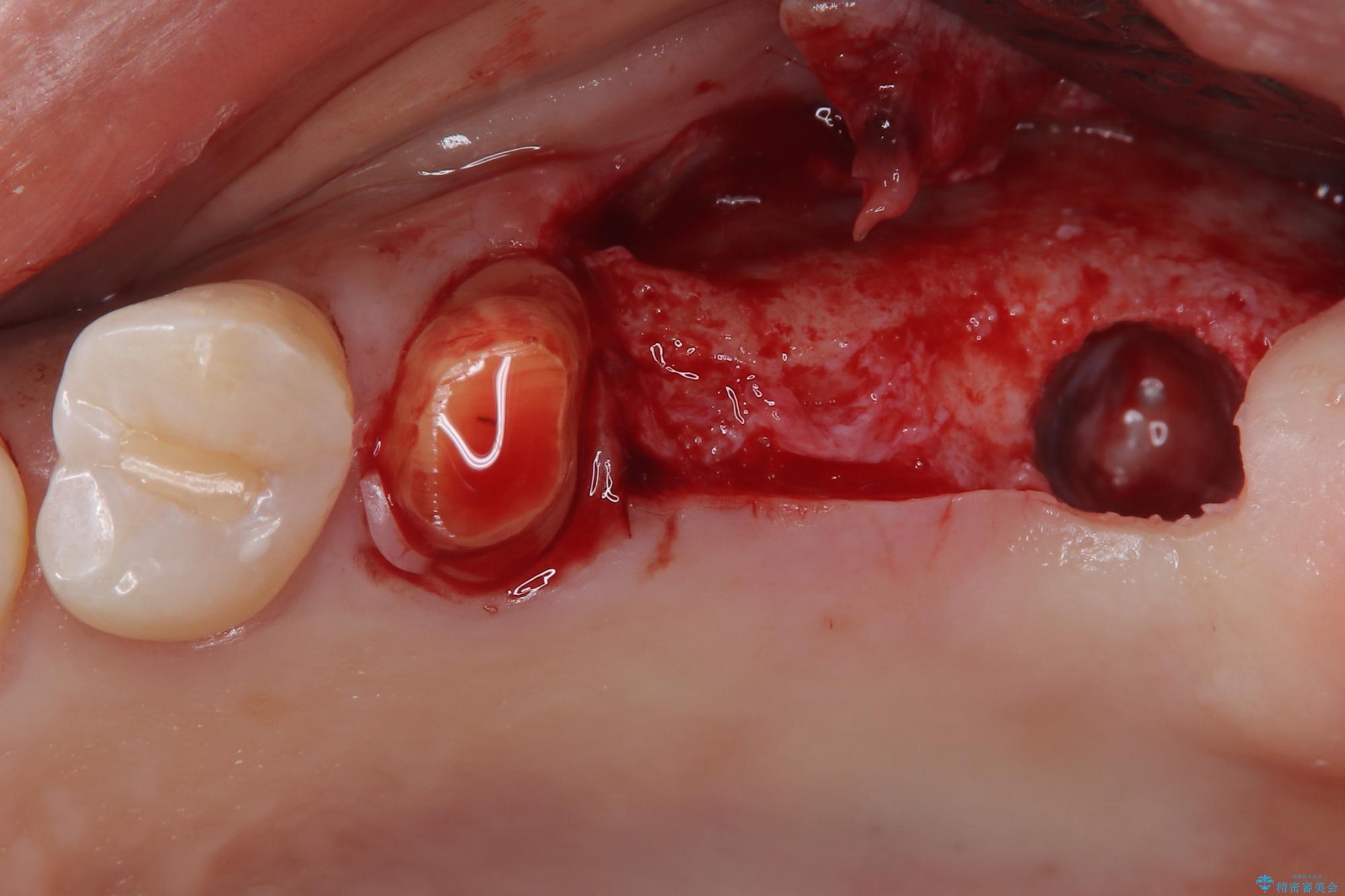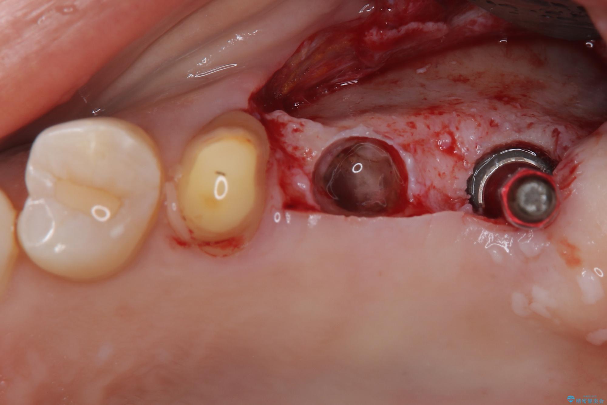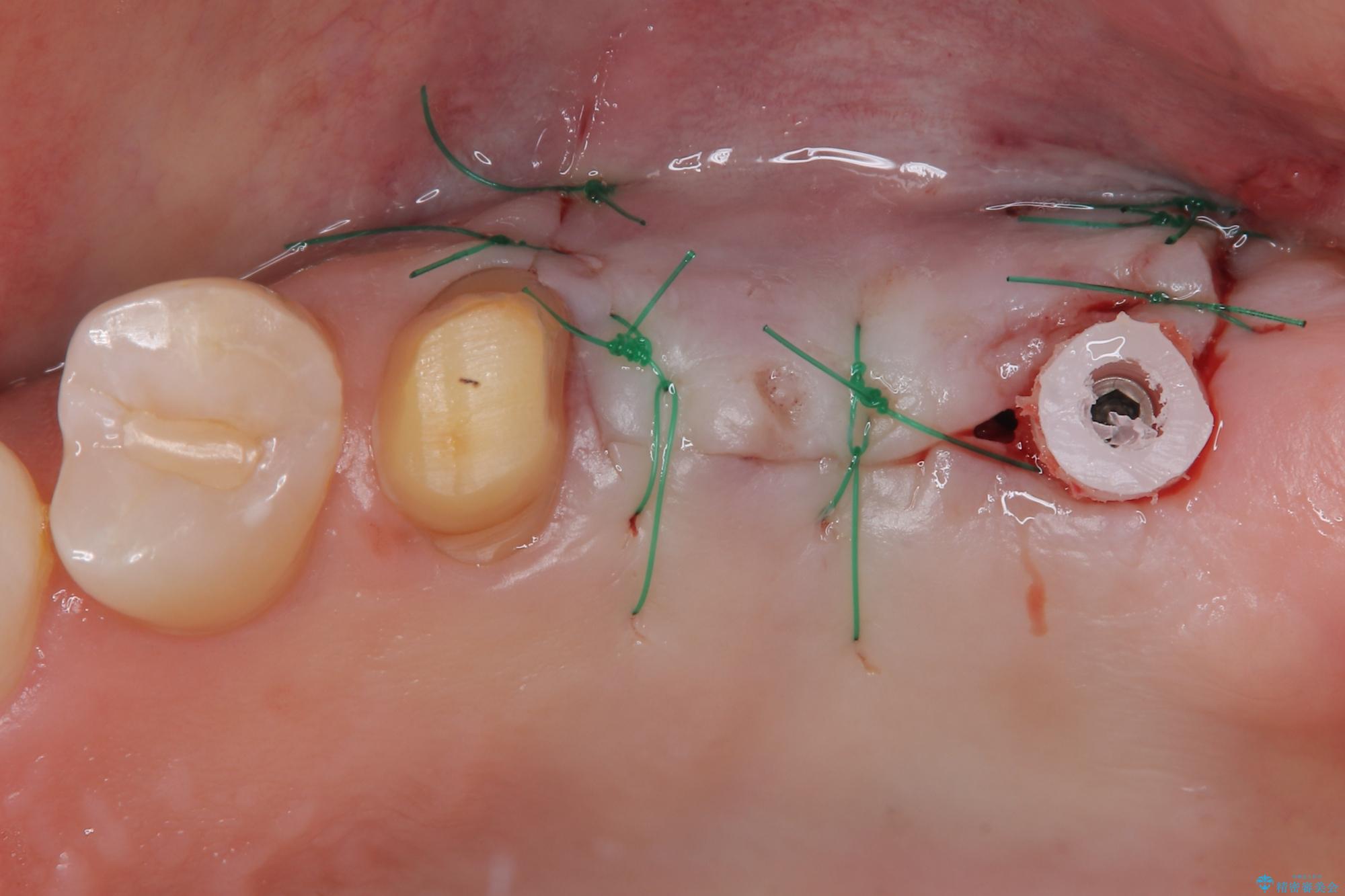 元々の骨量が少なく、通常よりは待機期間が長くなりますが、3ヶ月程度で補綴治療まで行うことができるため、こちらの手法でインプラント補綴治療を行うこととしました。