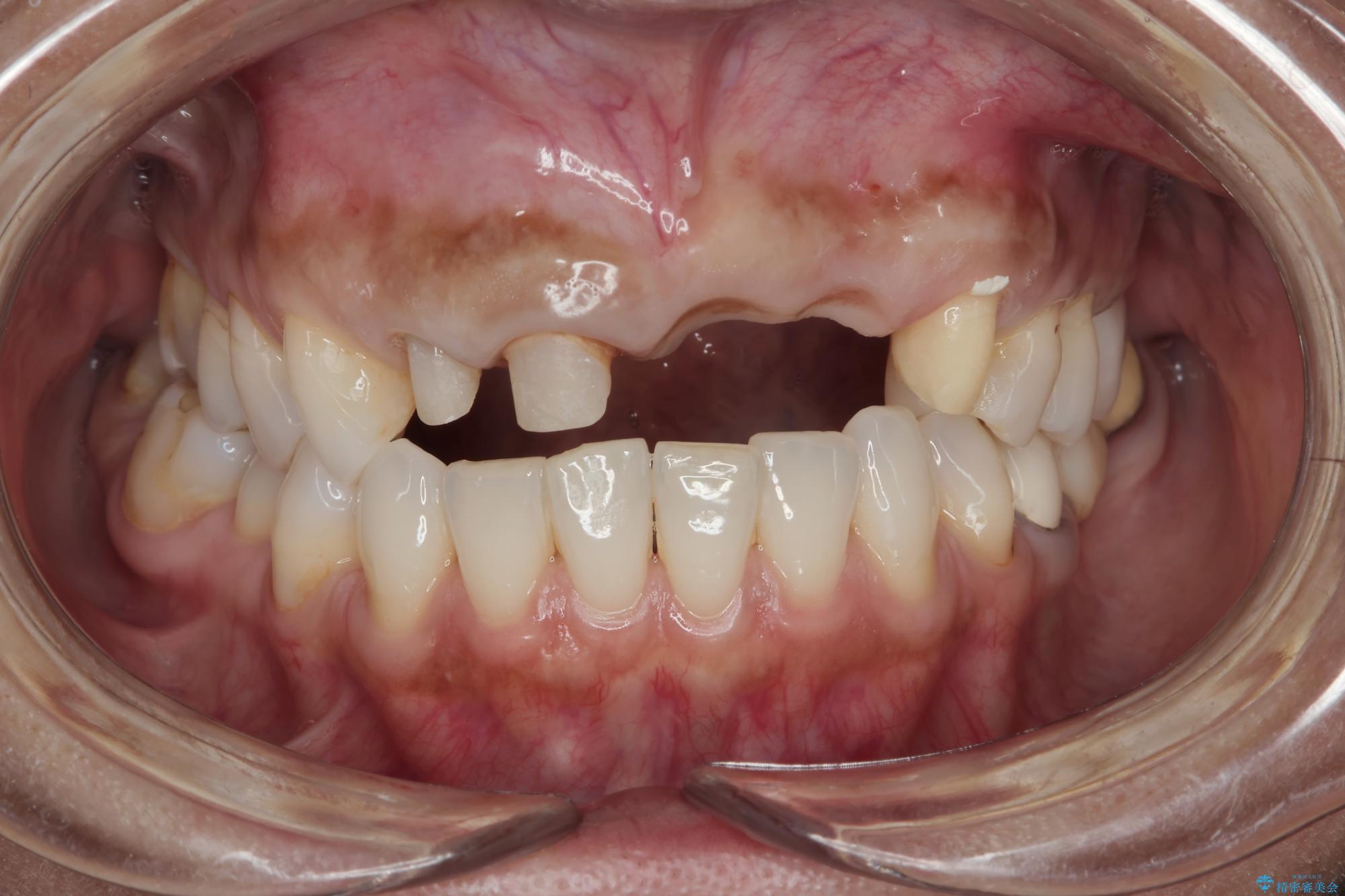 - 前歯がグラグラし、においもする、とのことで改善を求めて来院されました。