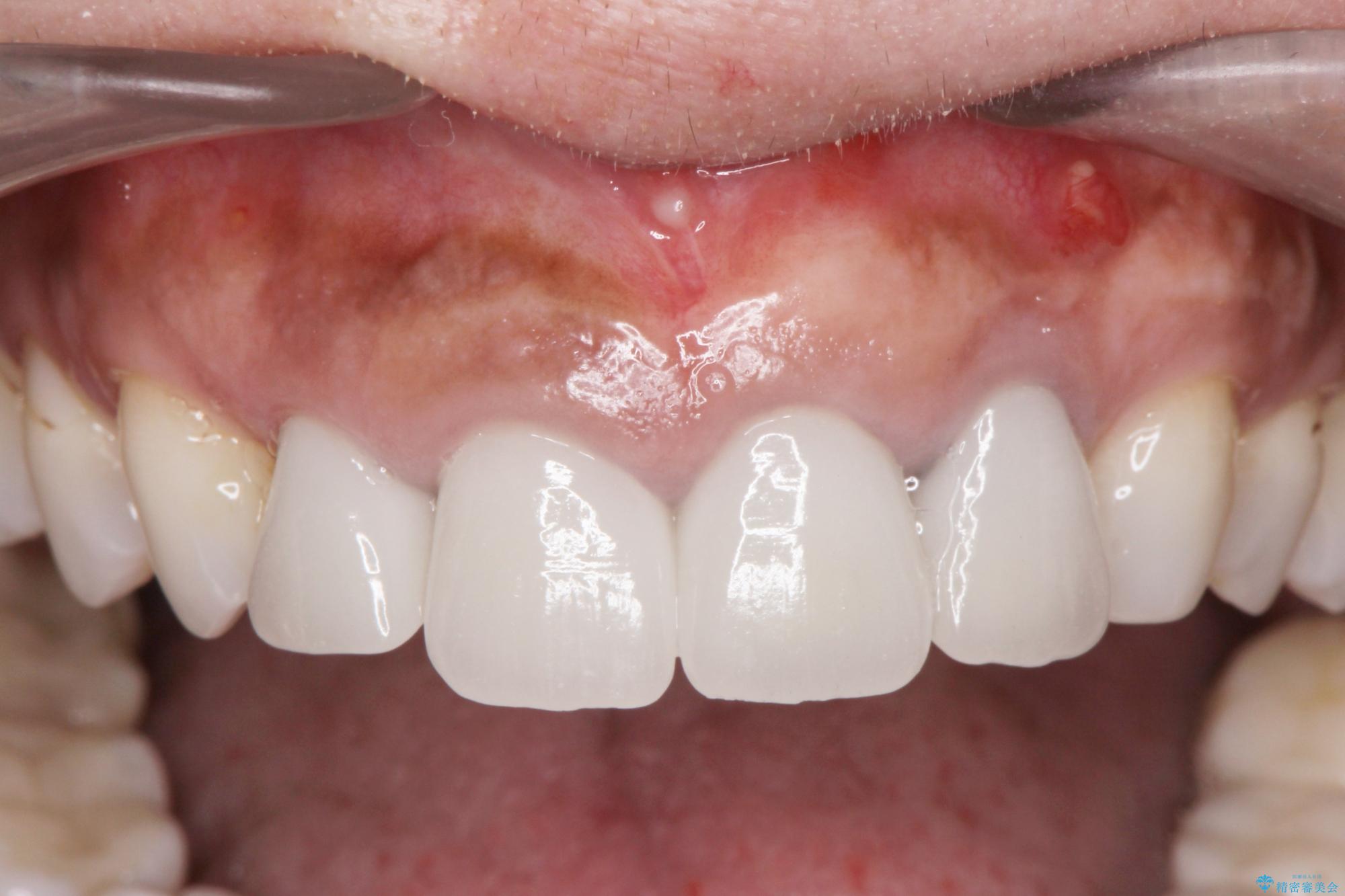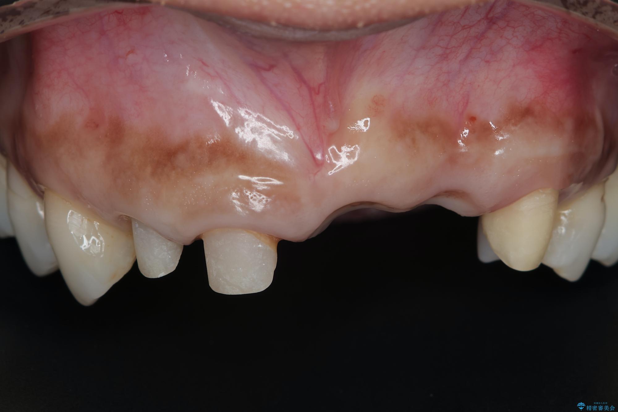 抜歯時に可及的に歯肉のボリュームを保つよう骨充填材とコラーゲン製剤による填塞を行い審美的かつ機能的なブリッジとなるよう治療を進めます。
