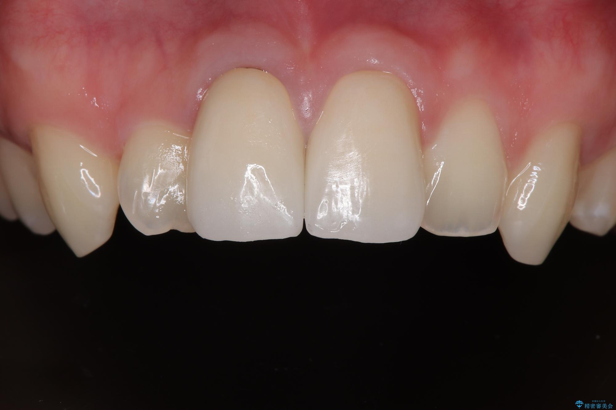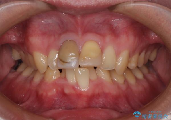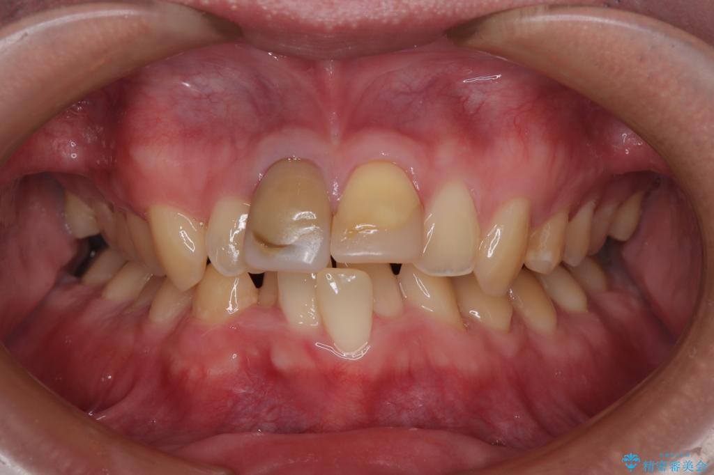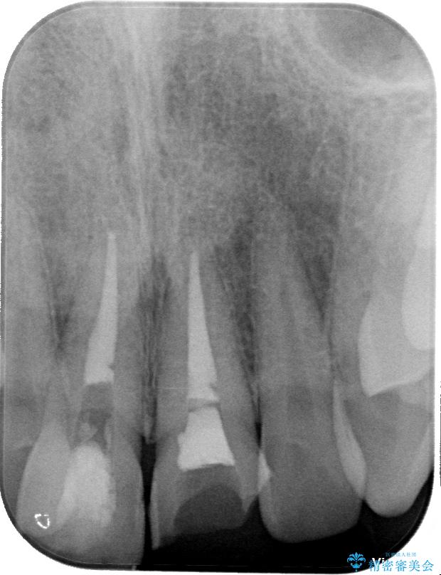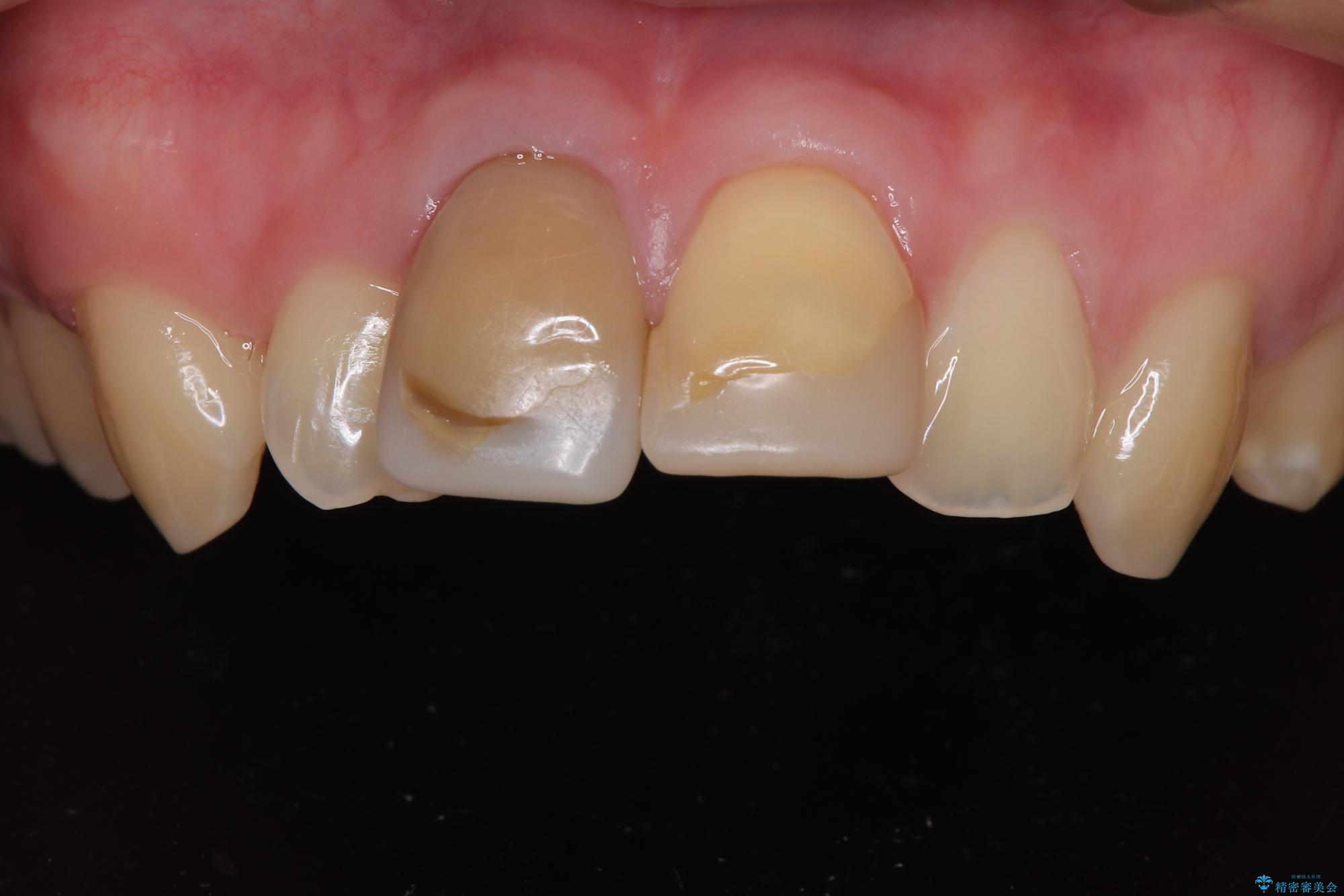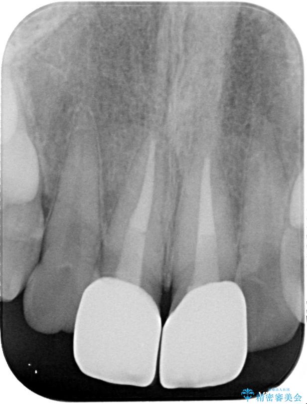 転倒時に前歯2本が折れてしまい、すでに根管治療(神経の治療)が行われている状態でした。