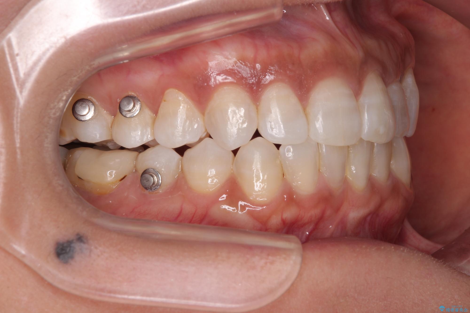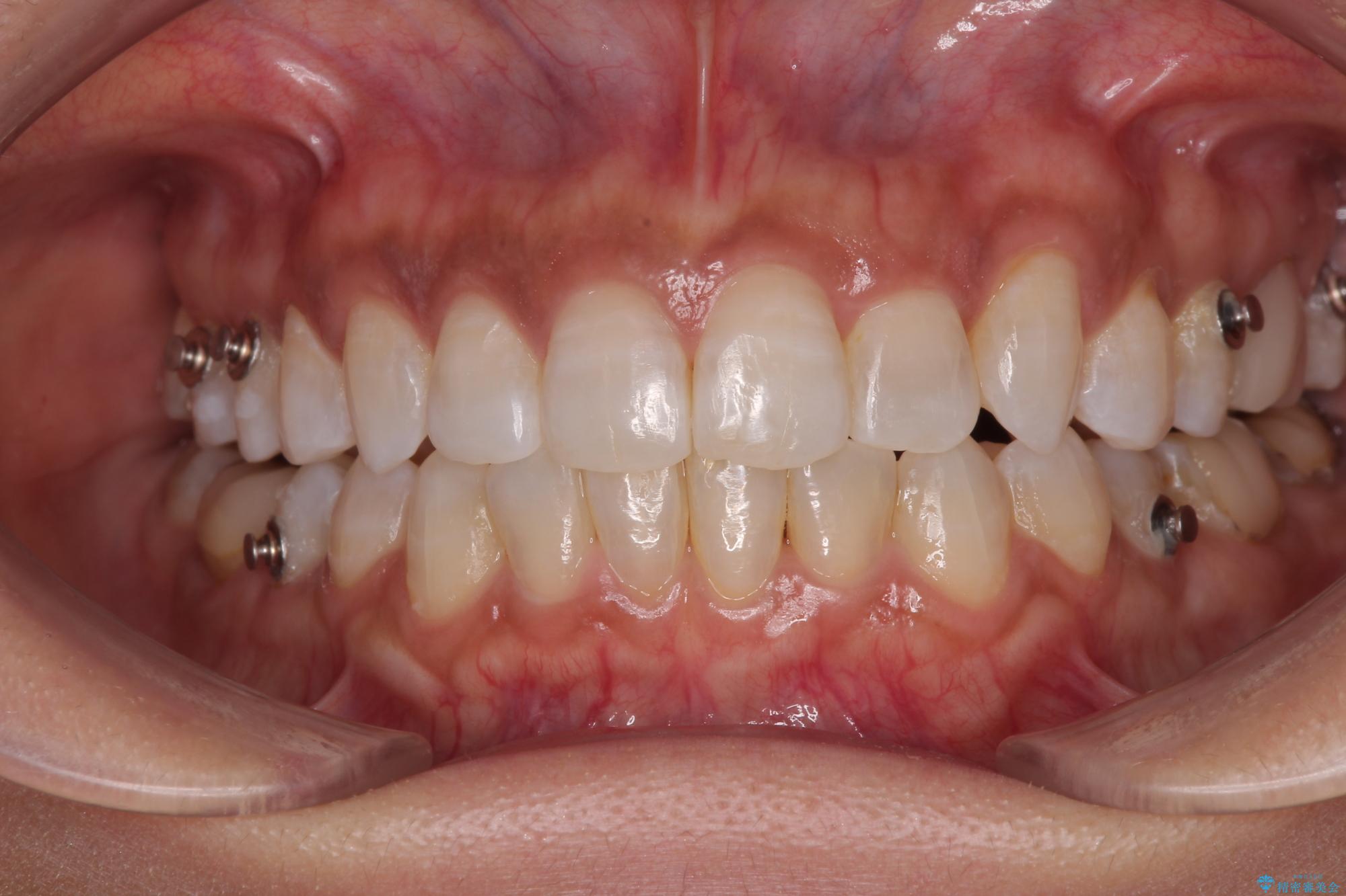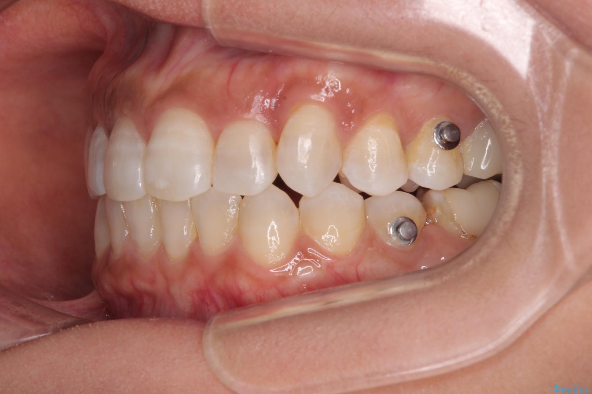 咬合力が非常に強く、治療が進むにつれて上下奥歯が離開してくることが予想されるため、治療途中から上下の顎間ゴムを使用することを理解いただき、インビザラインによる矯正治療を行うこととしました。