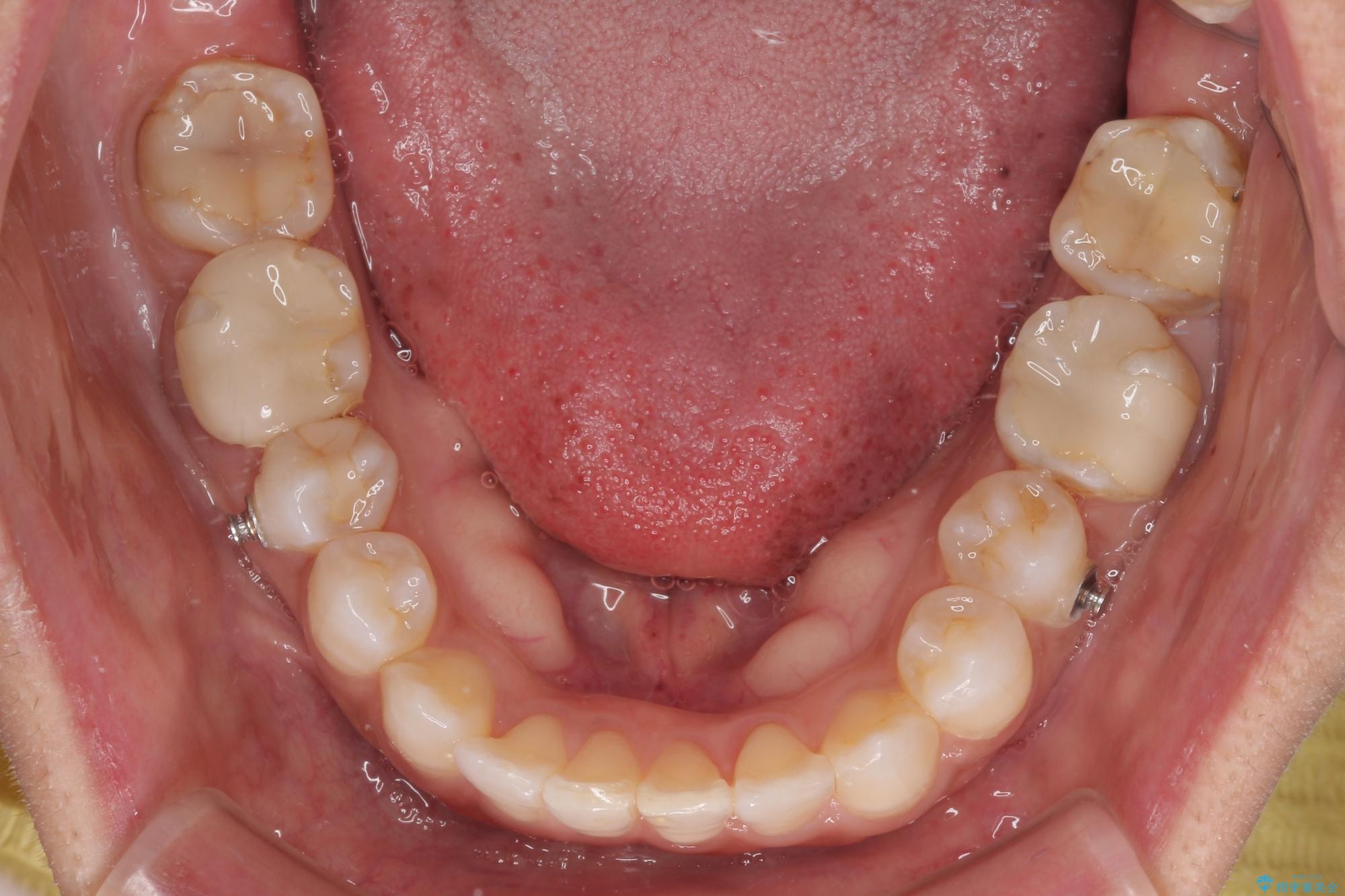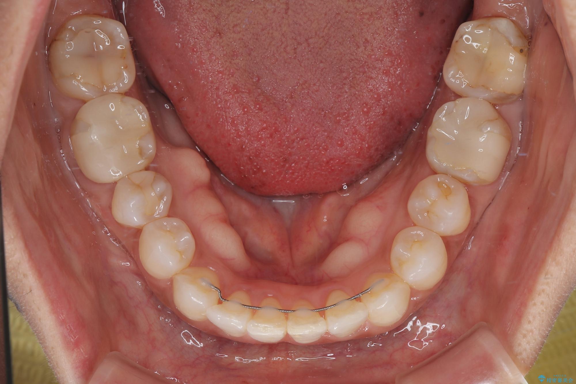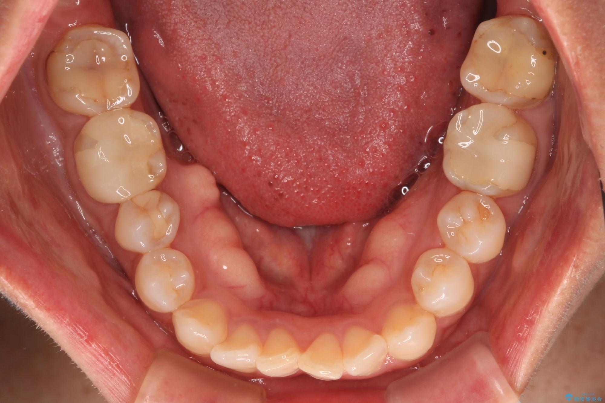 上下ともに、前歯部を中心にやや叢生が認められる程度であったため、ワイヤーでもインビザラインでも、どちらでも対応可能な状態でした。