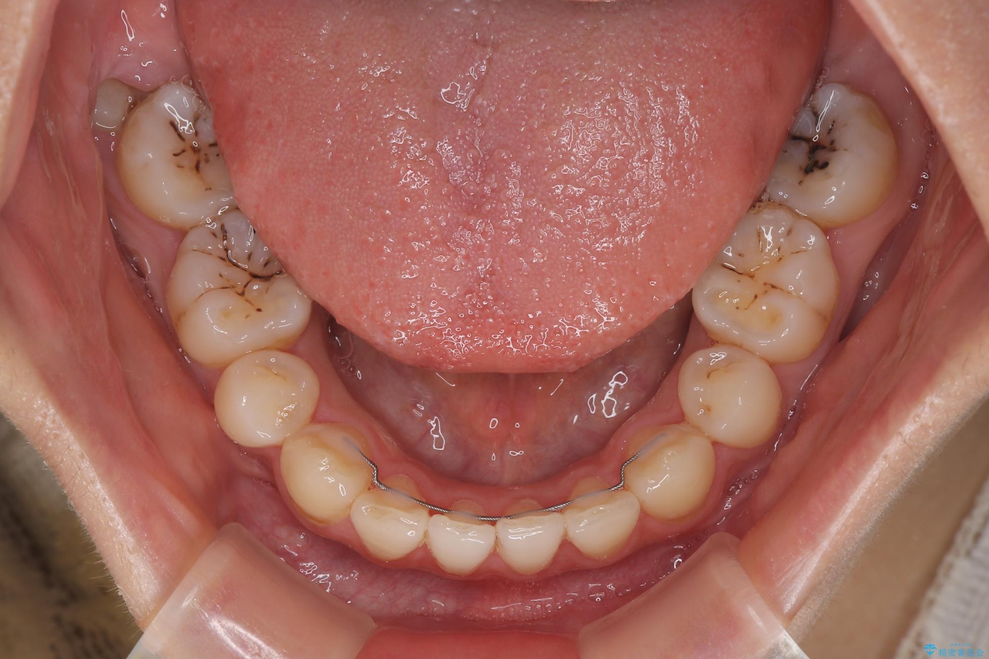 甚大な咬合力に抵抗して過蓋咬合を改善する必要があり、更には口元が引っ込みすぎることがないように仕上げていく必要もあったため、治療期間は3年を超えましたが、当初計画通りの仕上がりで治療を終えることができました。