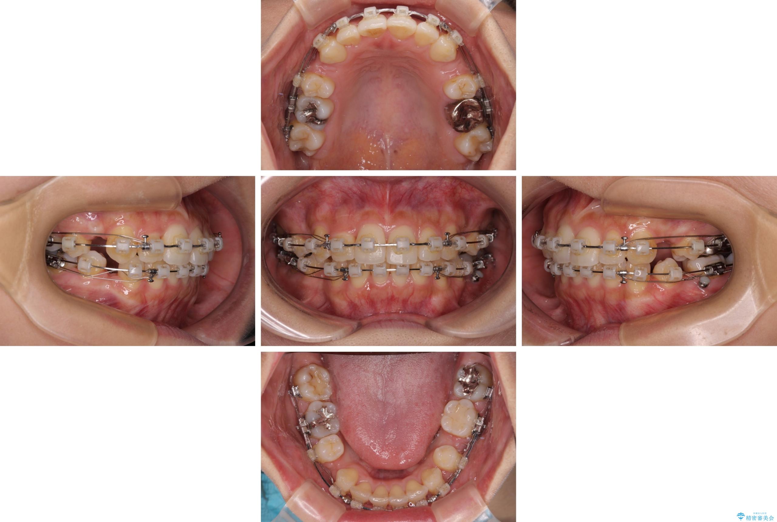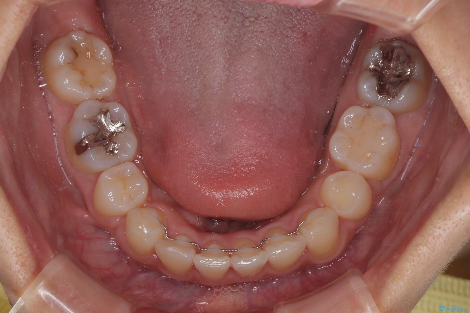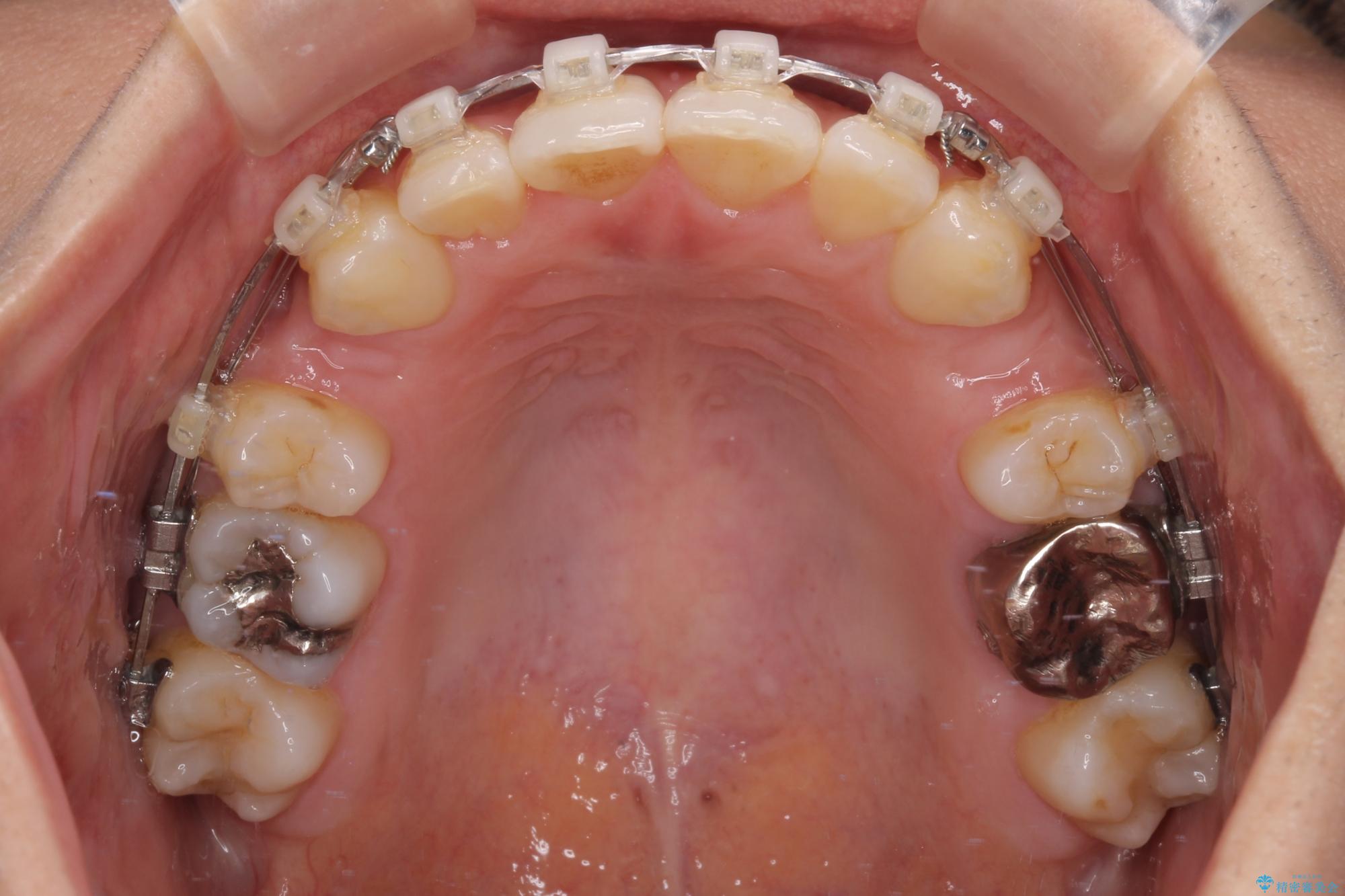 しかしながら。そのまま叢生を解消すると横顔が突出した印象になる可能性が高かったため、上下左右の小臼歯4本を抜歯して、ワイヤー装置にて矯正治療を行うこととしました。