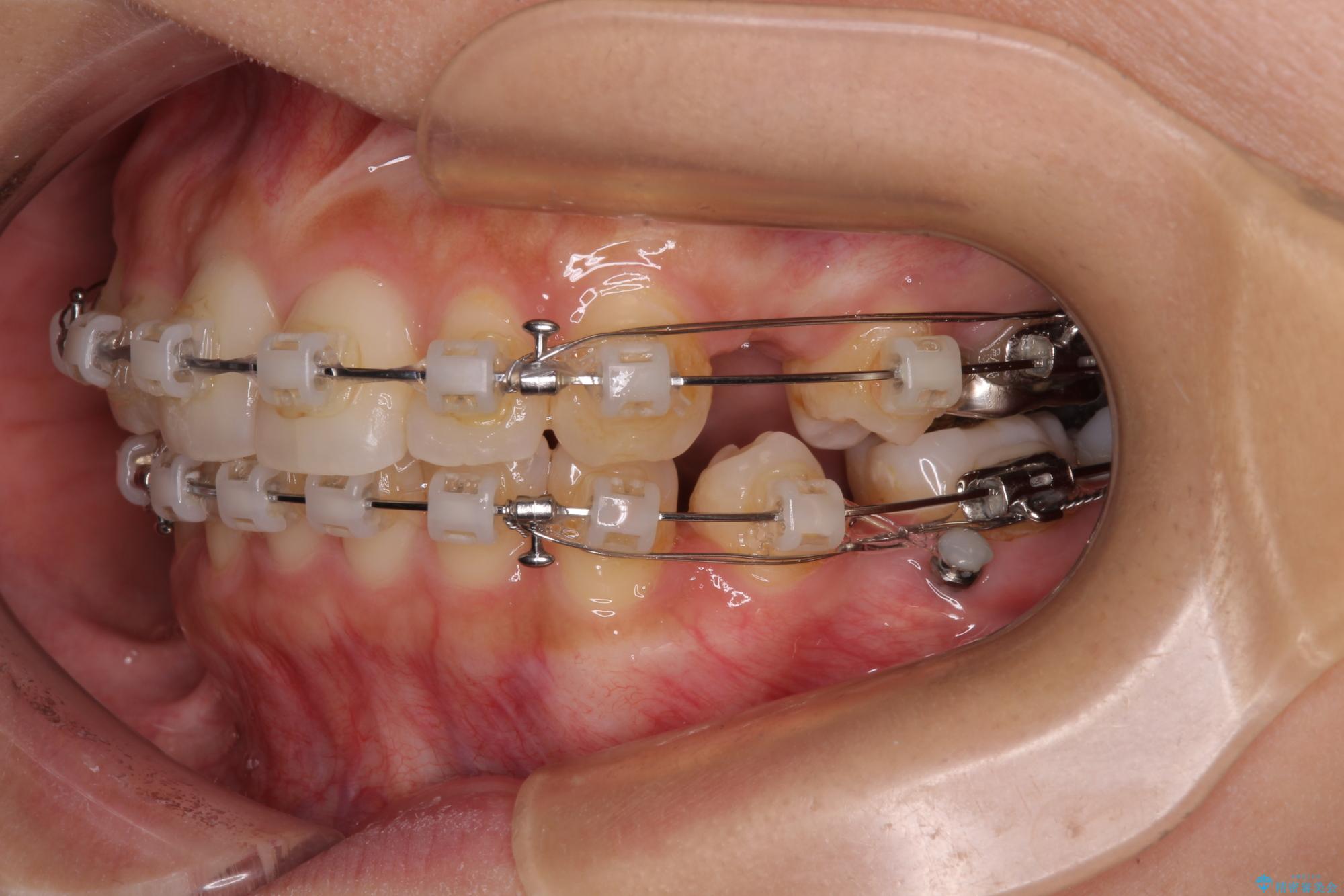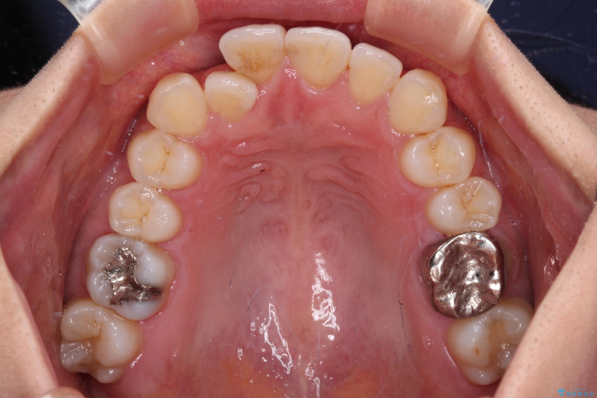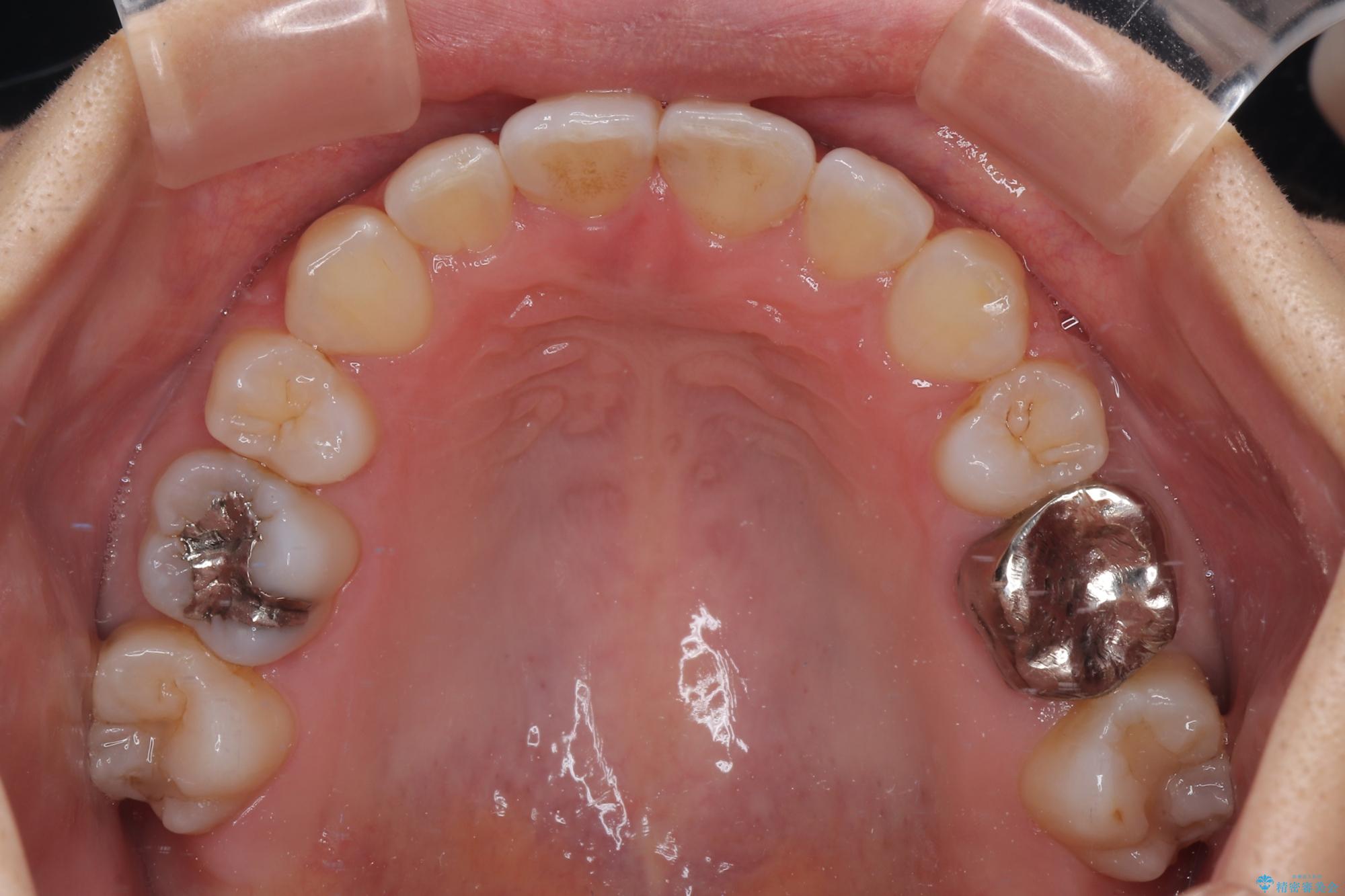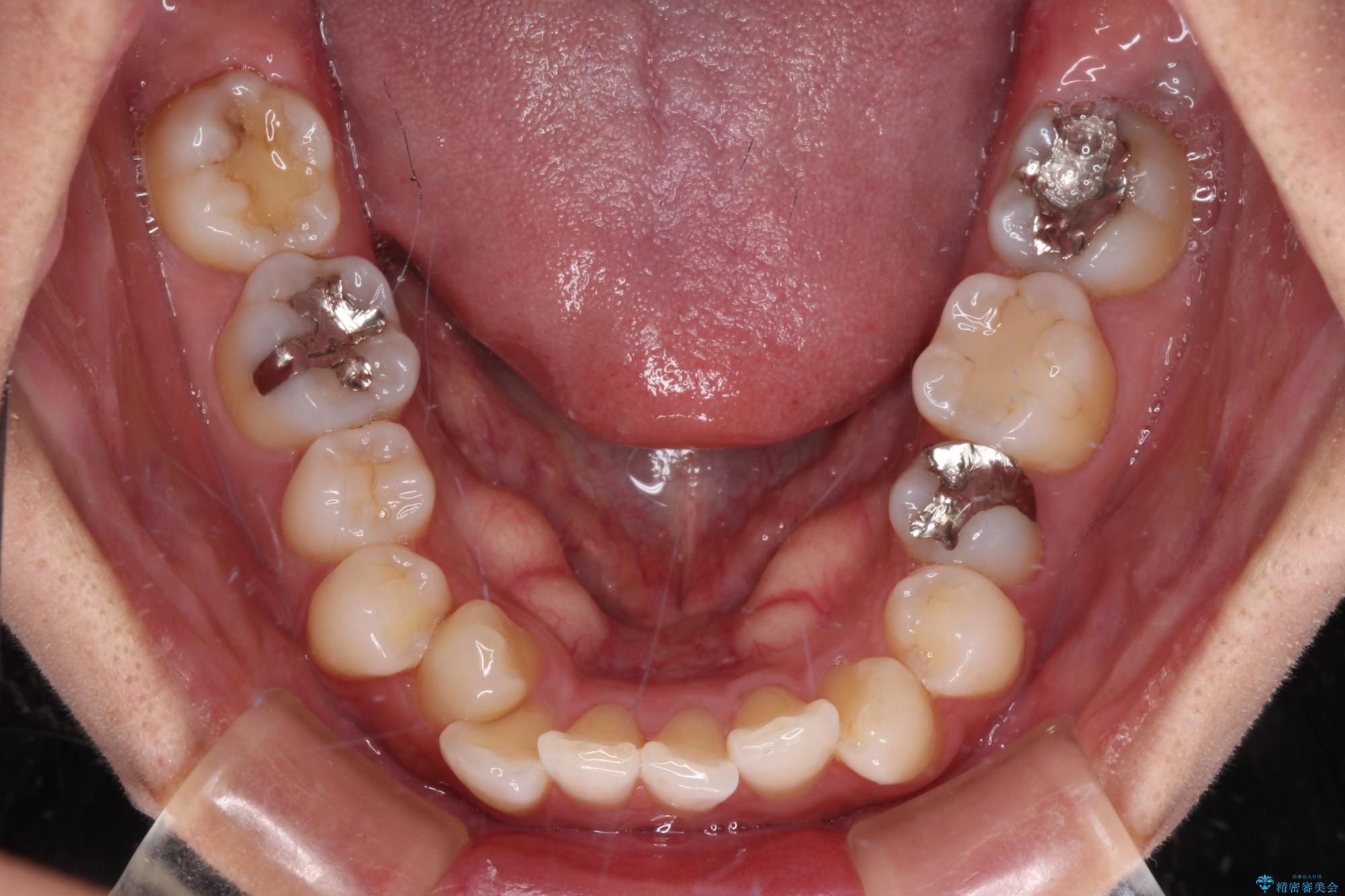 上下左右の第一小臼歯4本を抜歯して治療を行うことがセオリーでしたが、左下は第二小臼歯が銀歯であったため、イレギュラーではありますが、そちらを抜歯しました。