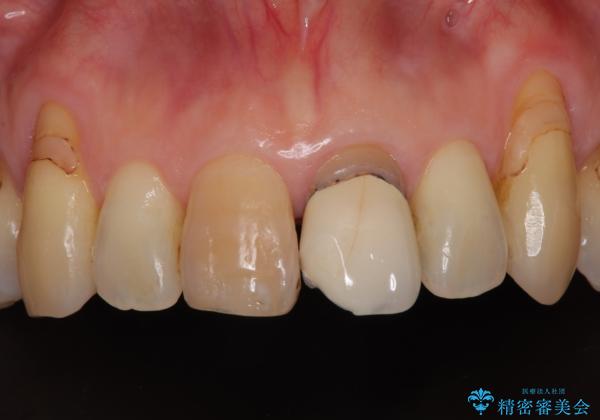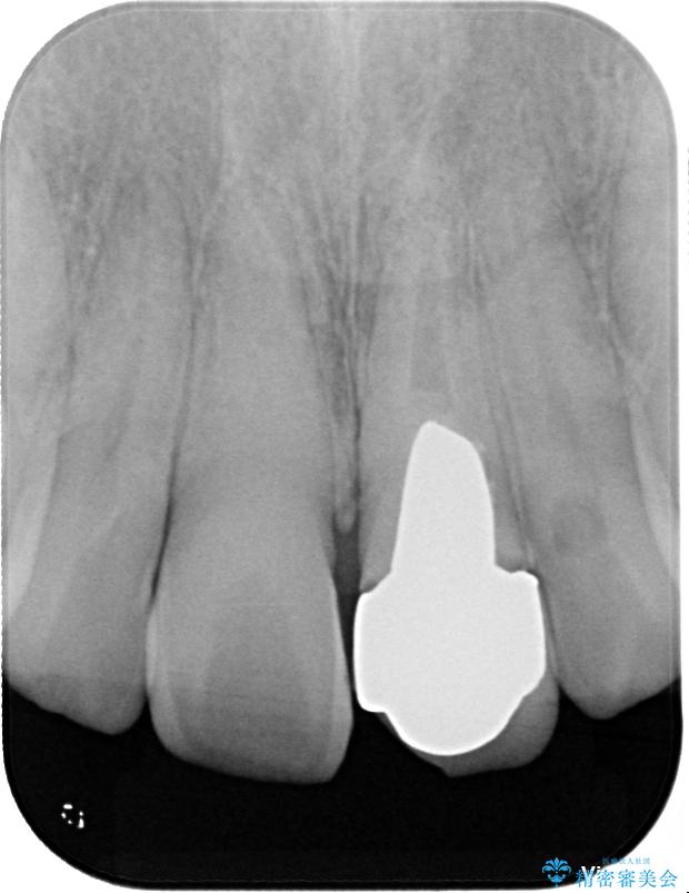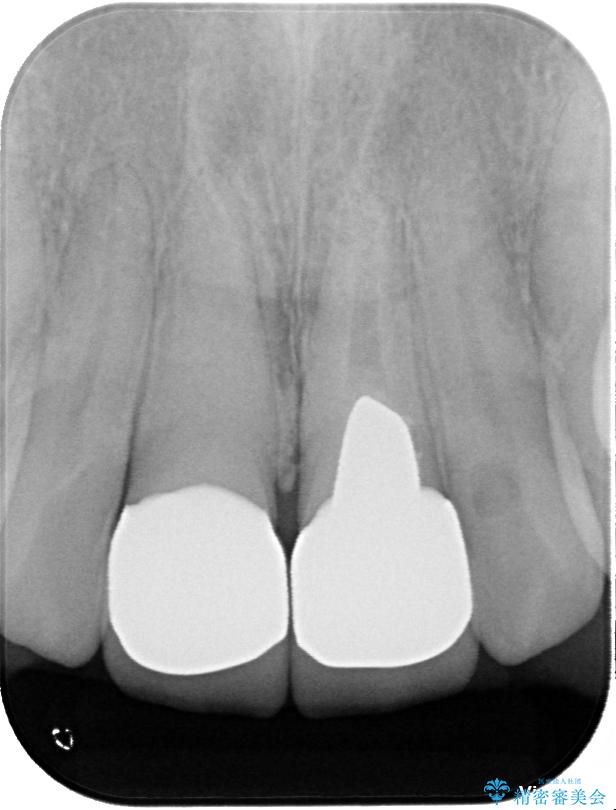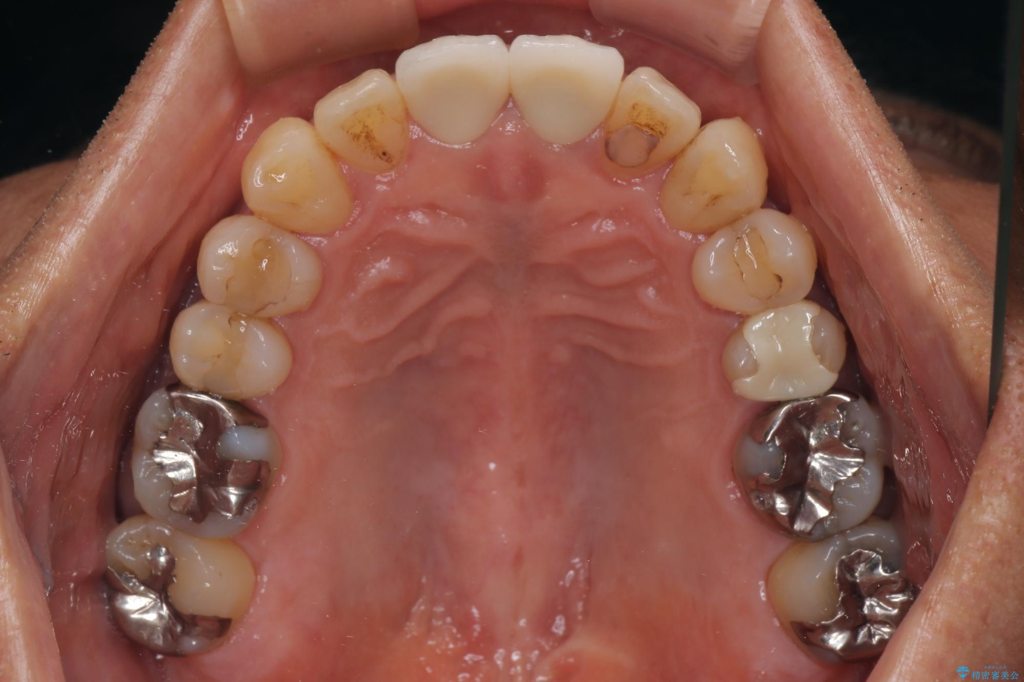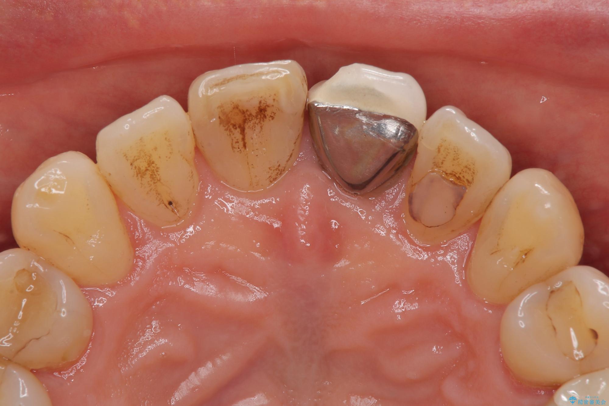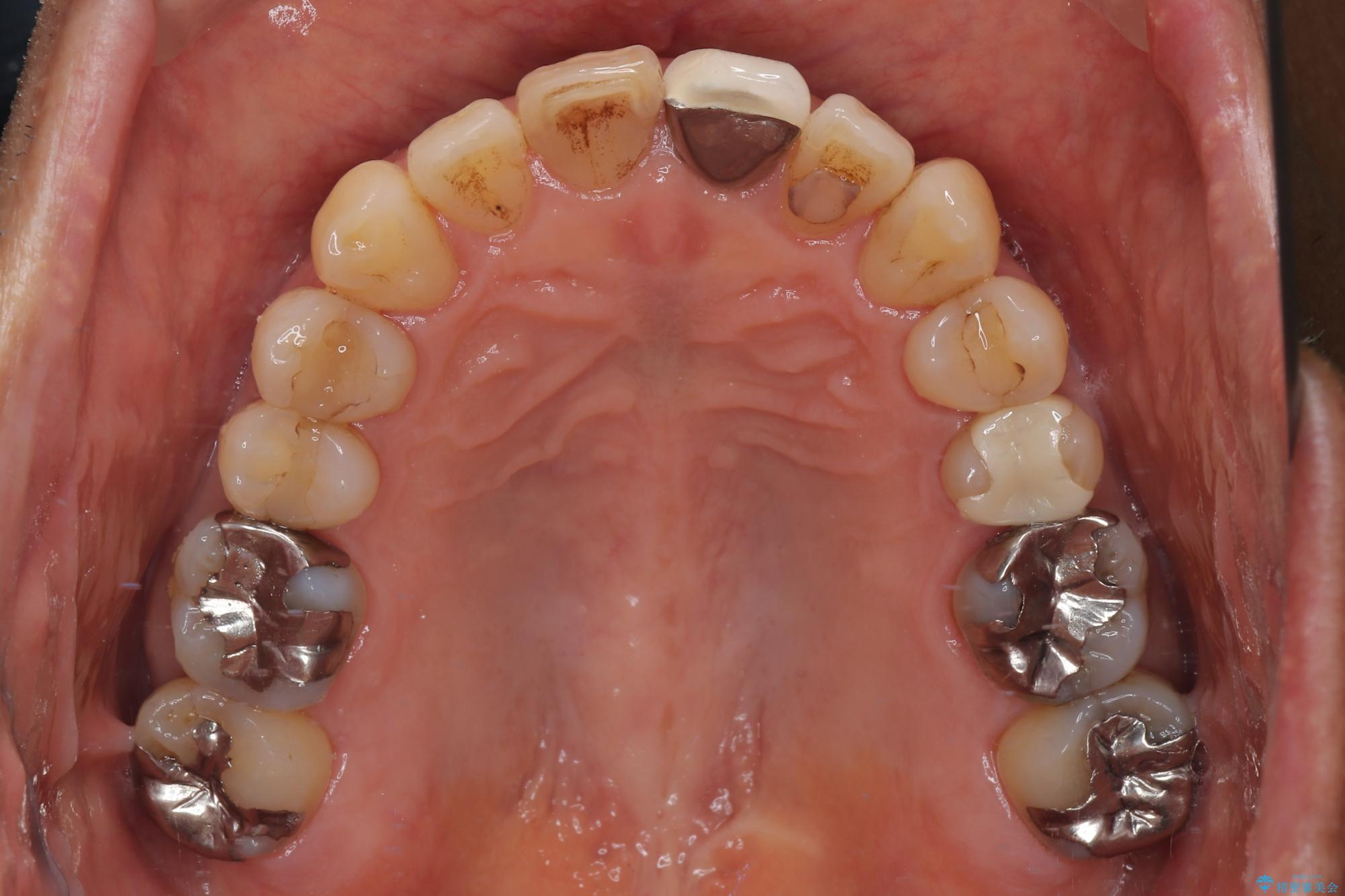 神経は生きているものの歯の色が茶色くなってきており、隣の歯は保険診療で装着したプラスチックのクラウンが徐々に黄ばんできている状態でした。