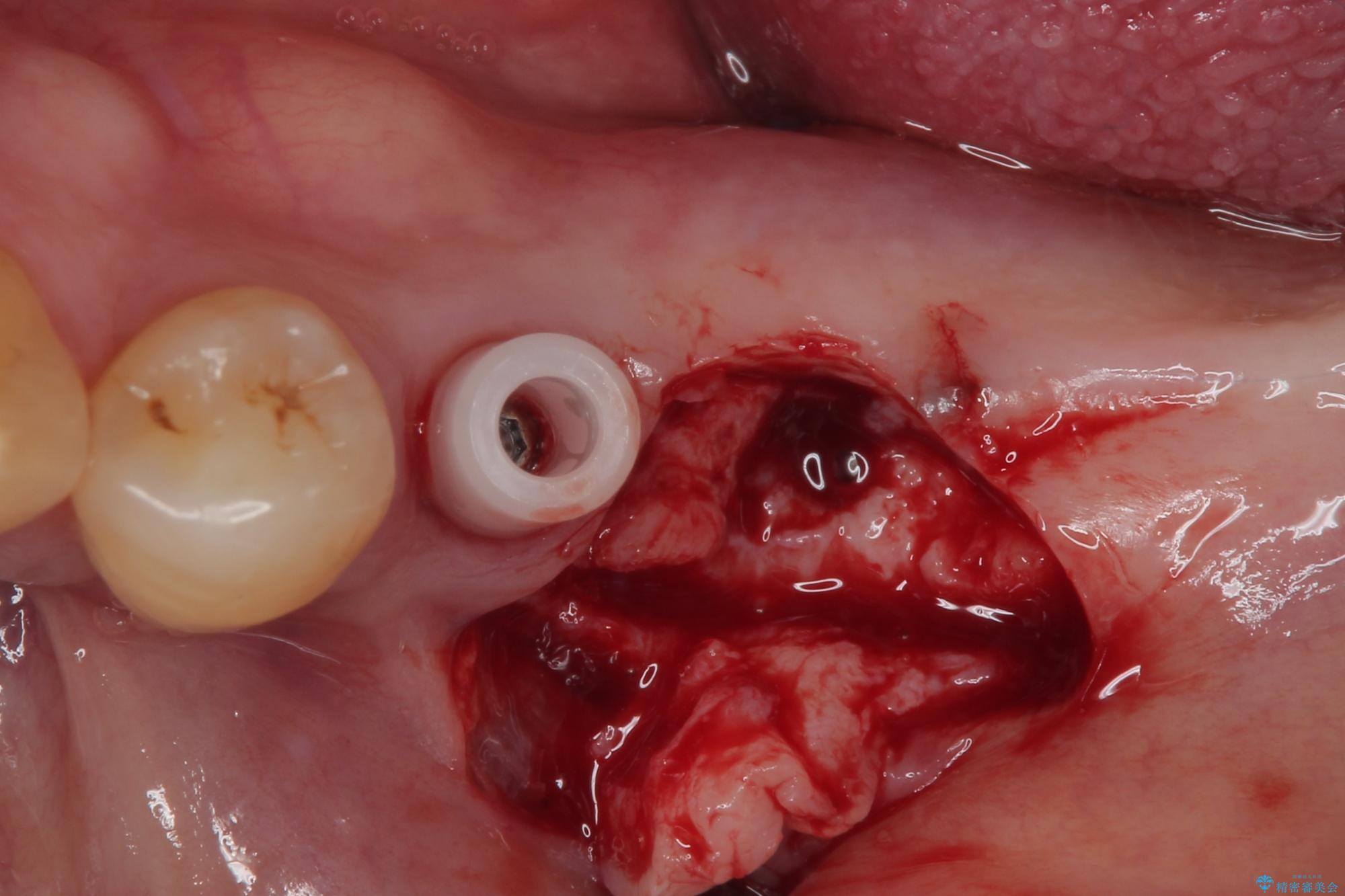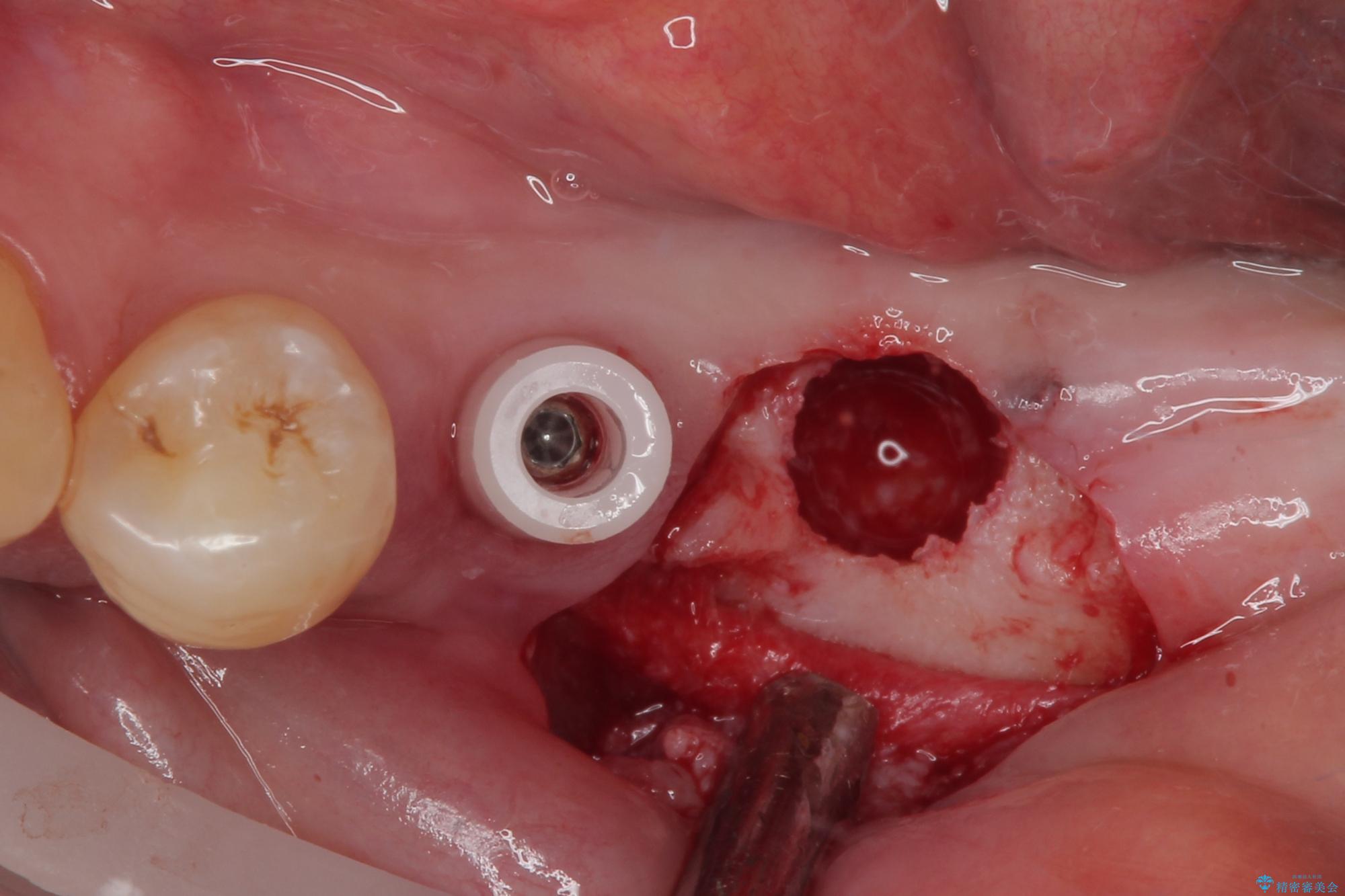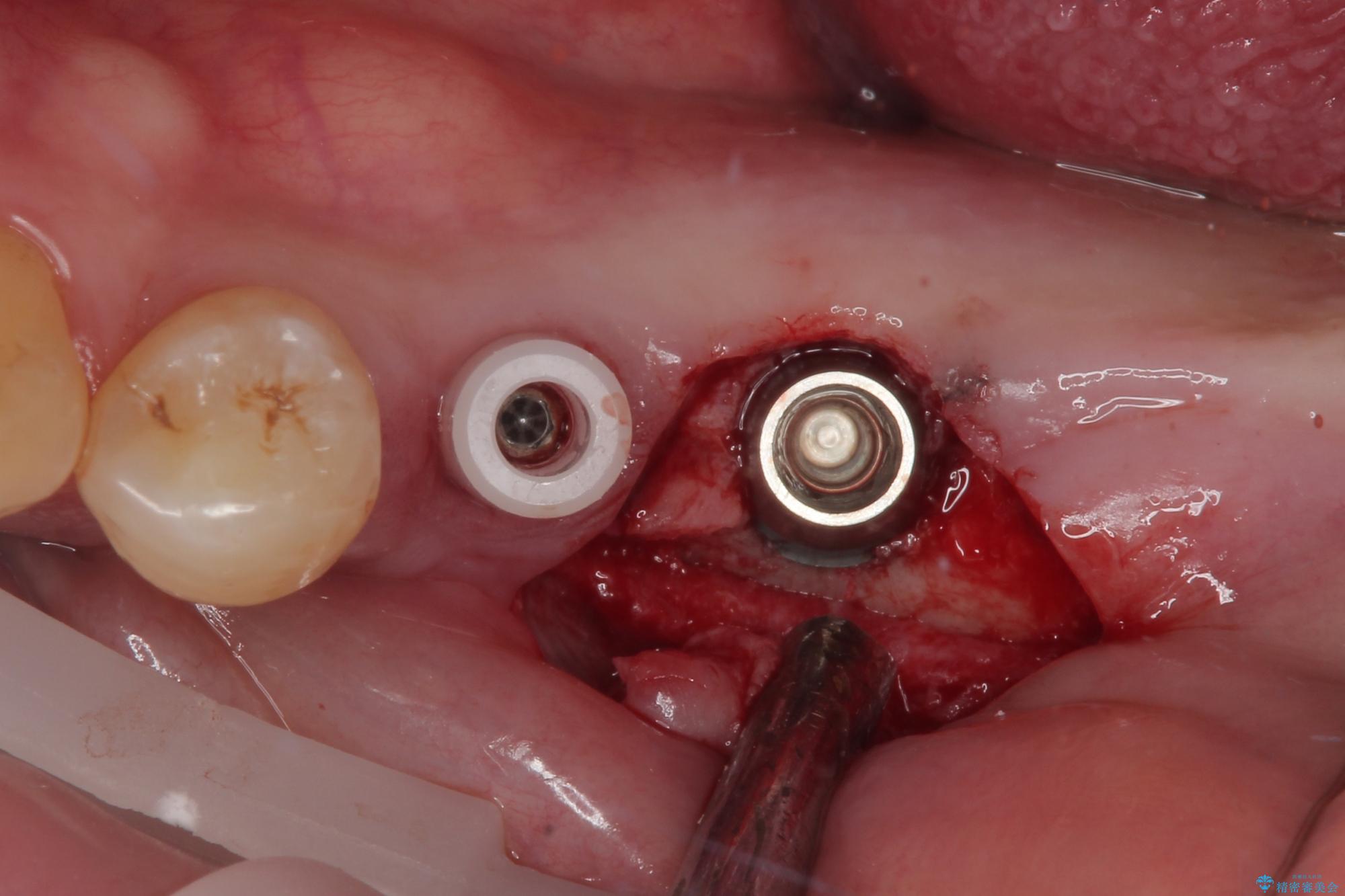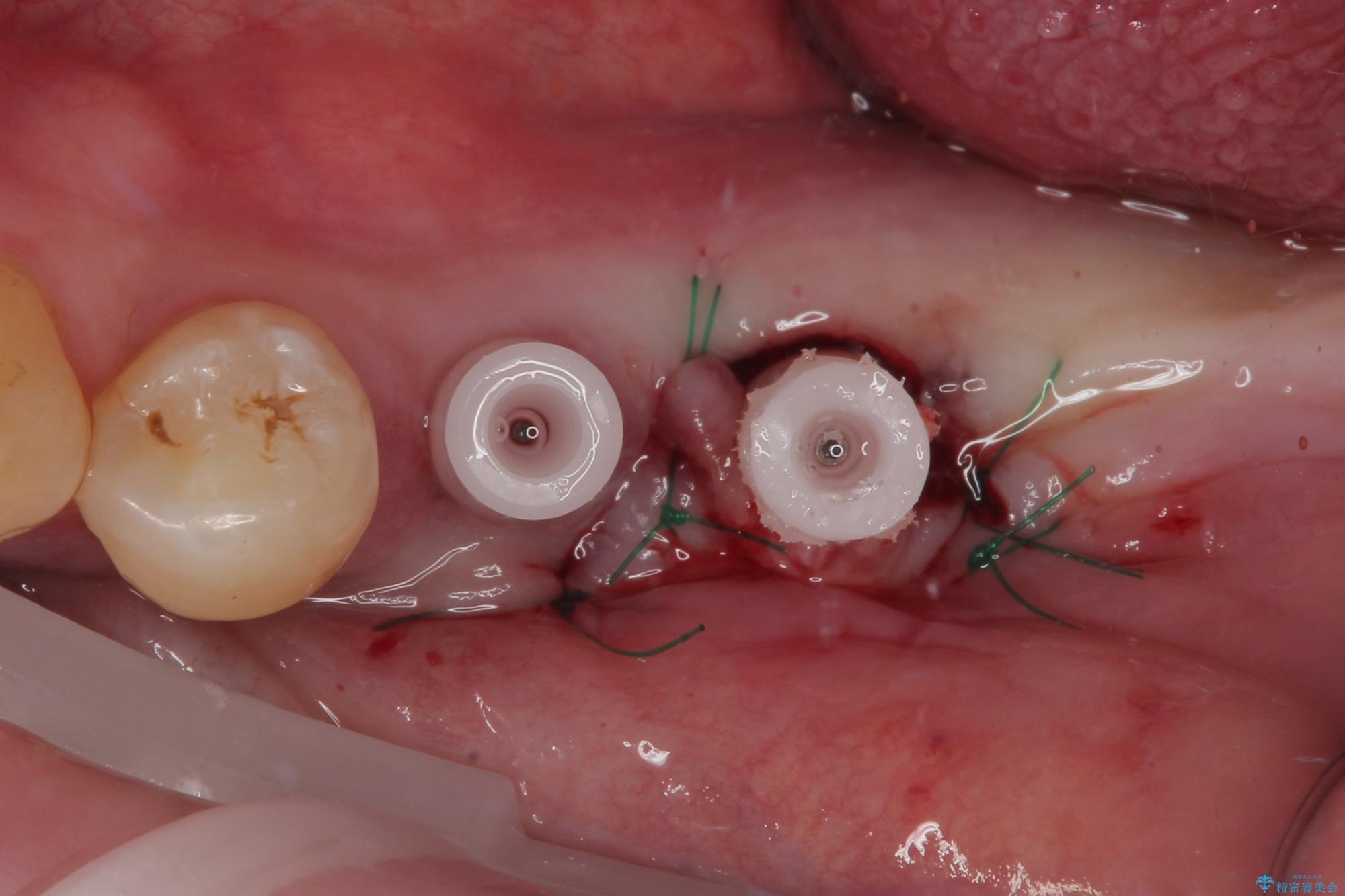 骨吸収が甚大な後方は3ヶ月ほど待機して、手前は抜歯即時埋入により、短期間インプラント補綴治療を行うこととしました。