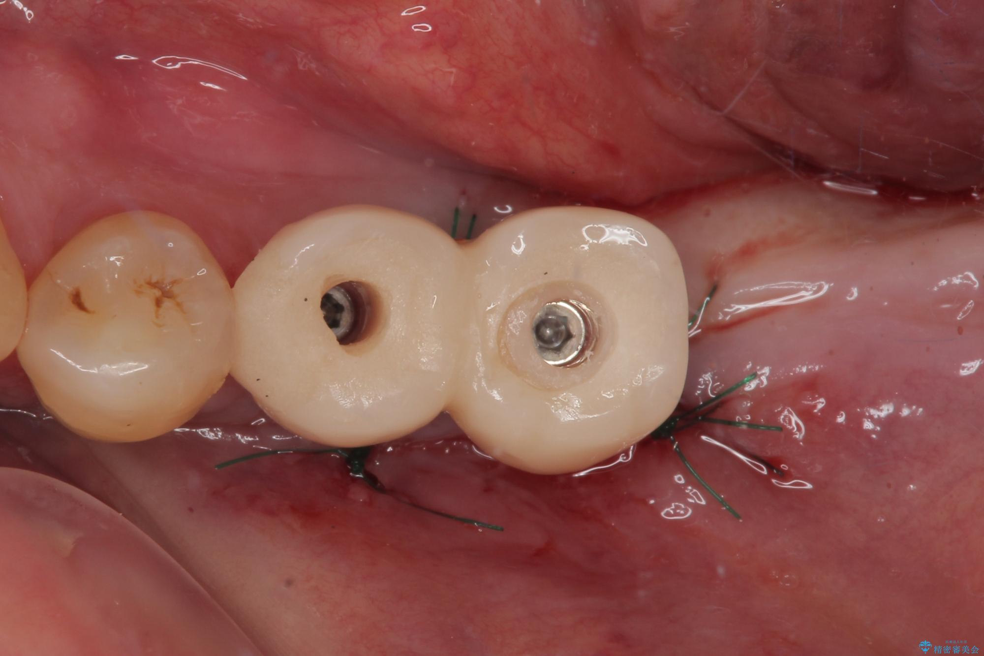 骨吸収が大きかったため、待機期間を必要としましたが、外科処置は初診時の抜歯も含めて3回に抑えることができ、半年の短期間で治療を終えることができました。