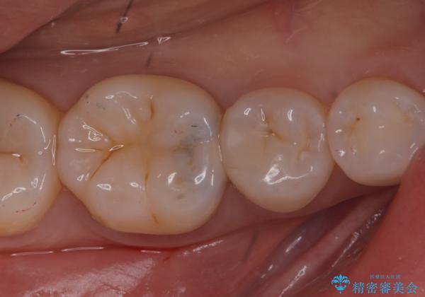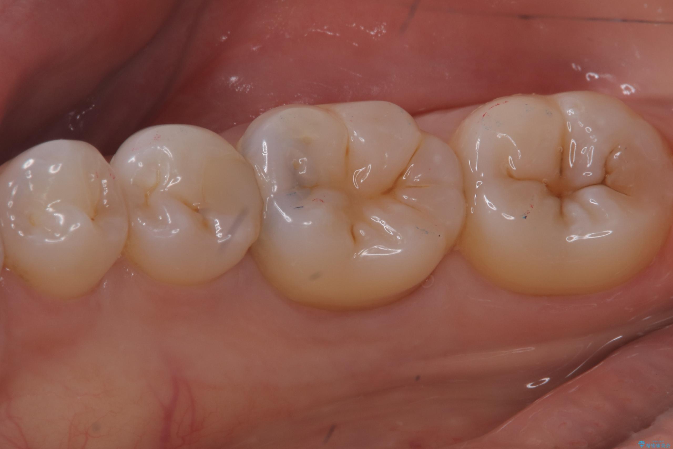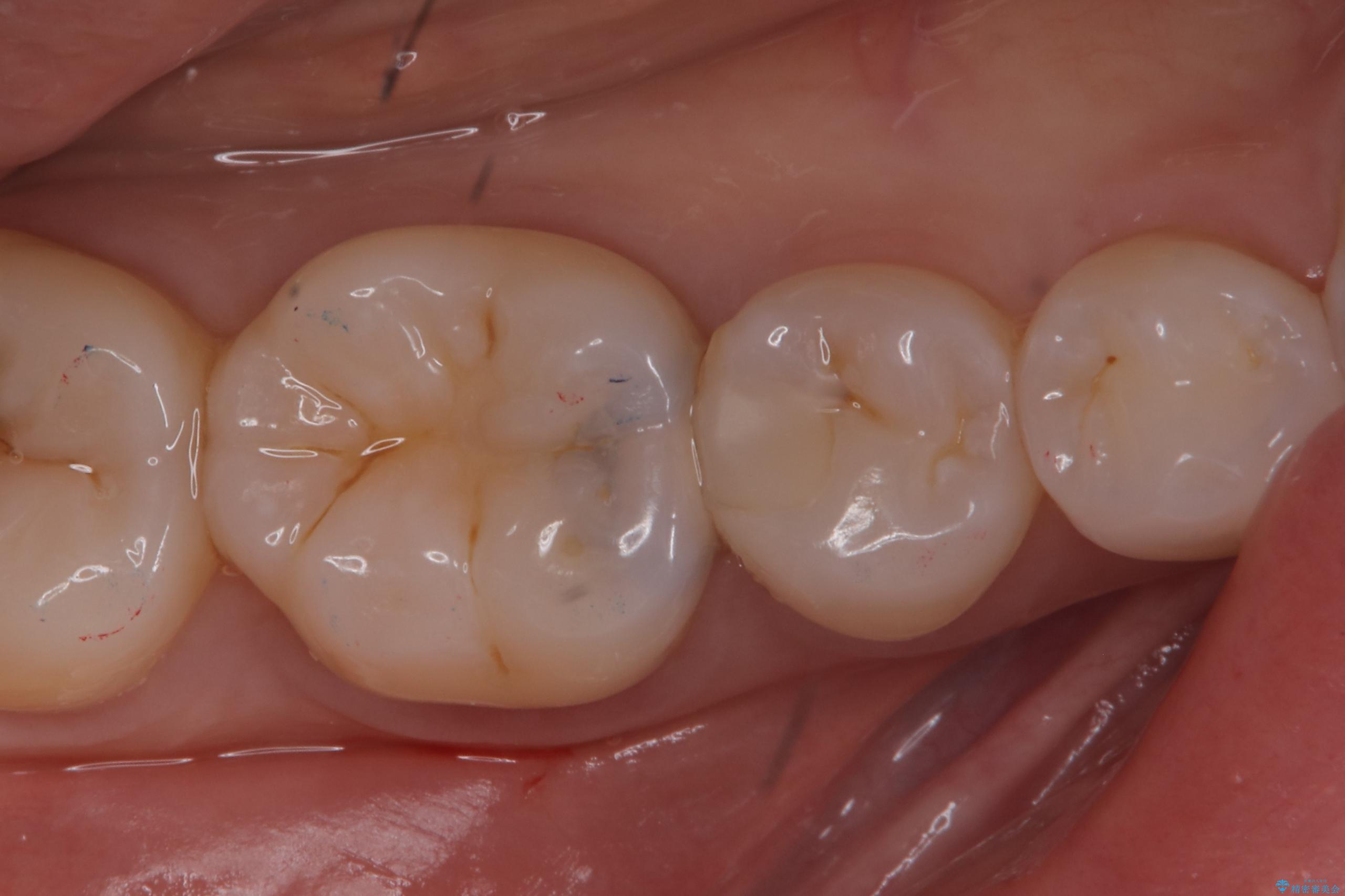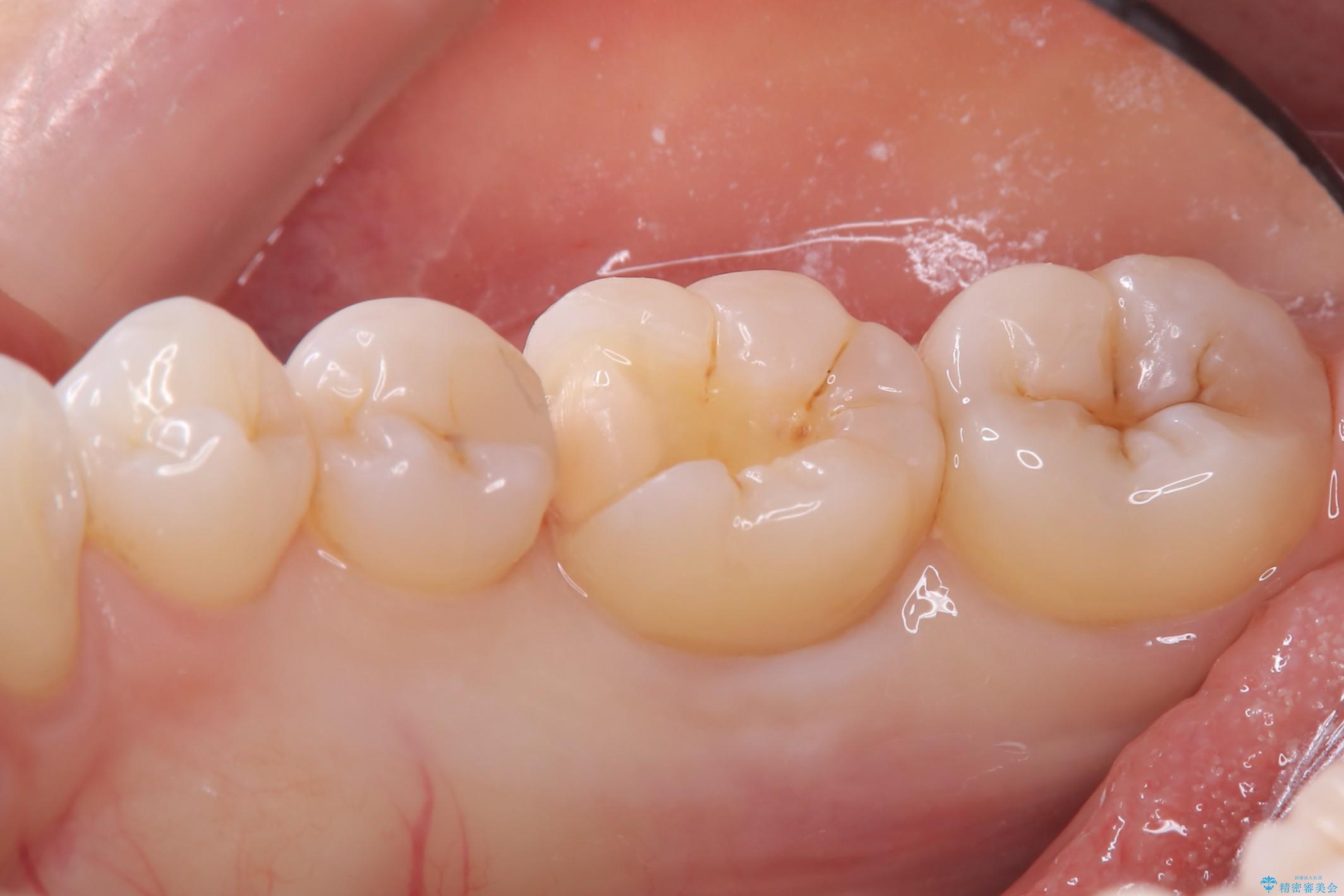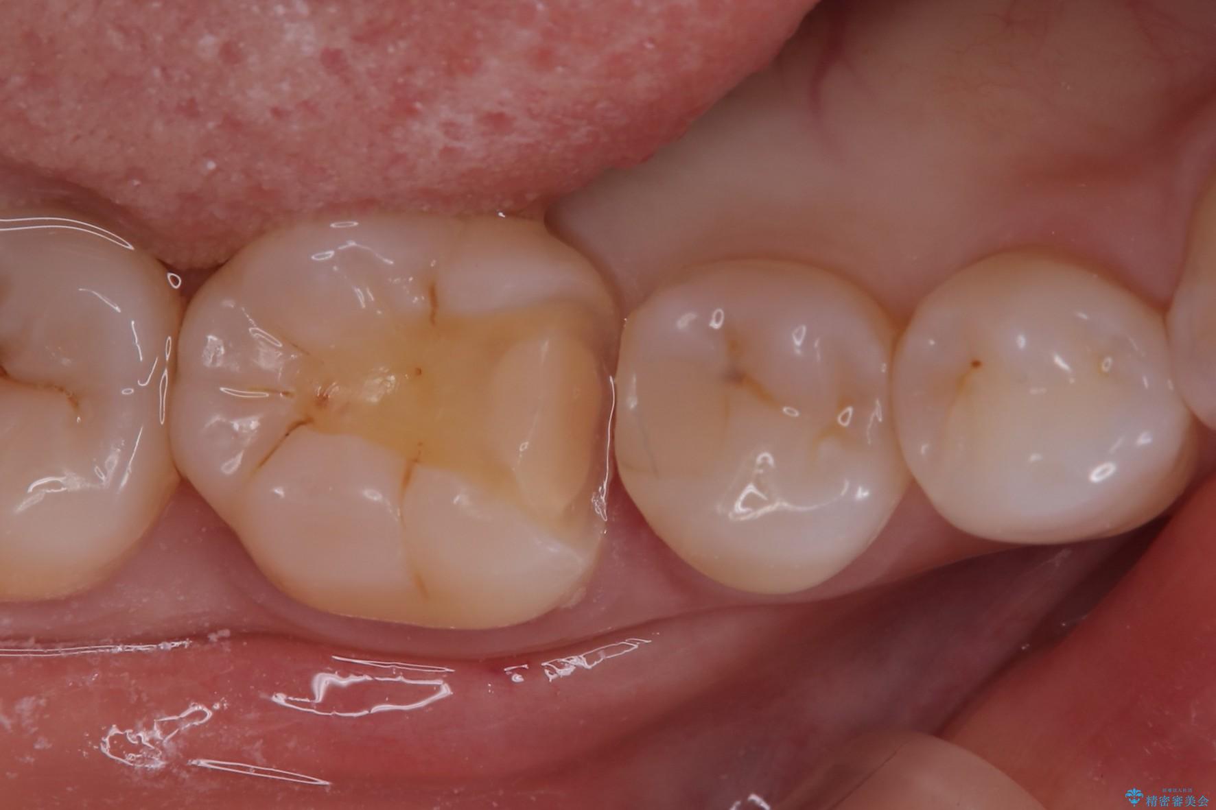 右下6番目の歯に大きめのう蝕を認め、形態の再現性を考えインレーでの治療となりました。