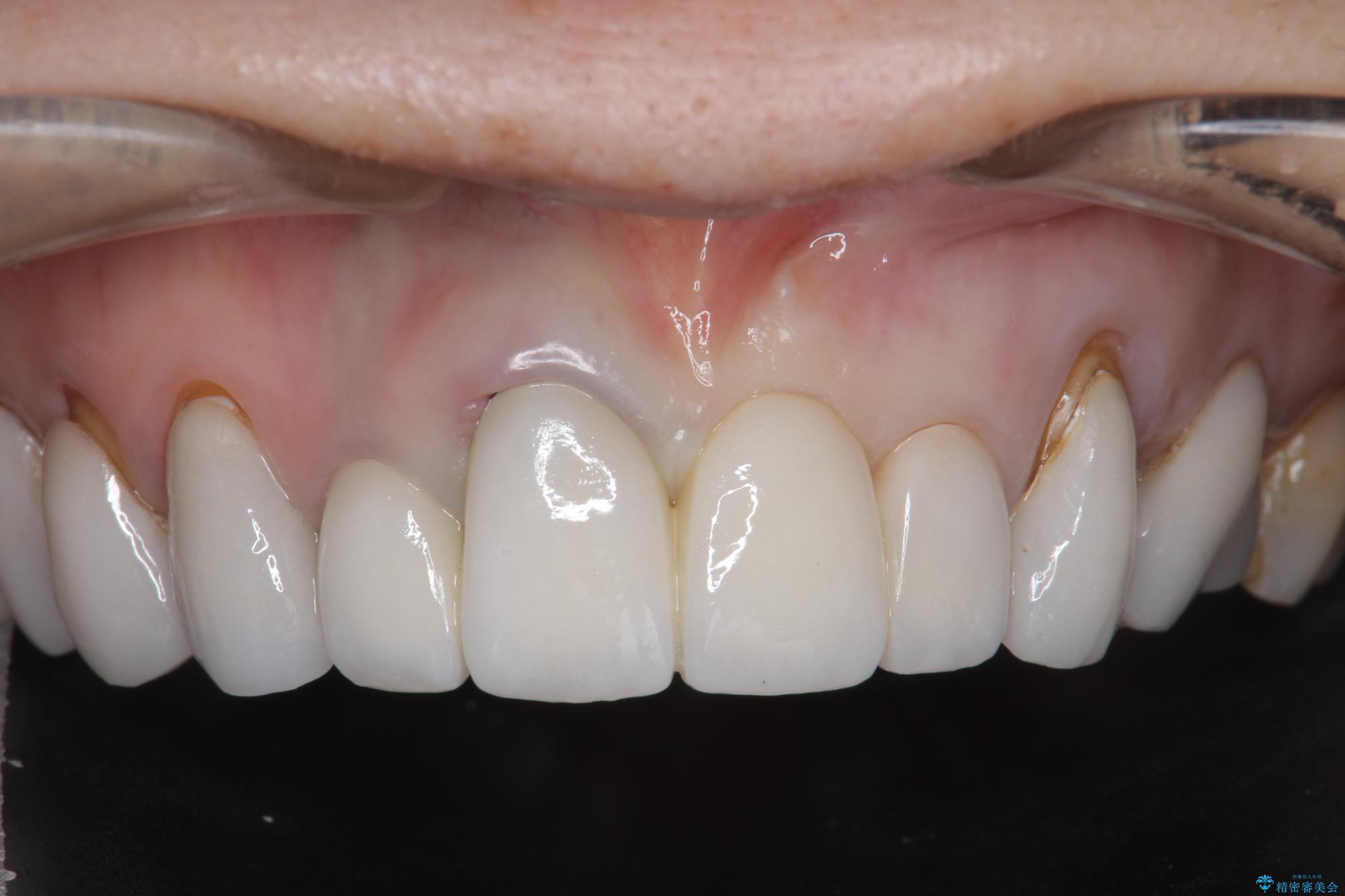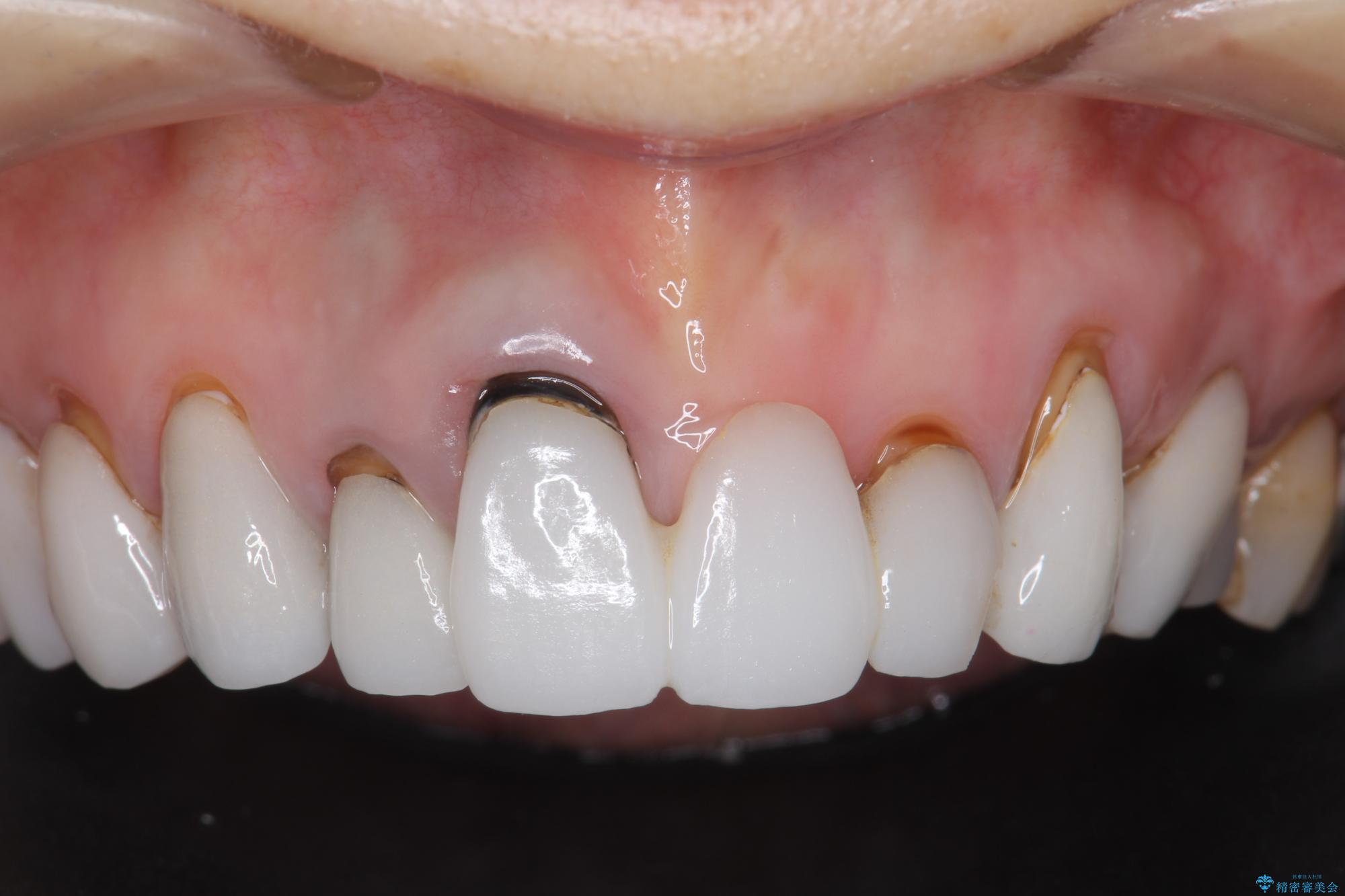 - 歯ぐきとセラミックの間の黒ずみが目立つので、きれいに治してほしい。と希望され来院されました。