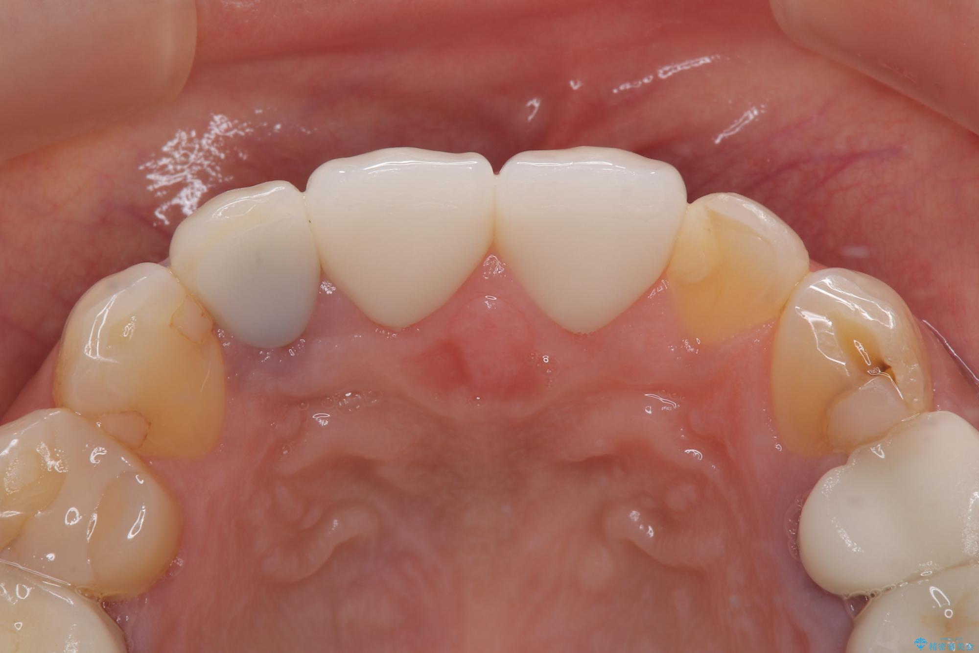 そのため当院では、上顎左右中切歯を適合精度の高いオールセラミッククラウンにて再補綴する治療をご提案し、実施いたしました。