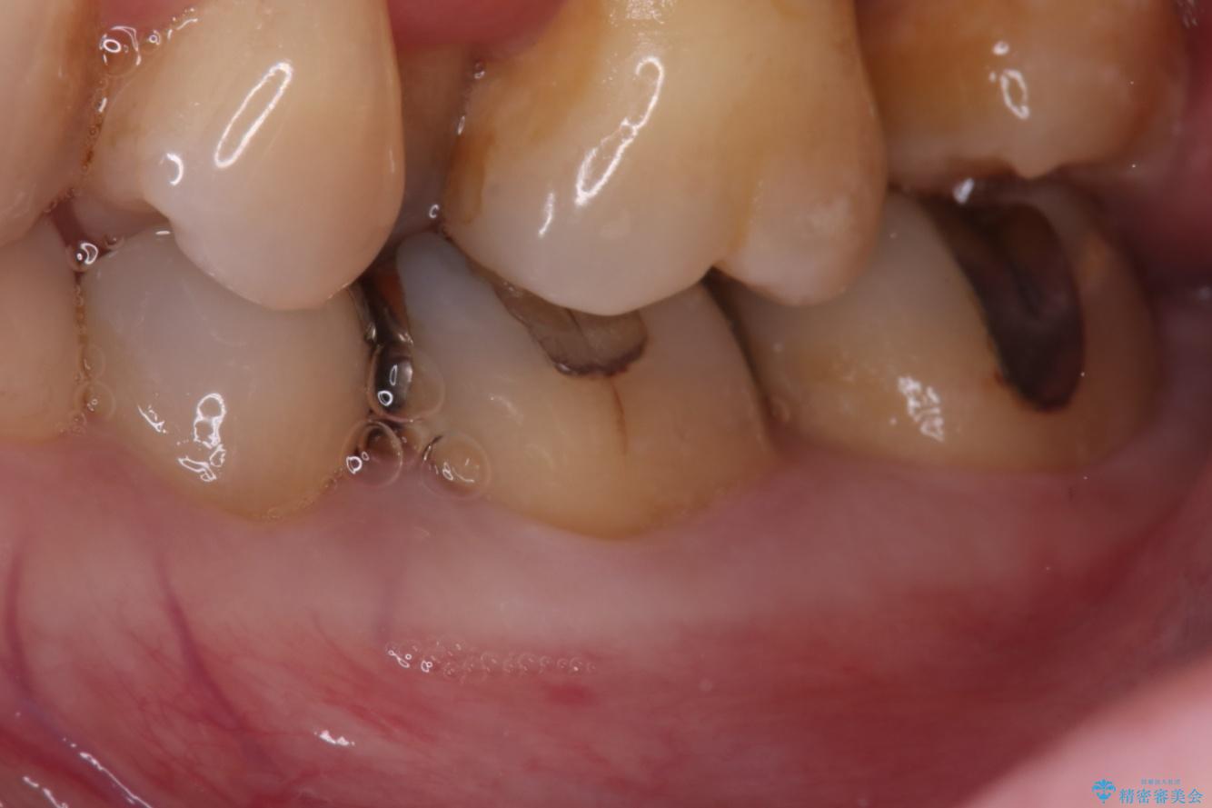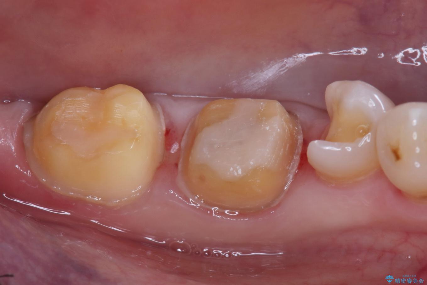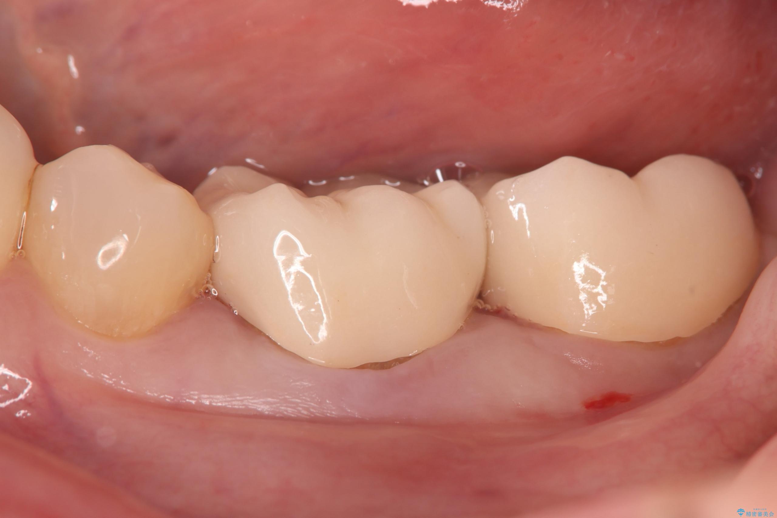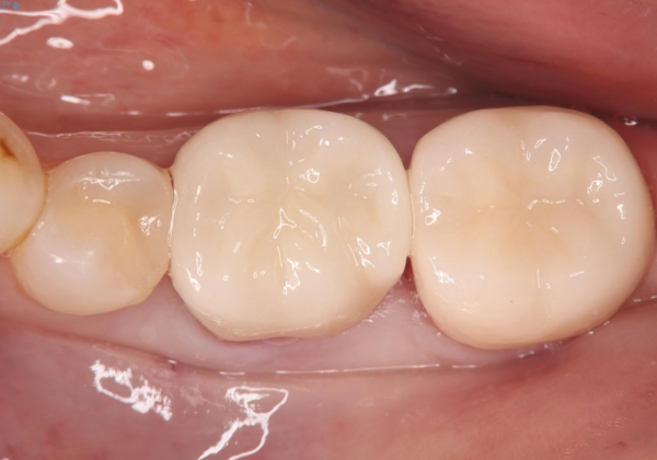 - ご友人との会話中などに、下の歯に入れてあるメタルインレーが見えてしまうのが気になり、やり変えを希望された患者様です。審美性、清掃性に優れたセラミックでの治療を希望されたため、セラミックインレー、クラウンで治療いたしました。