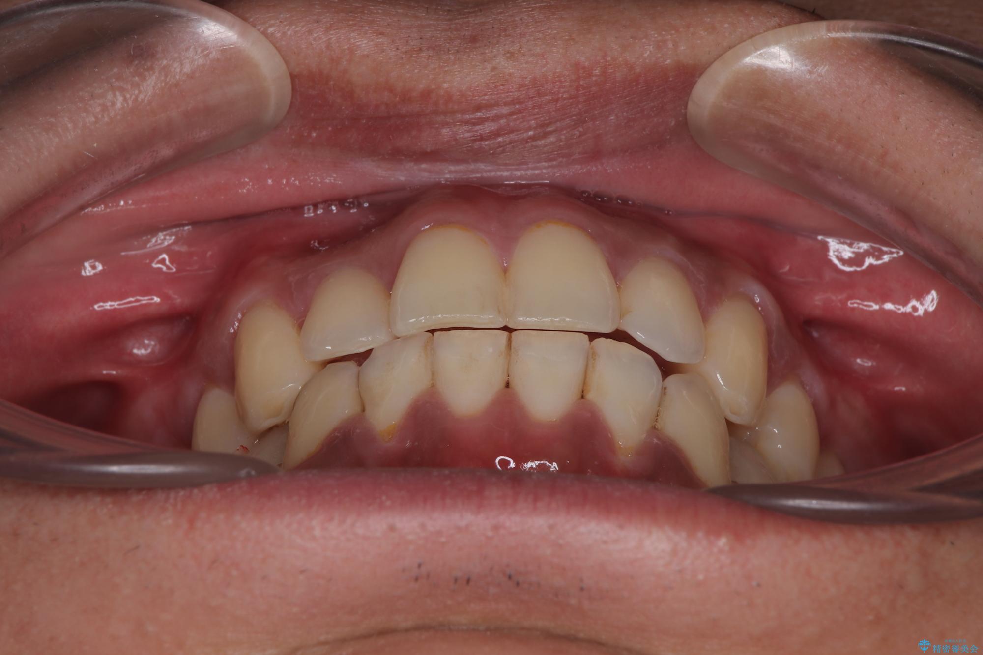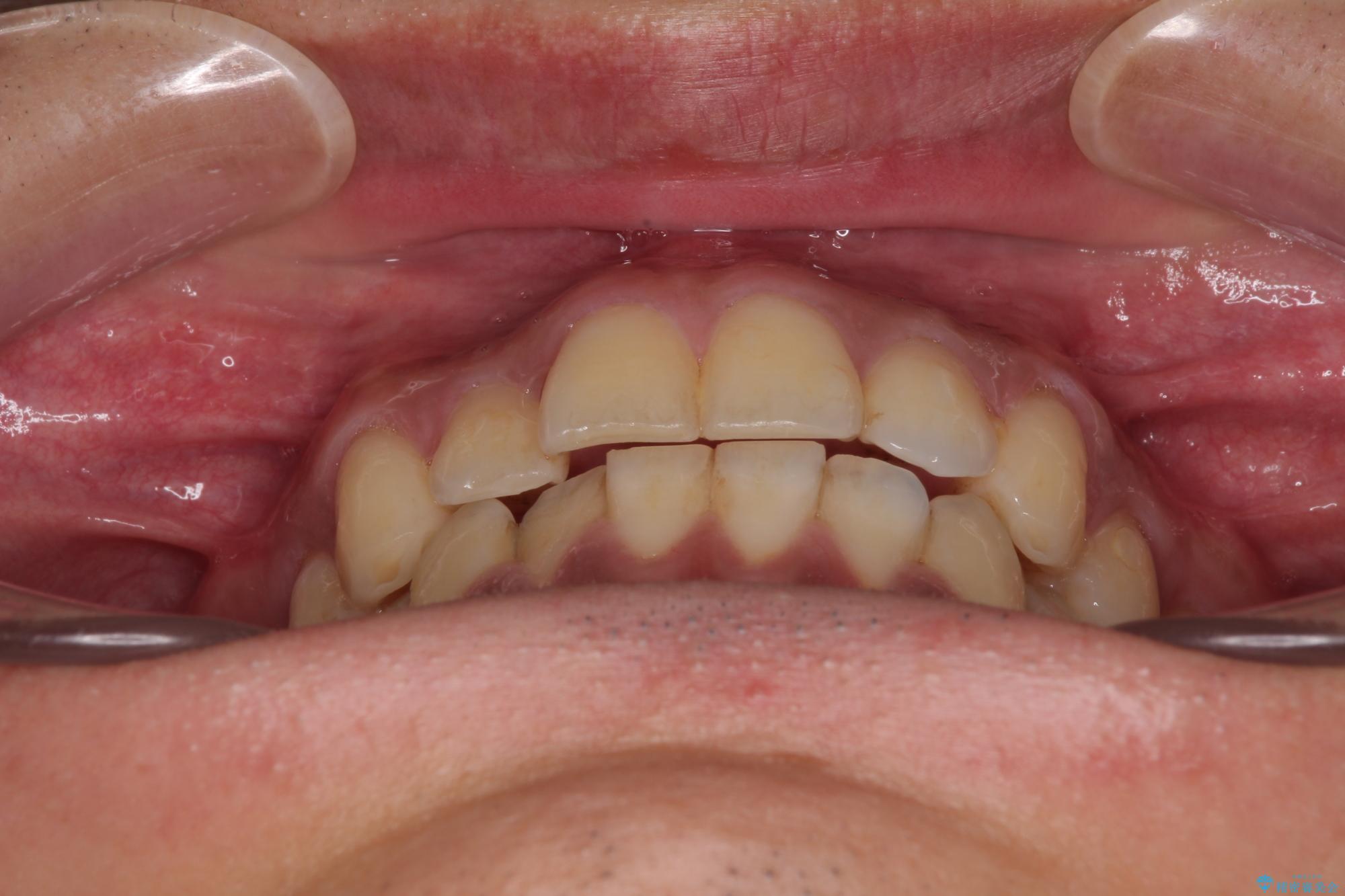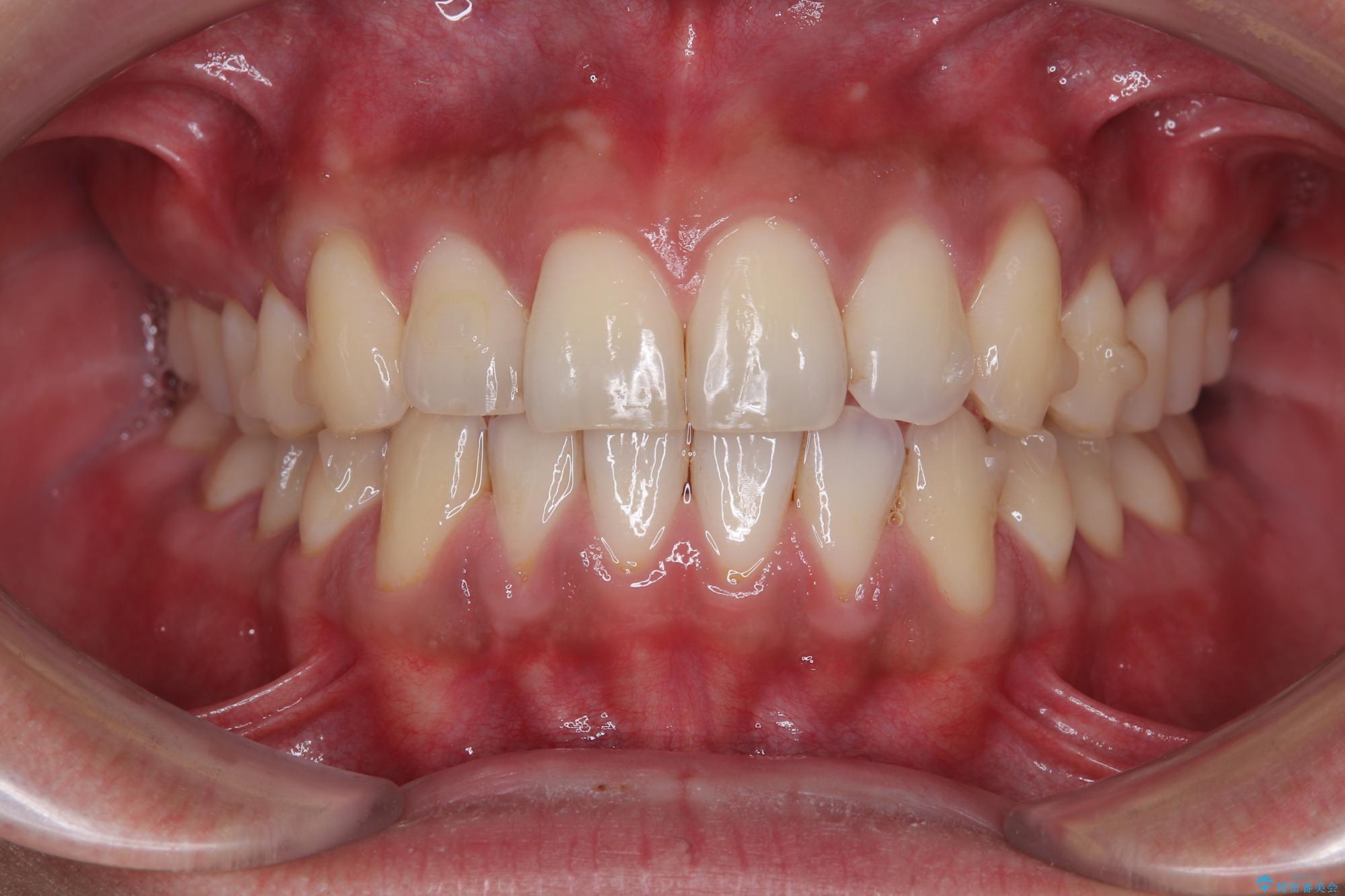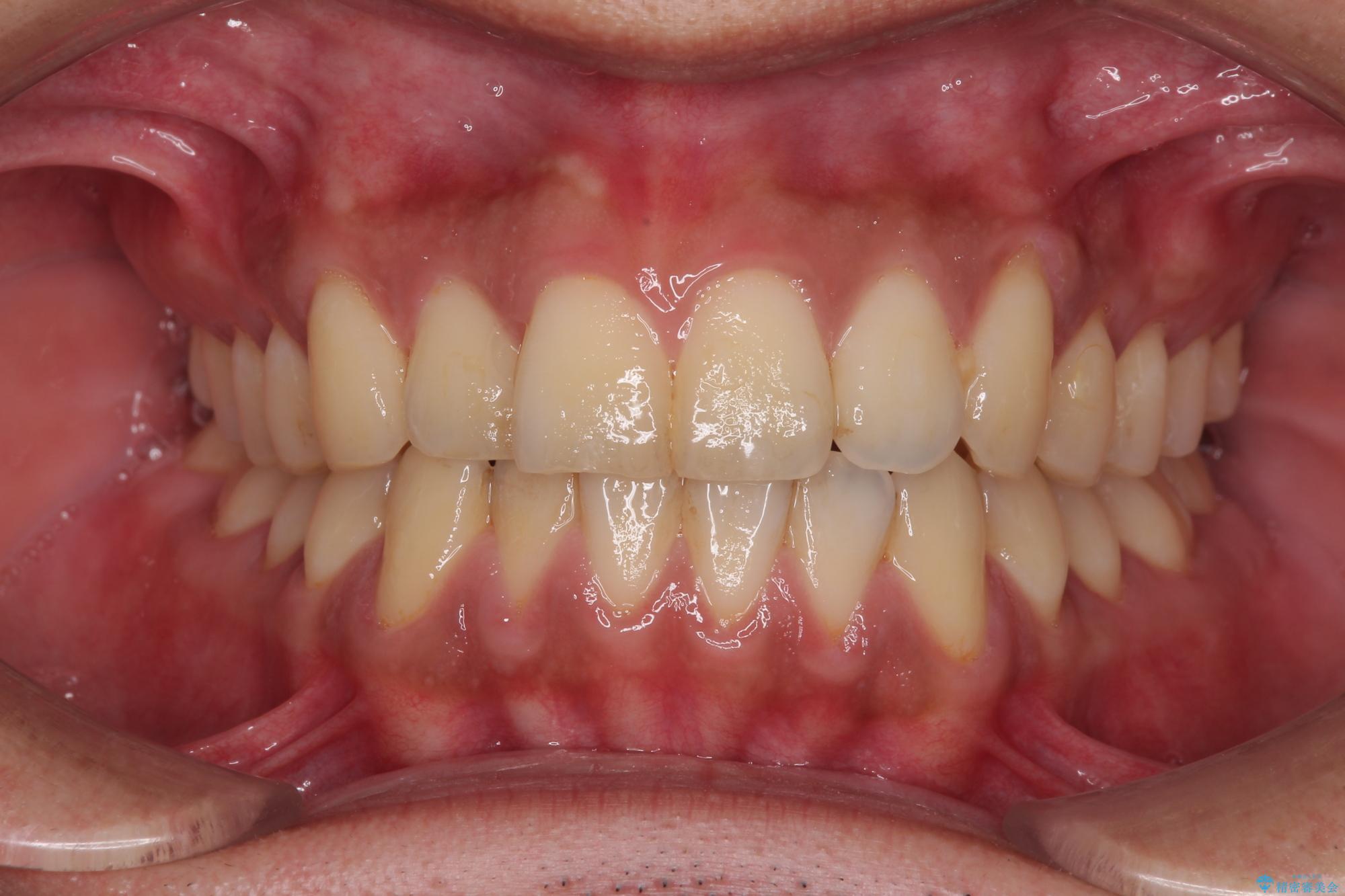 診察したところ、上下顎前歯部に軽度の叢生(ガタつき)が認められます。