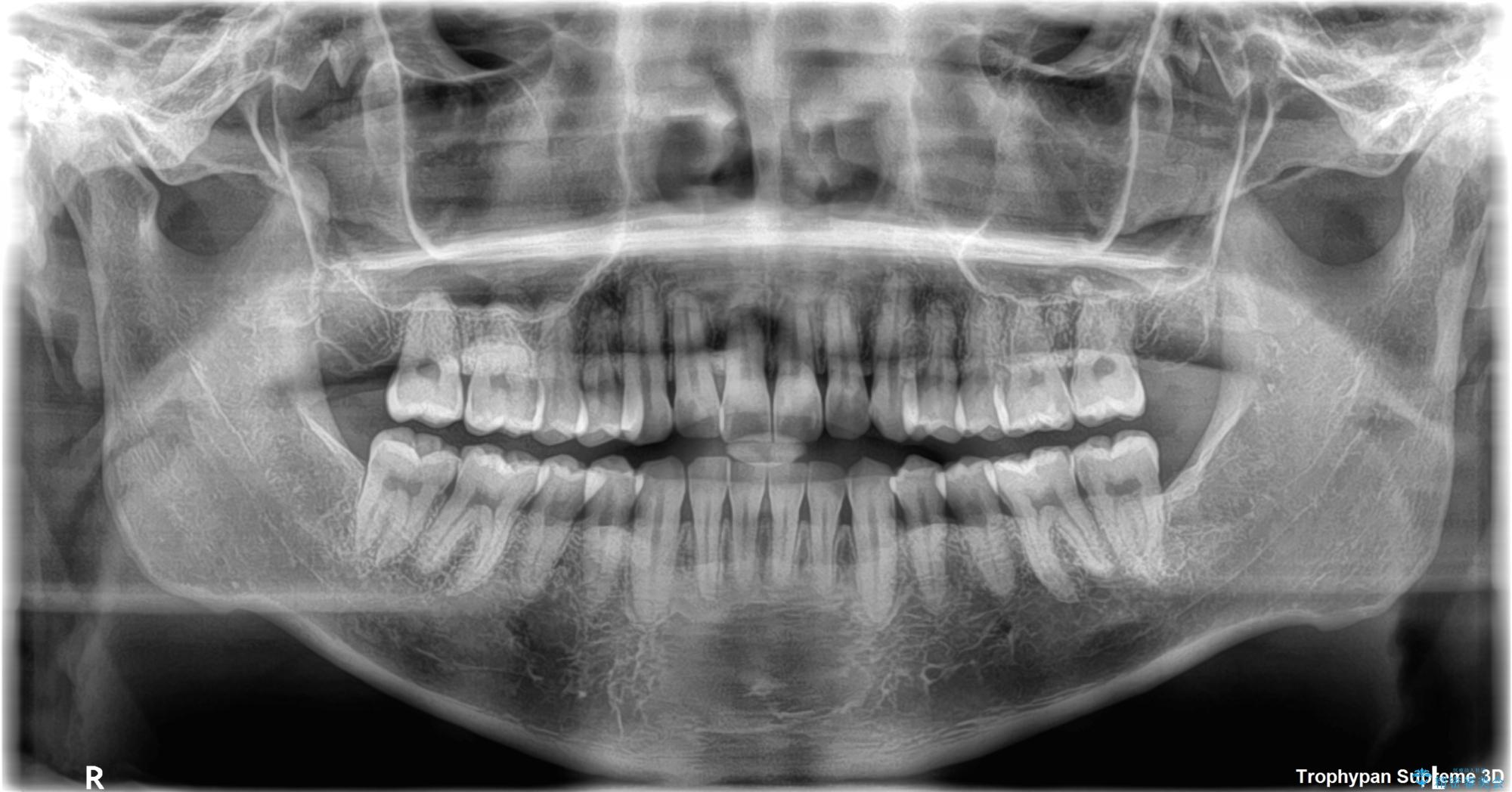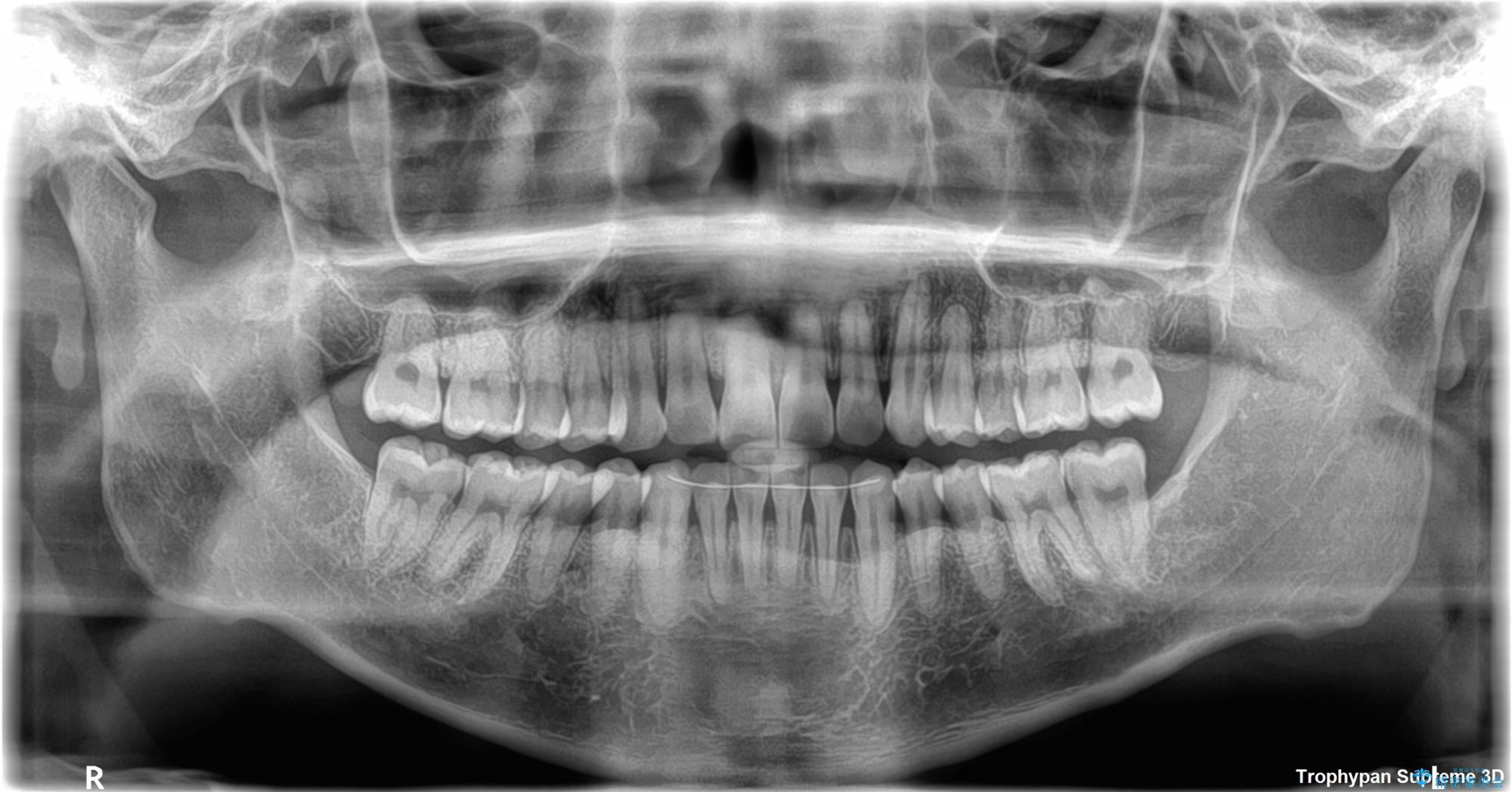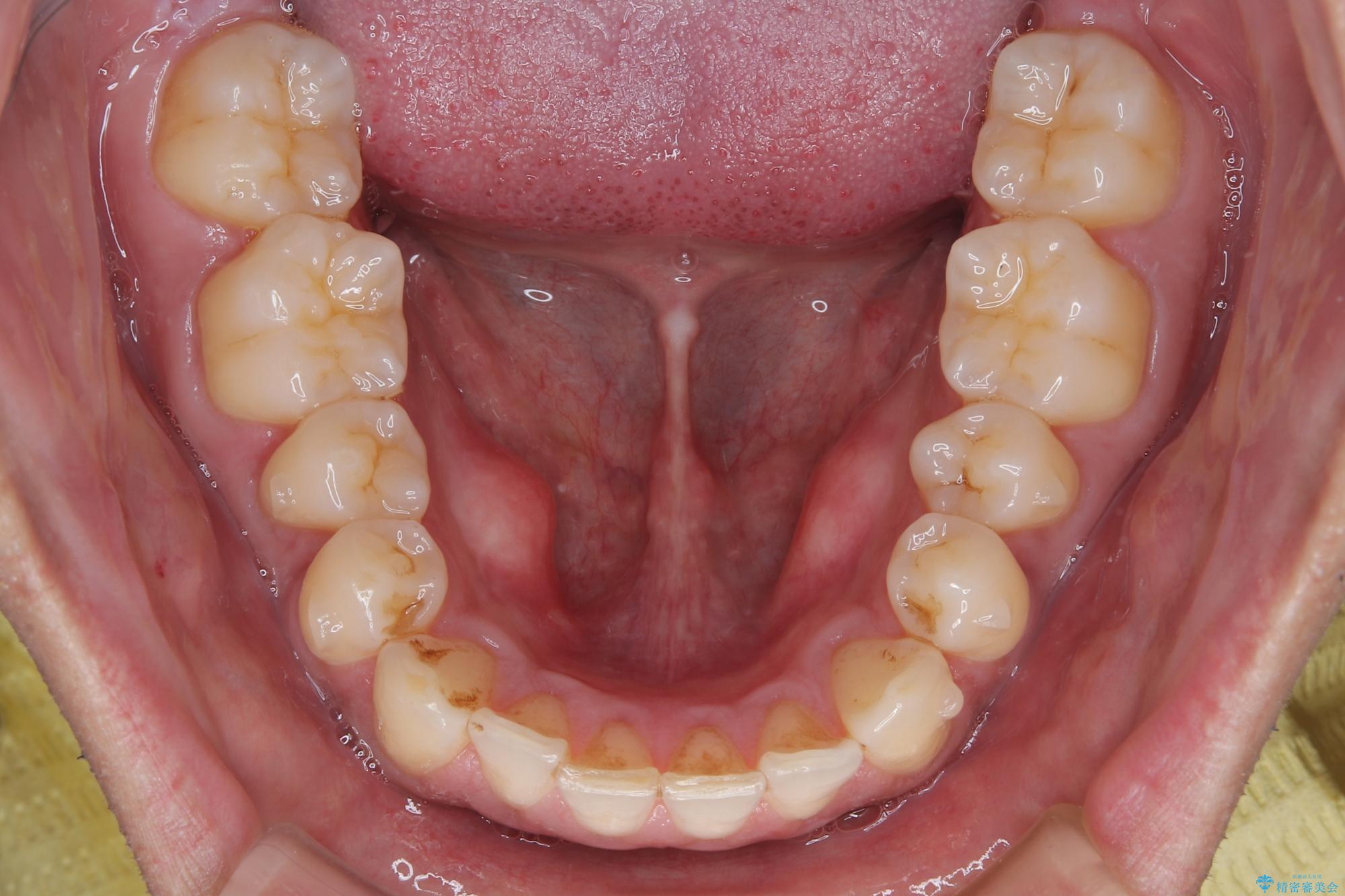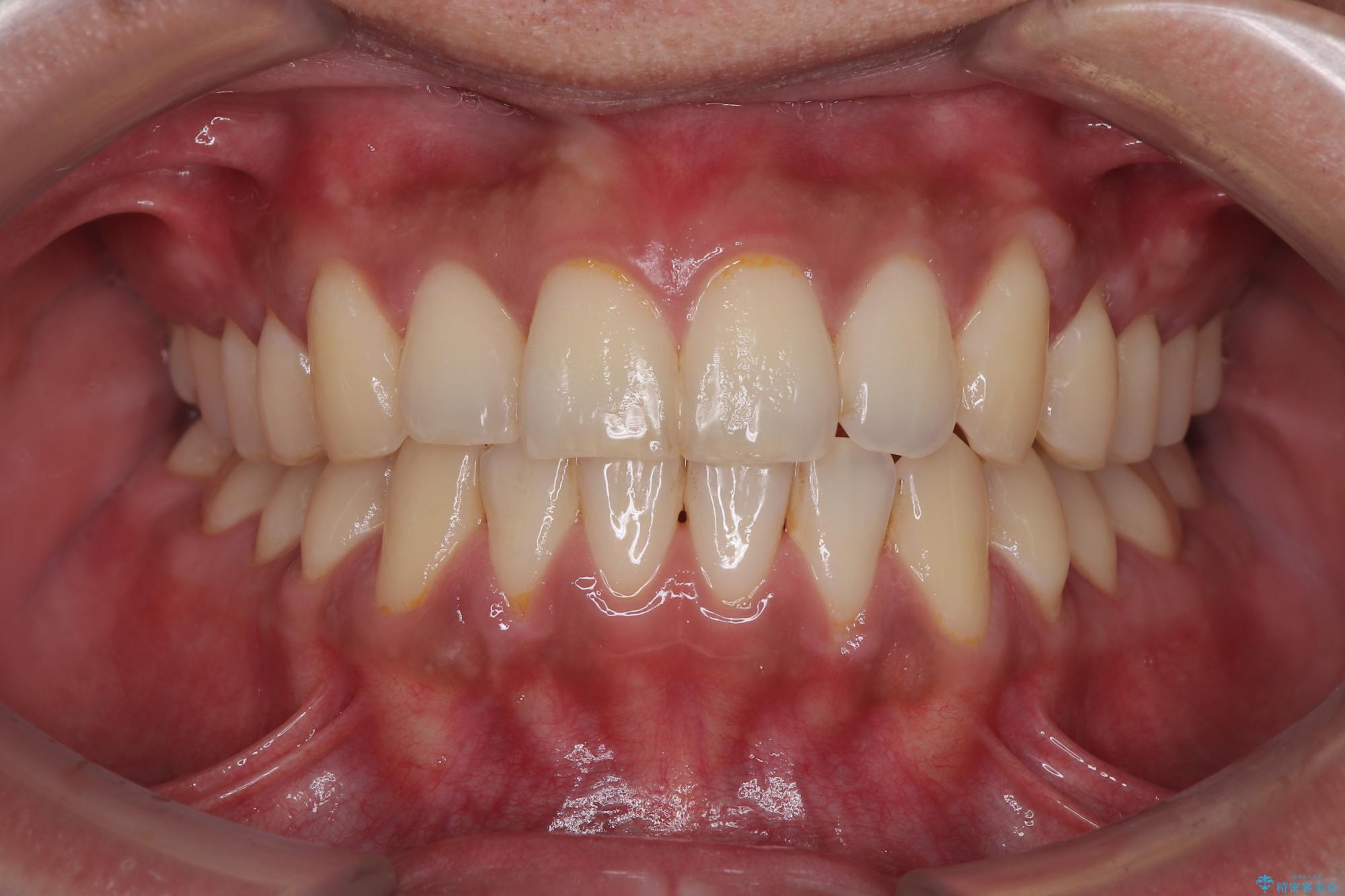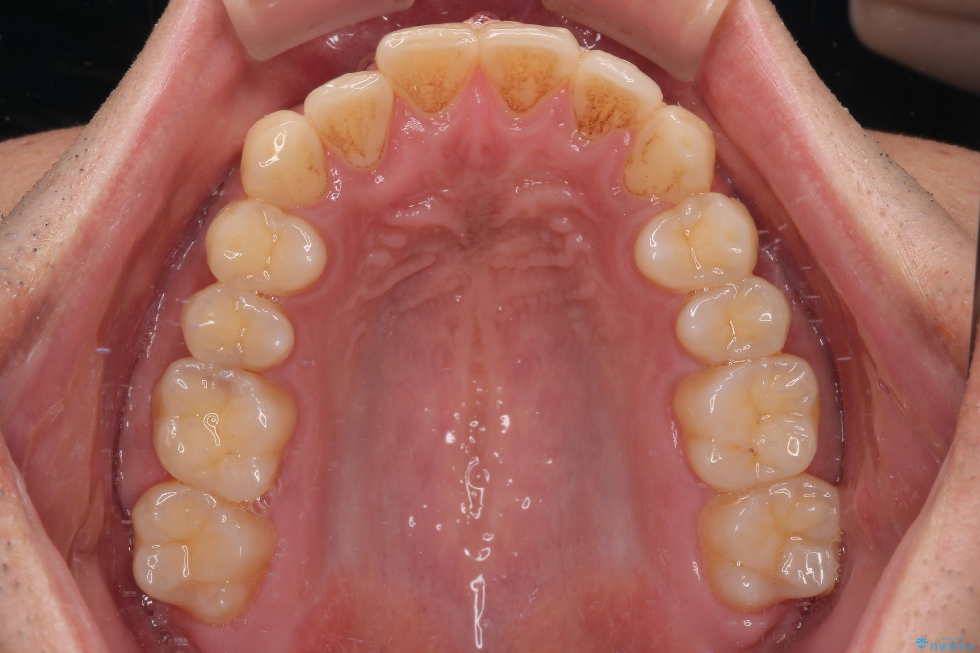 診察したところ、上下顎前歯部に軽度の叢生(ガタつき)が認められます。