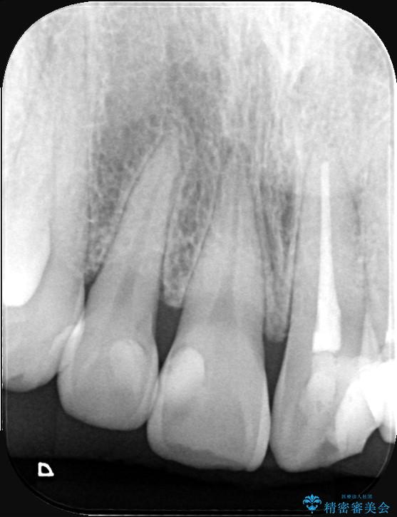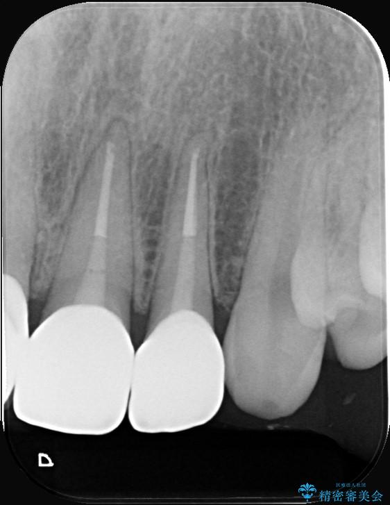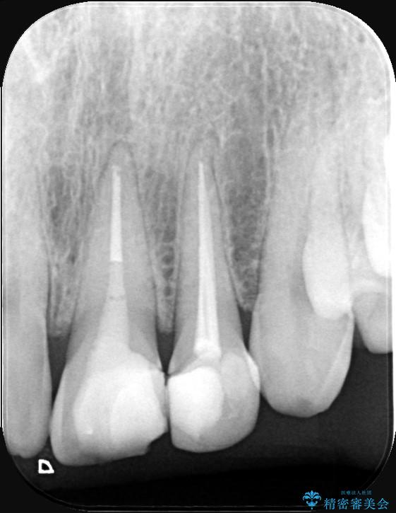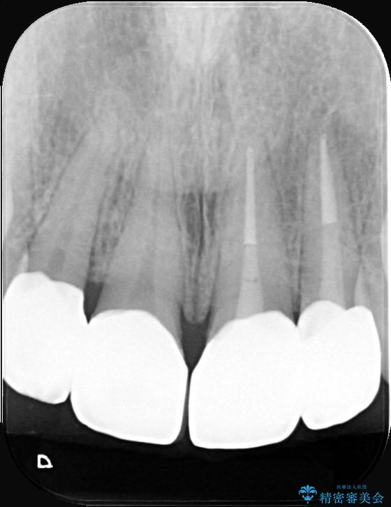 - 上顎の前歯4本が、過去の治療痕による変色や欠けで見た目が気になるとの主訴でご来院されました。患者様は、思い切り笑えるよう自然で美しい前歯を求めていらっしゃいました。そこで、最も天然歯に近い審美性を再現できるオールセラミッククラウンを用いた治療計画を立案しました。歯並びや色のバランスを整え、長期的に安定する美しい口元を獲得することを目指します。