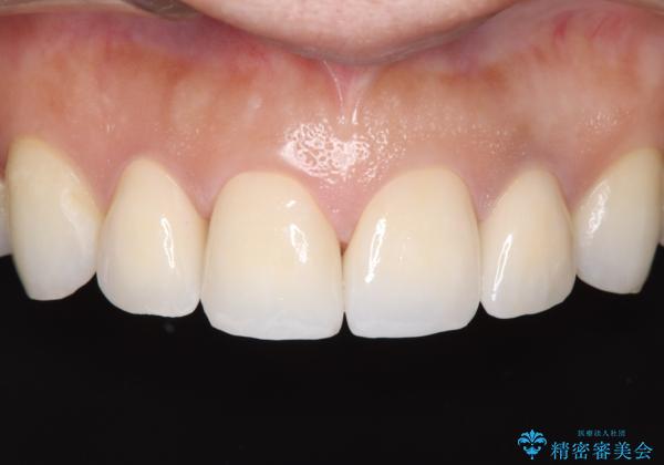 緻密な色合わせと形態調整を重ねた結果、長年のコンプレックスであった前歯の欠けや変色が解消。機能性と審美性が完璧に調和した、自信を持って笑える美しい口元を実現することができました。