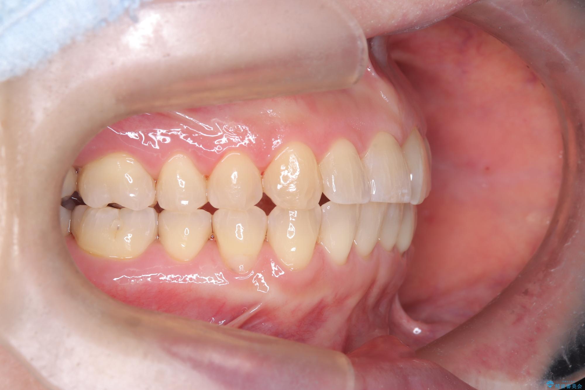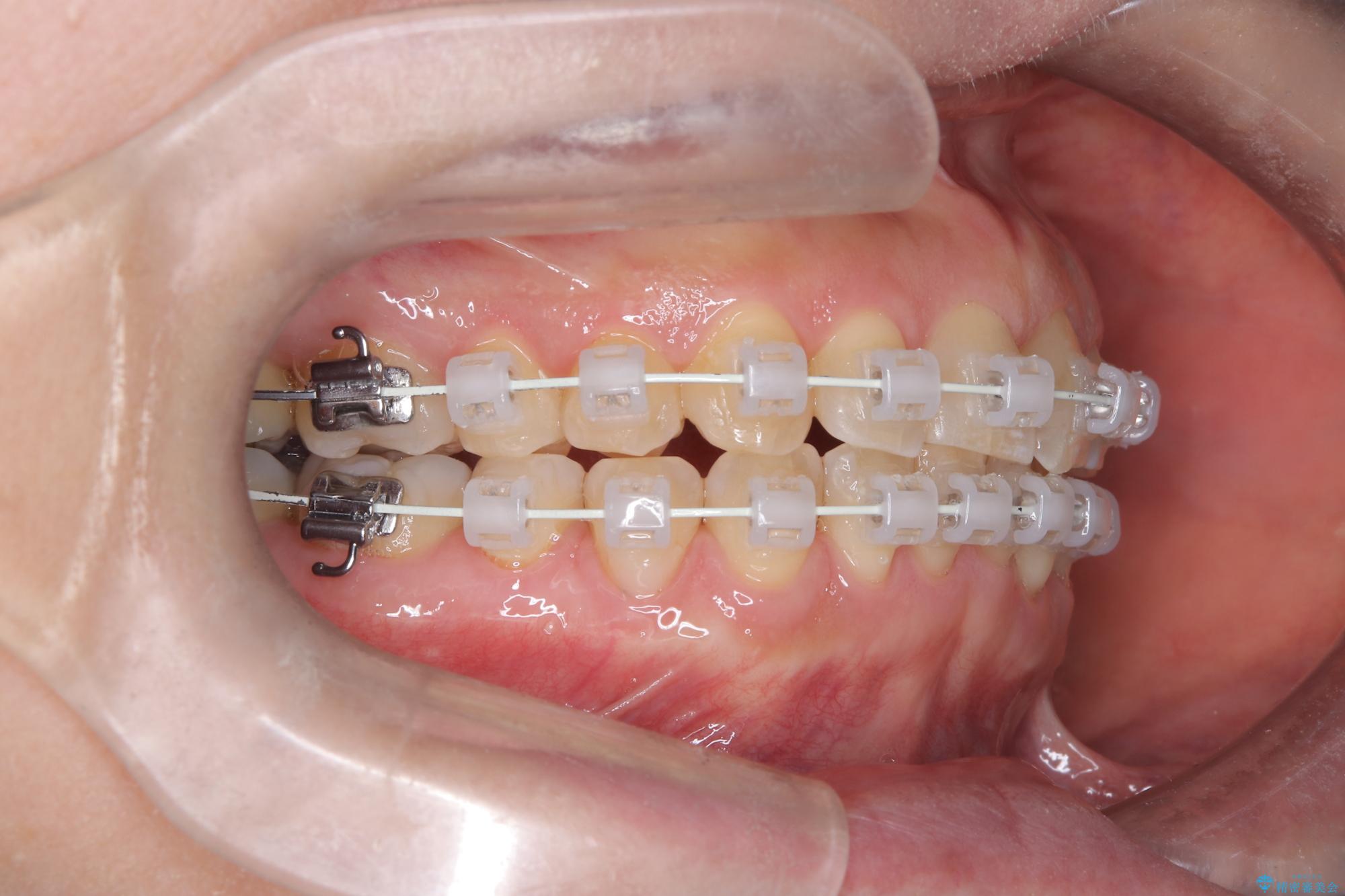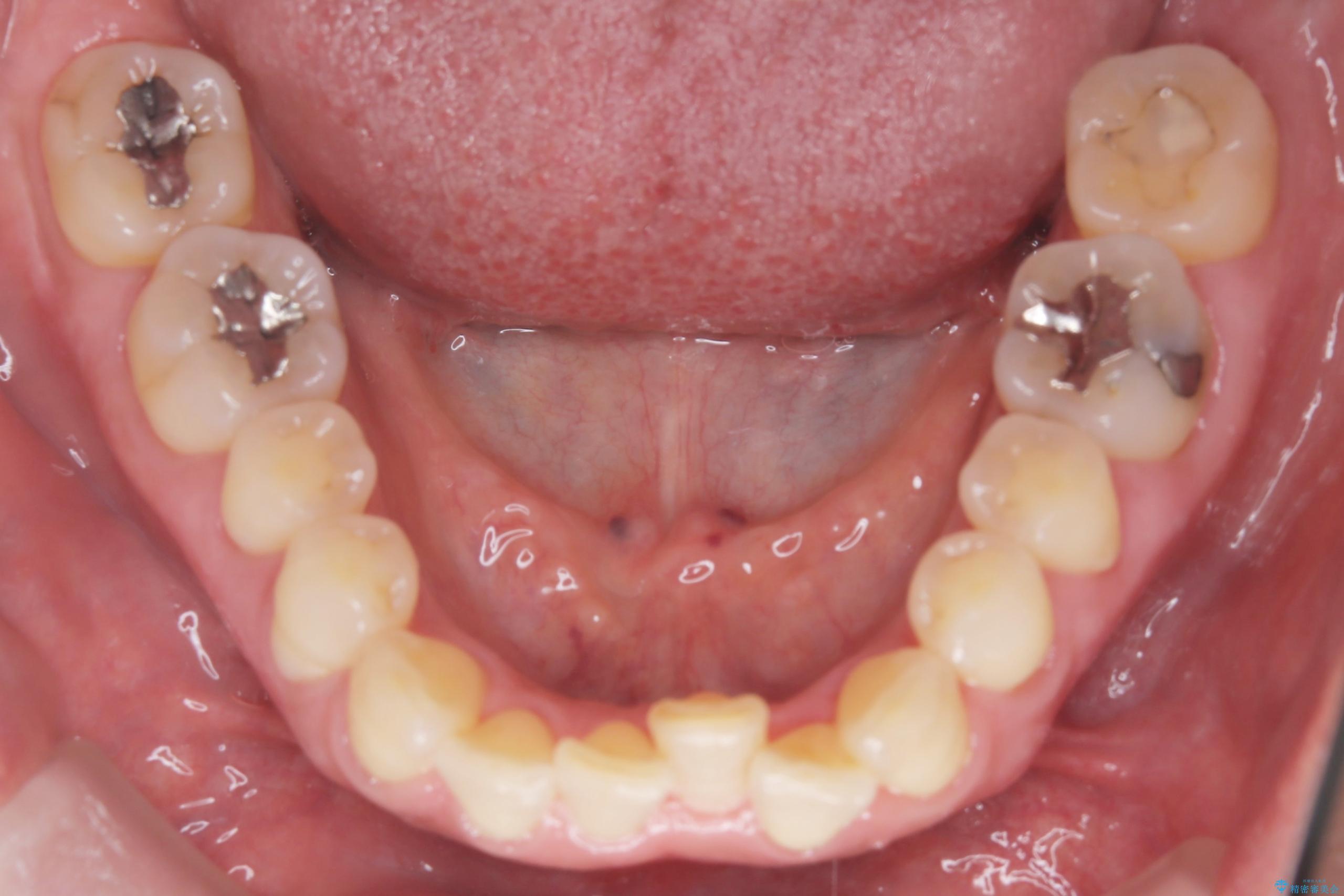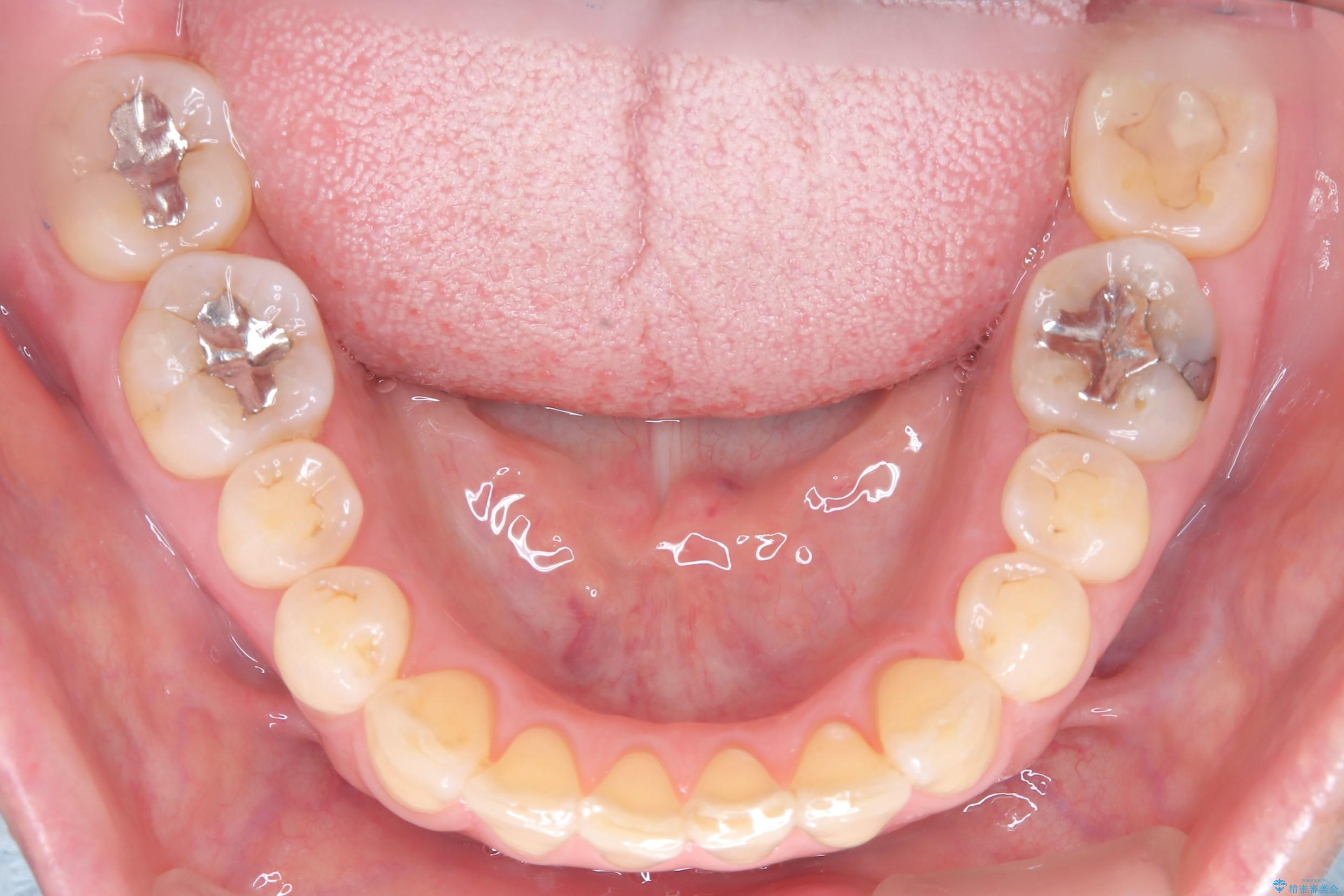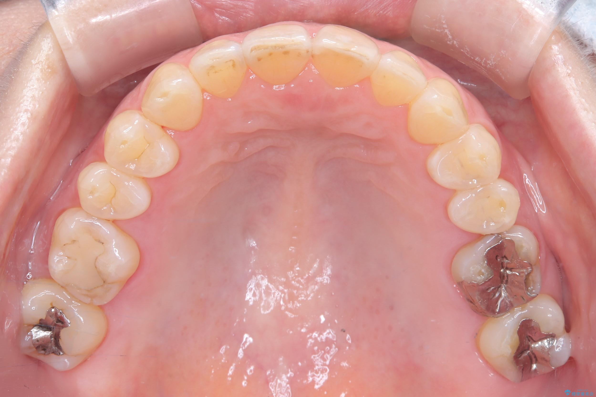スペース確保のために、まず奥歯全体をわずかに後方へ動かす遠心移動を実施し、前歯を並べるためのスペースを確保。さらに、安全性に配慮しながら歯の側面をわずかに削るIPRを併用し、デコボコを解消しました。