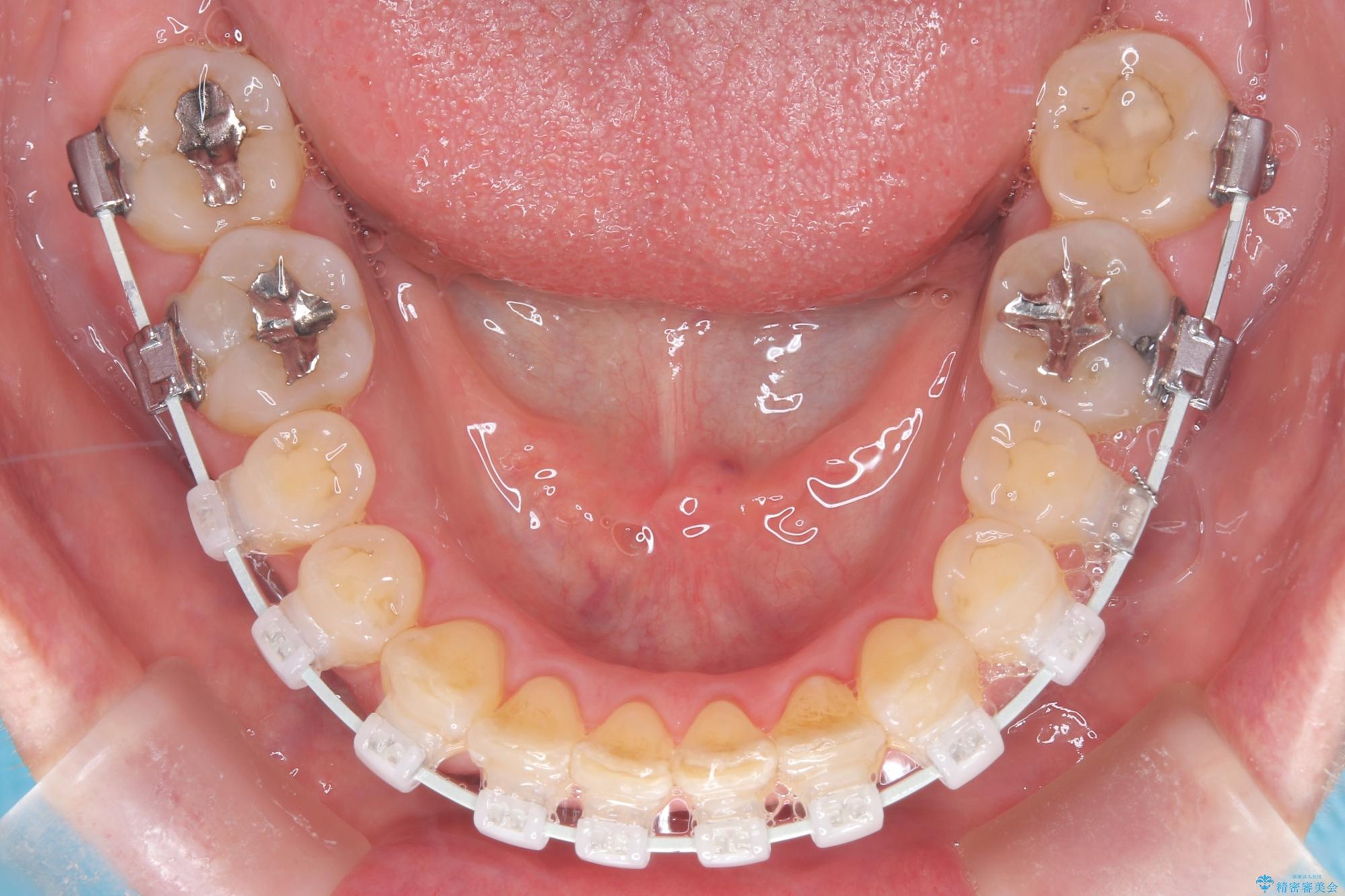 今回の矯正治療では、歯の色に近い目立たない審美ブラケットとワイヤーを使用しました。
