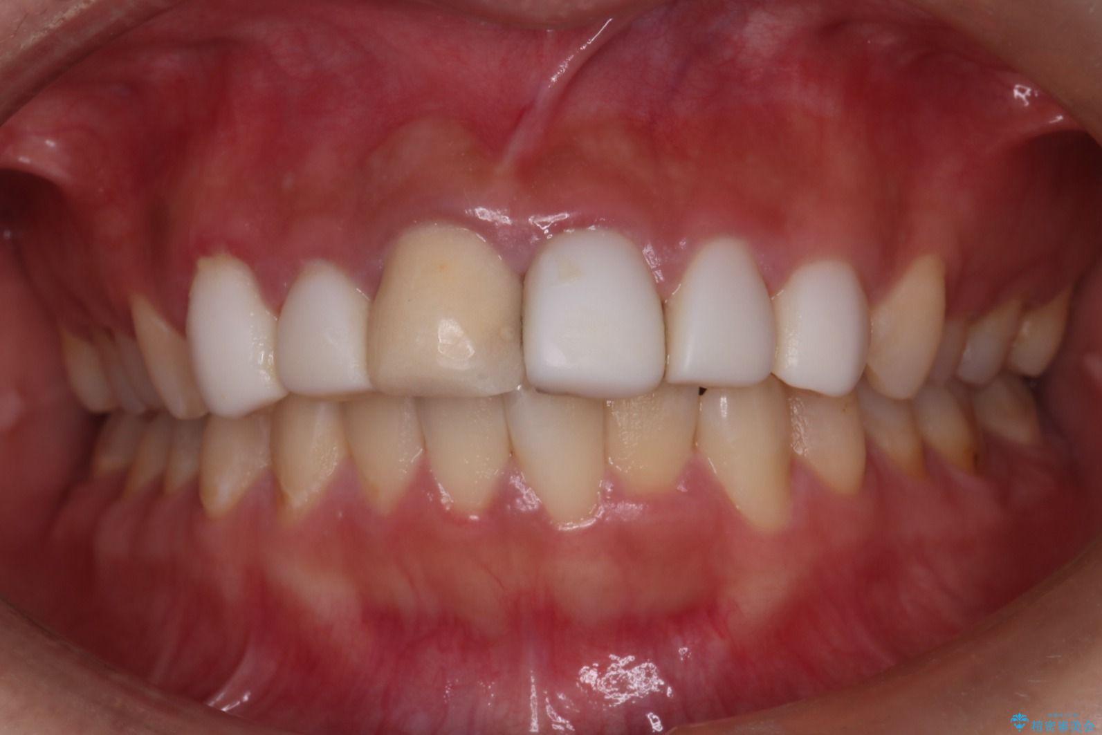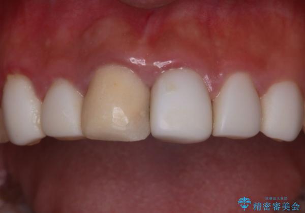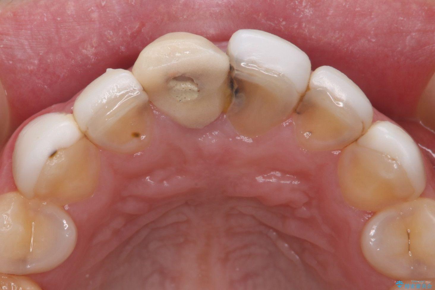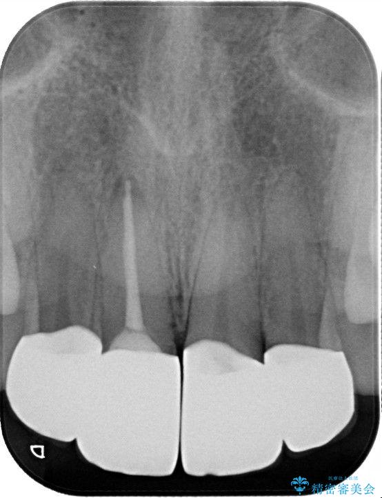 - 他院で治療した前歯の色が気になるということで来院された患者様です。前歯に色の差があり、レントゲンから内部にう蝕も見られたため、審美性に優れ、う蝕になりにくいオールセラミッククラウンで治療いたしました。