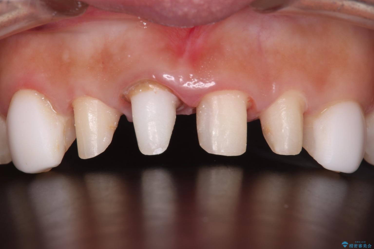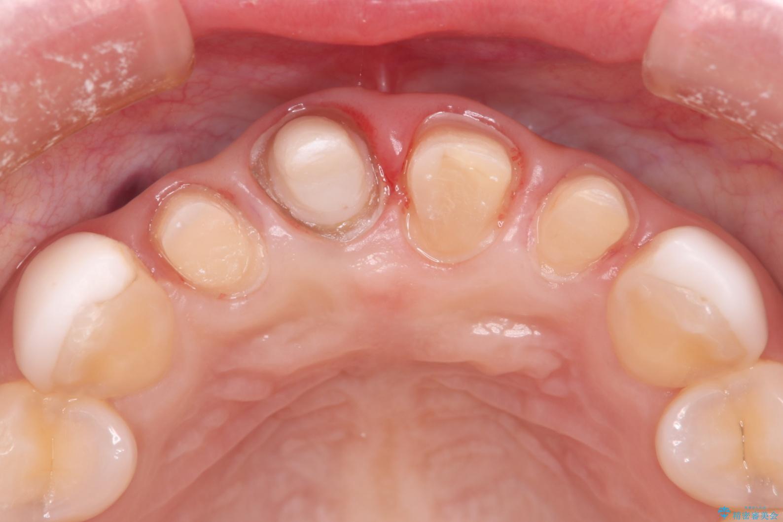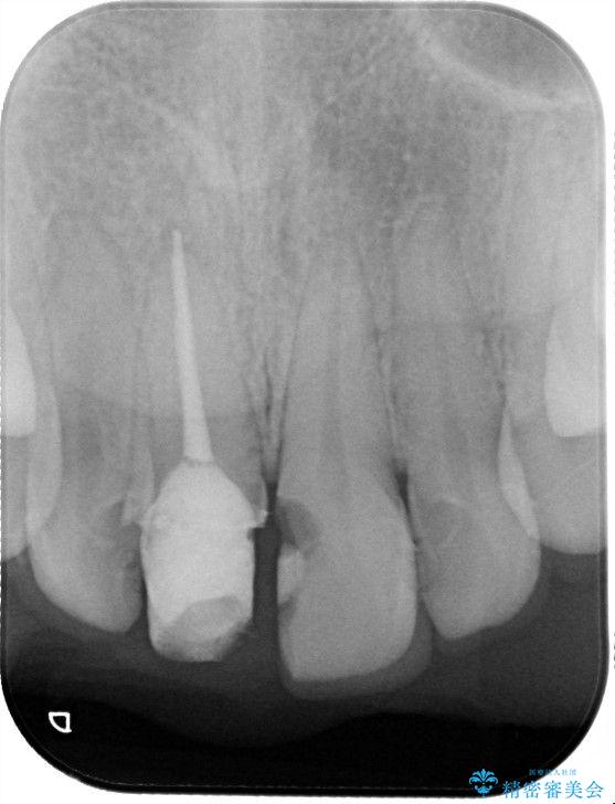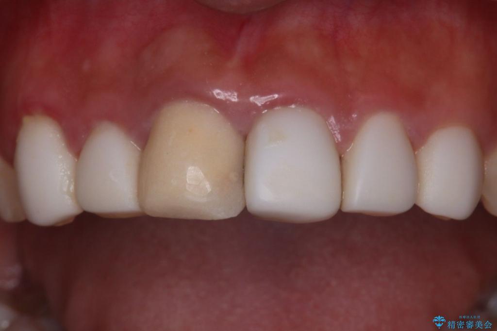 - 他院で治療した前歯の色が気になるということで来院された患者様です。前歯に色の差があり、レントゲンから内部にう蝕も見られたため、審美性に優れ、う蝕になりにくいオールセラミッククラウンで治療いたしました。
