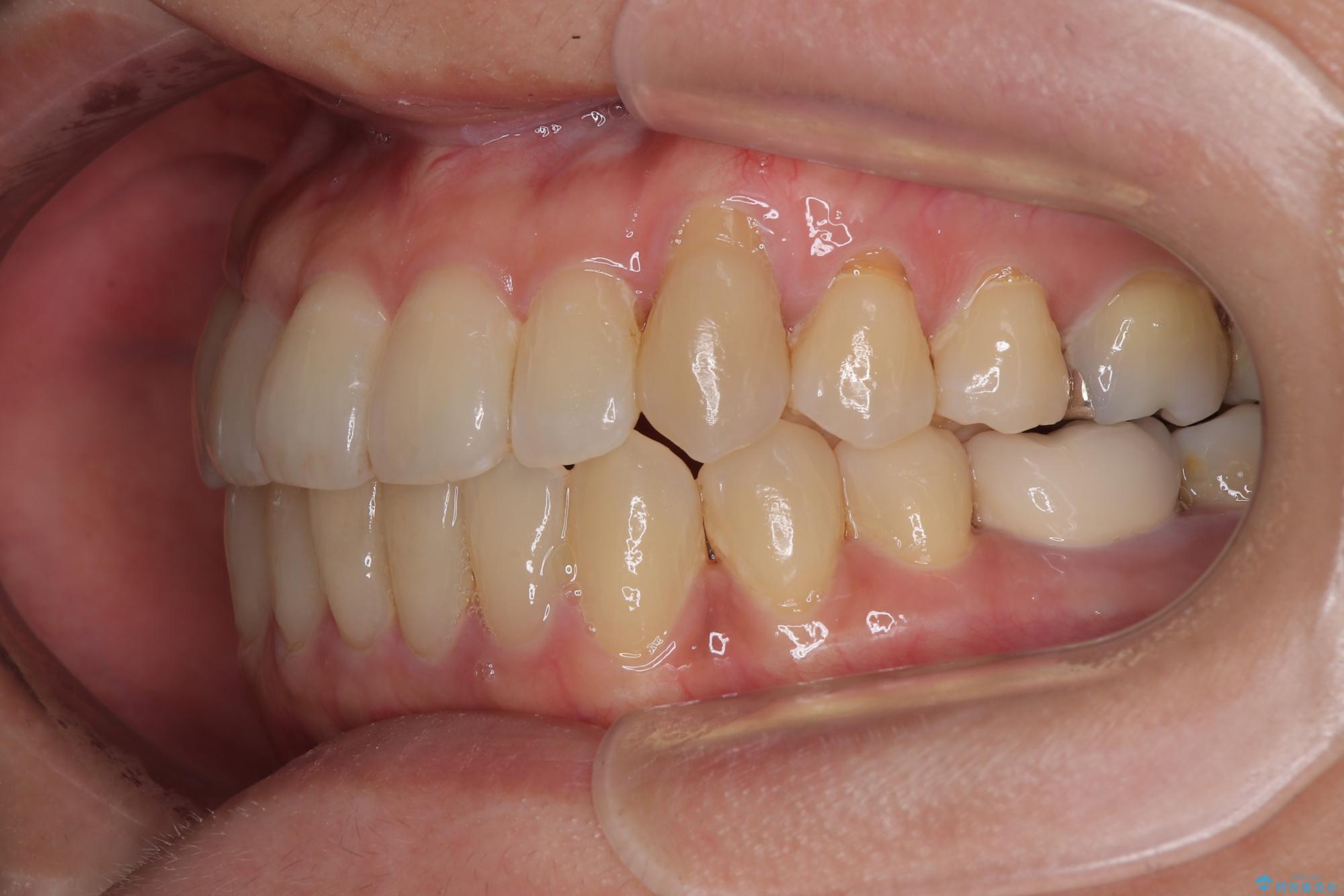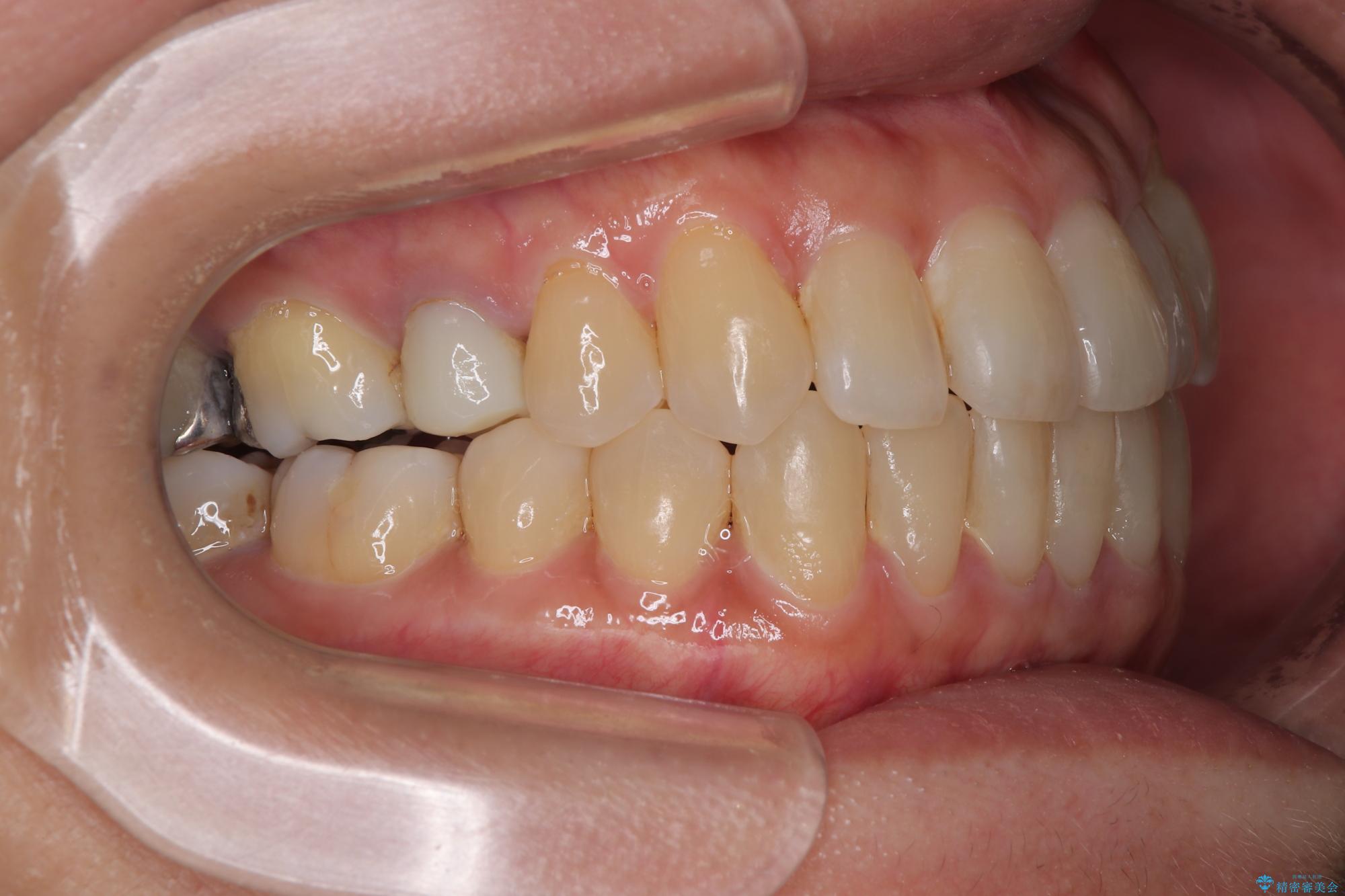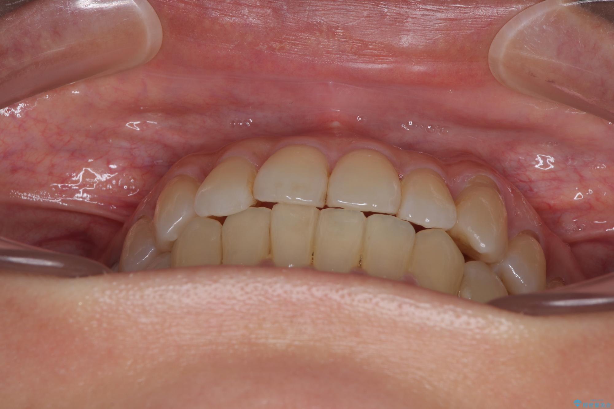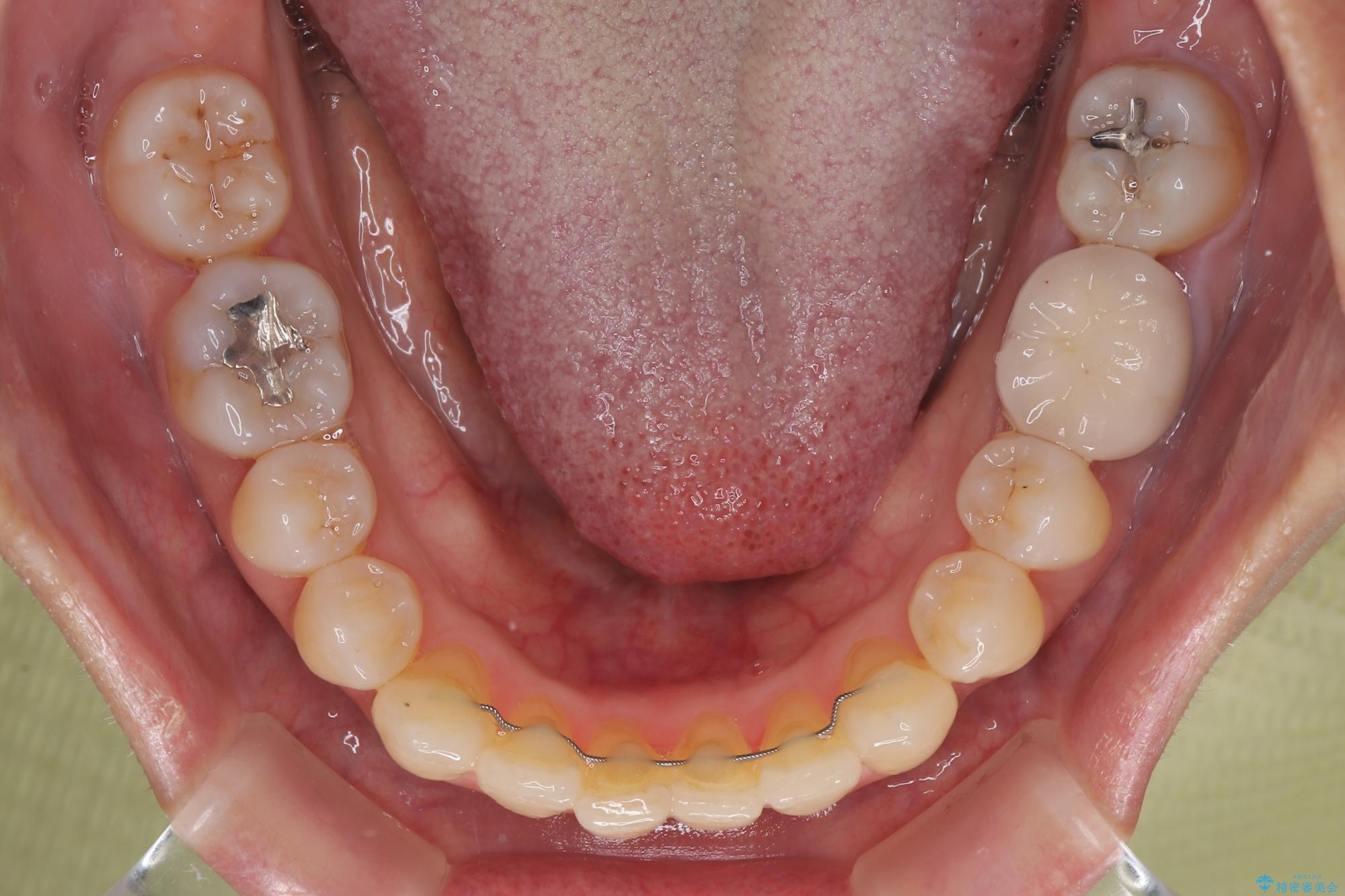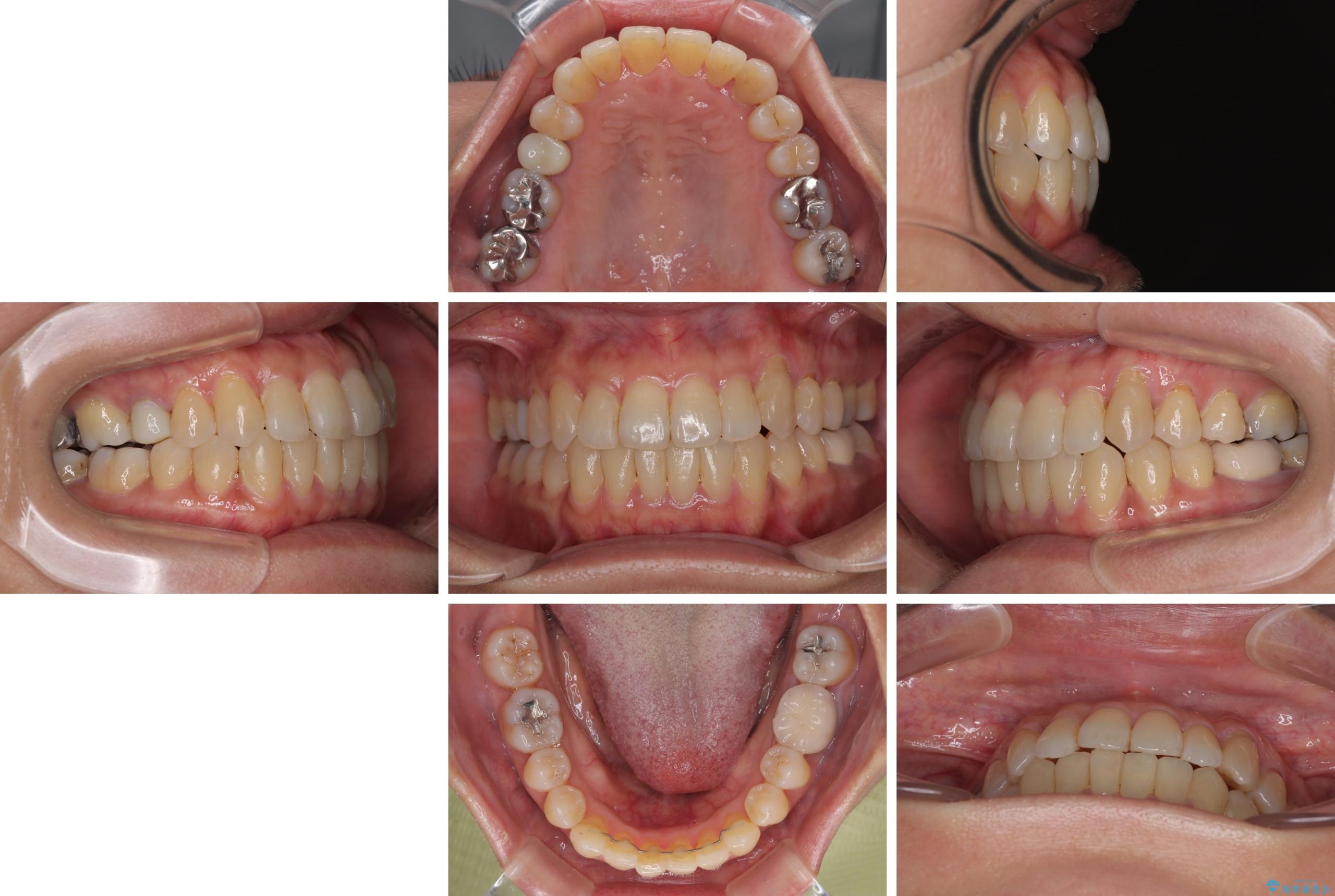受け口傾向のインビザライン矯正は比較的治療を行いやすいため、きれいに仕上げることができました。舌の突出癖が顕著であったため、改善のためのトレーニングをしっかりと行っていただきました。