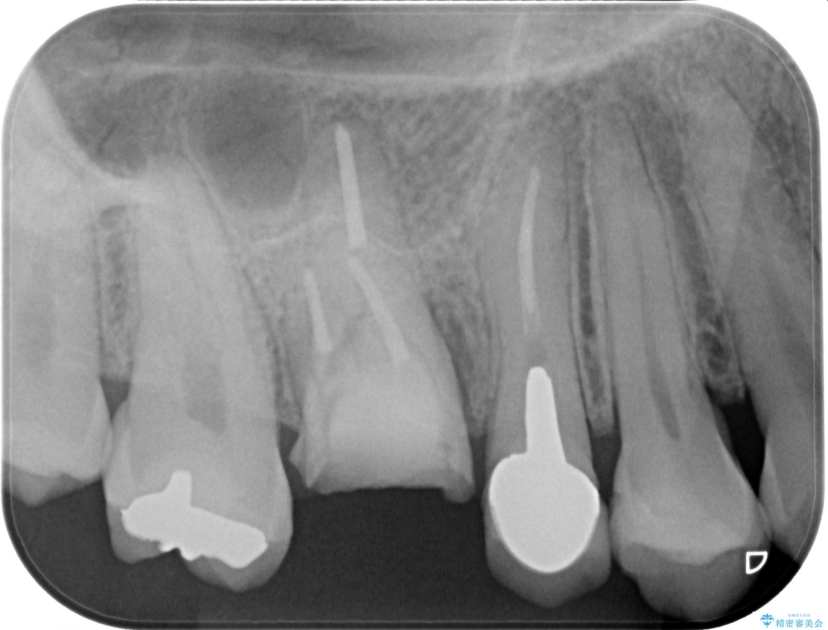 詰めている材料を外したところ、目視で確認できるほど割れており、要抜歯との説明をし、インプラント治療を行うこととしました。