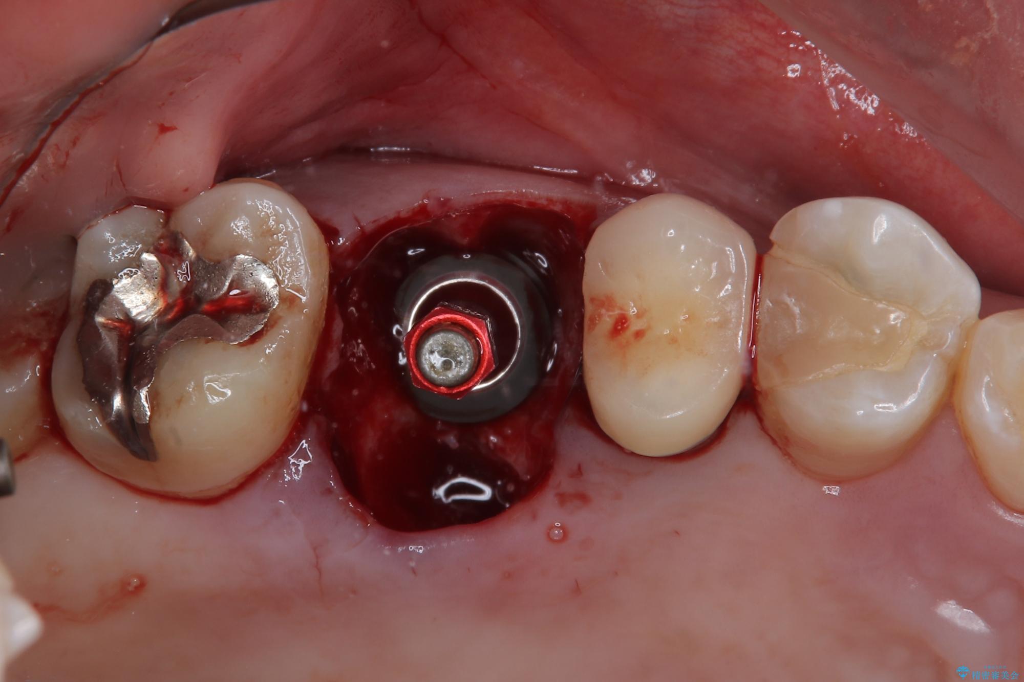 骨量が十分にあることが3次元CTより確認されたため、事前に仮歯を用意した上で、抜歯即時埋入インプラントによる補綴治療を行うこととしました。