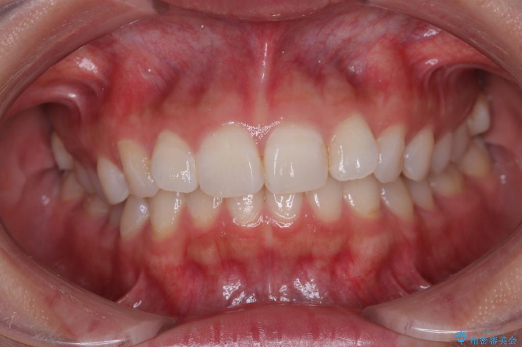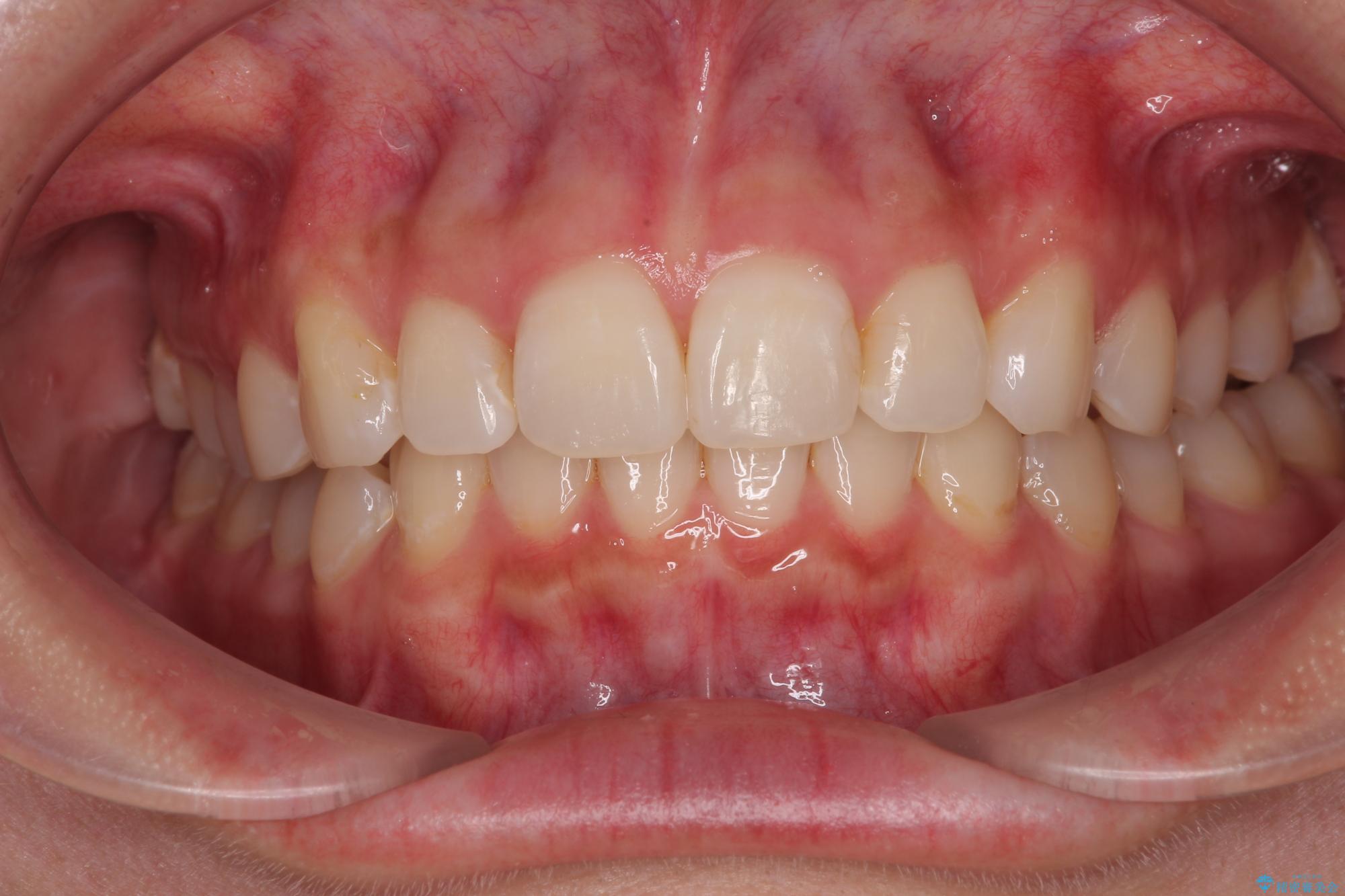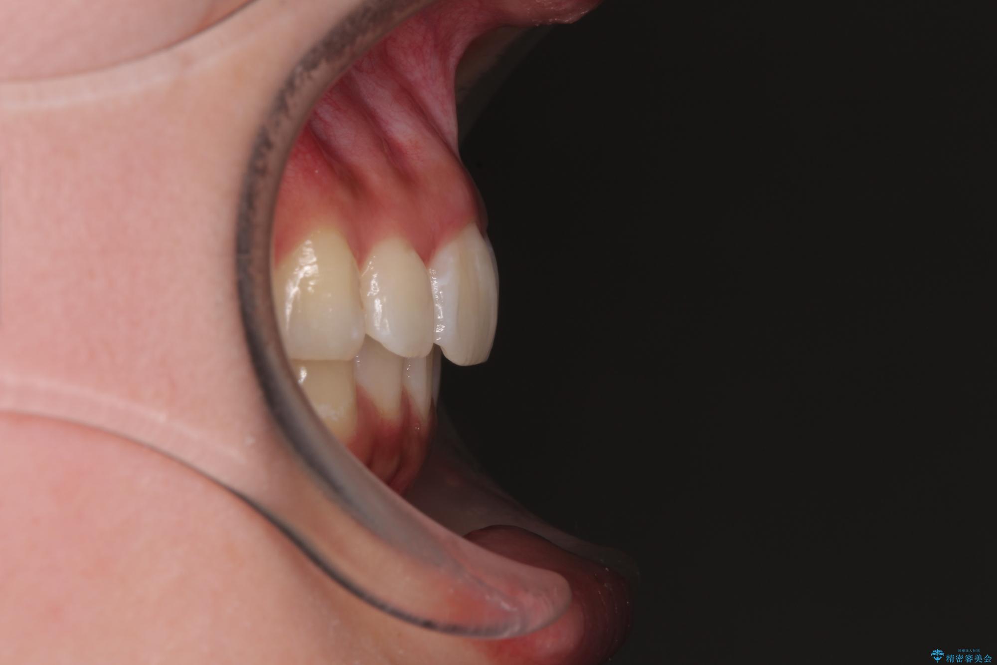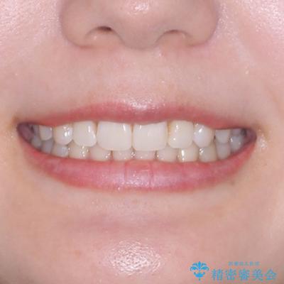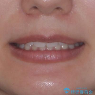 前歯の捻れを改善するとともに、口元が少しでも引っ込むように治療計画を立て、仕上げることができました。