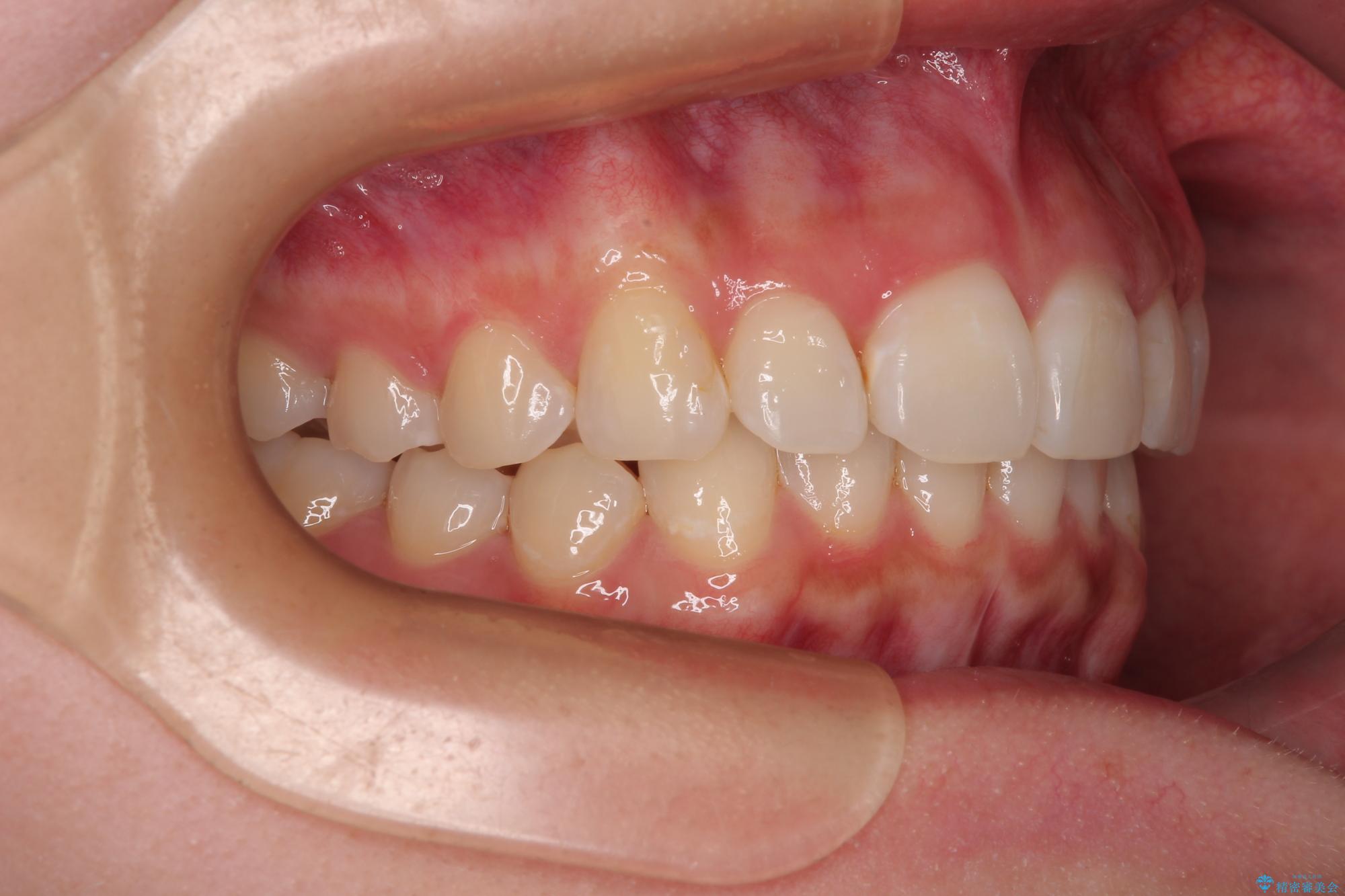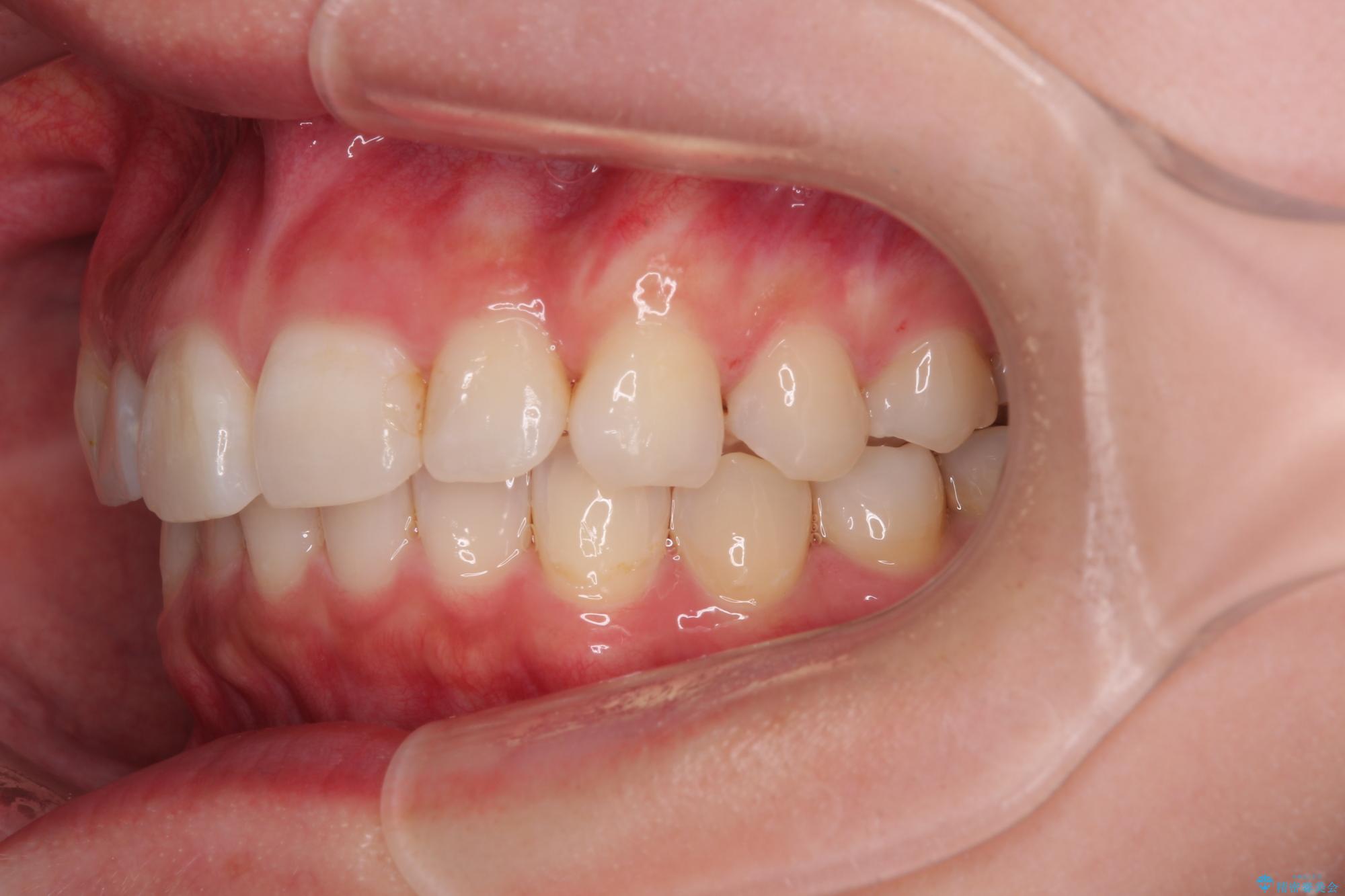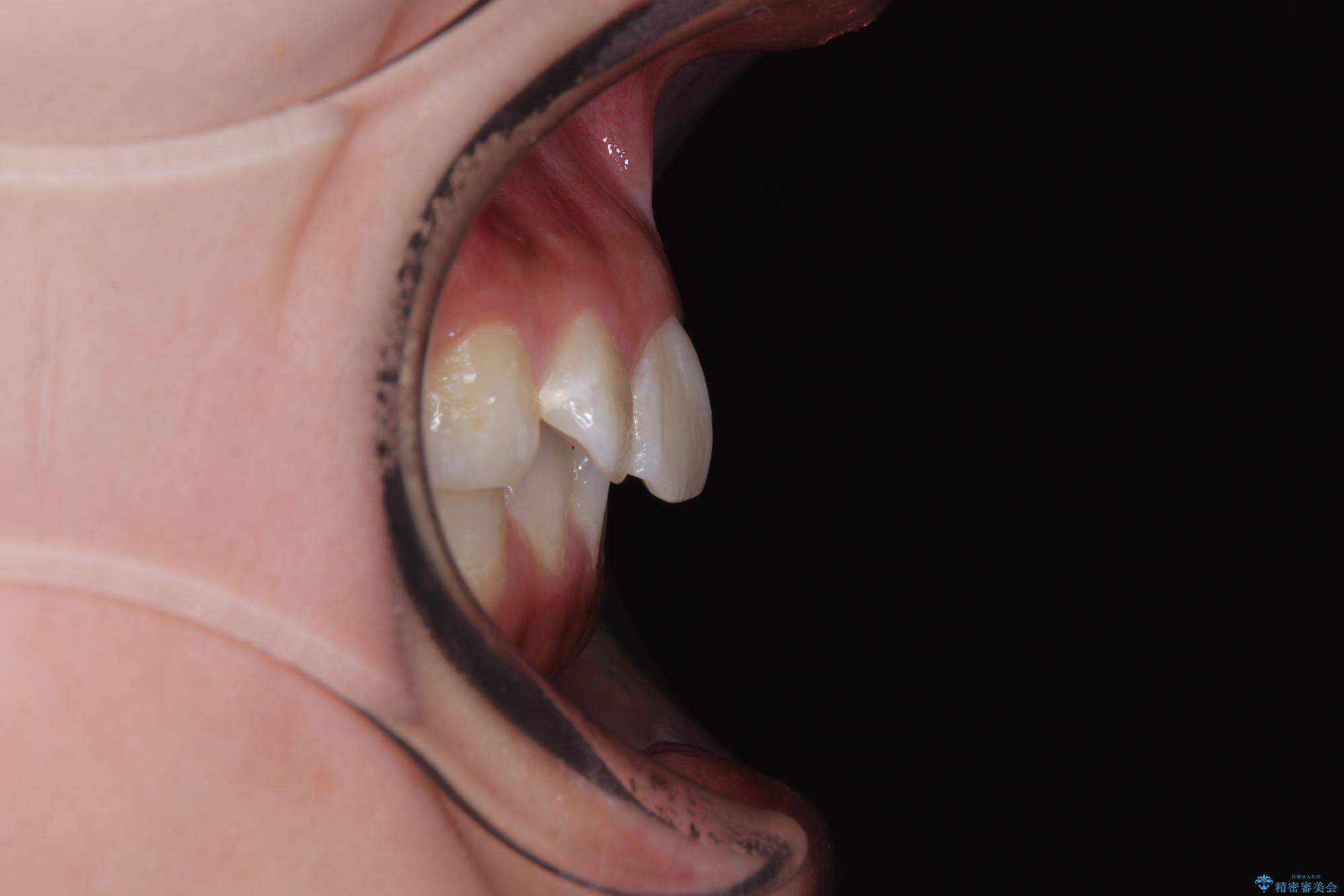 前歯の捻れを改善するとともに、口元が少しでも引っ込むように治療計画を立て、仕上げることができました。