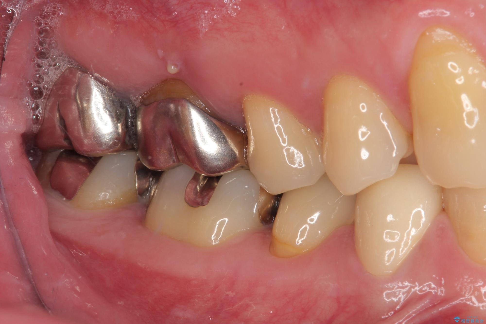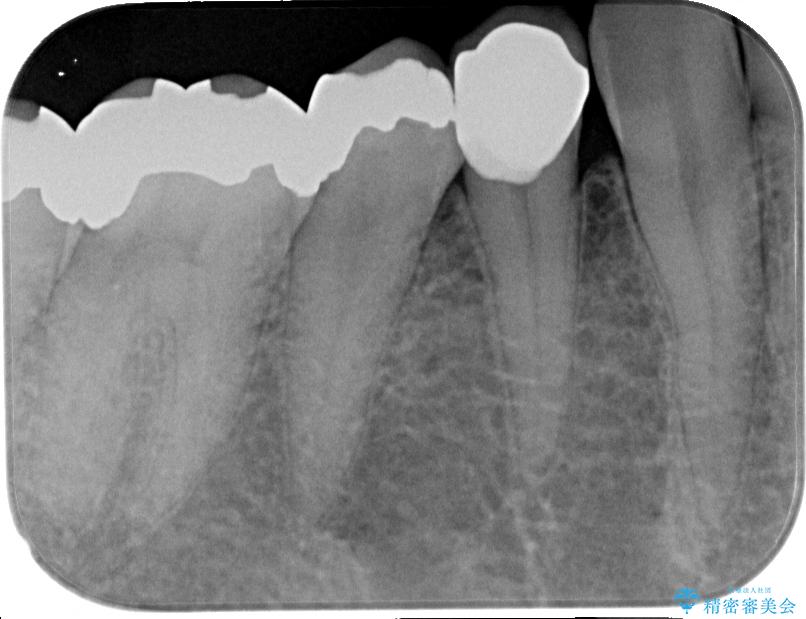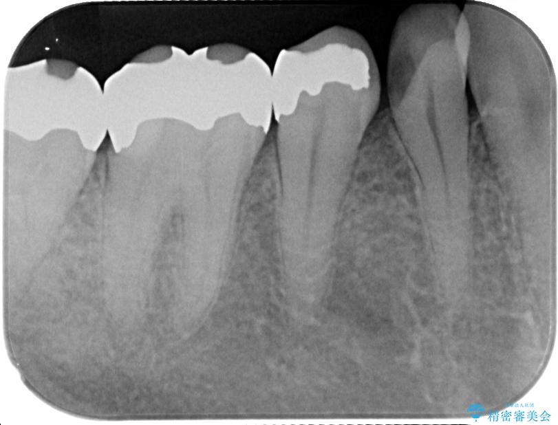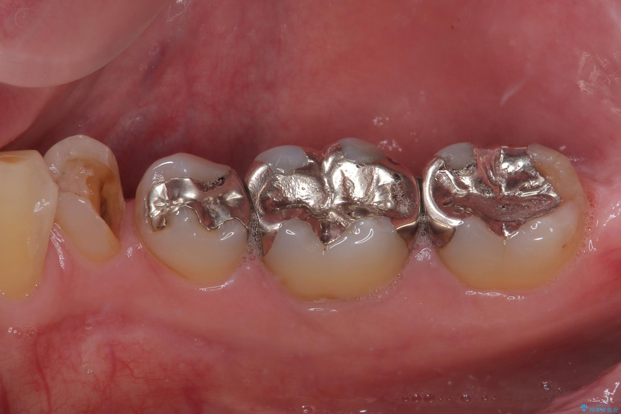 - 右下の銀歯が取れたとのことで来院された患者様です。以前にも取れていたところで、メタルインレーの不適合も認めていたため、次回外れたらオールセラミッククラウンにやり替えていくことを説明していたため、オールセラミッククラウンによる補綴治療を行っていくことにしました。