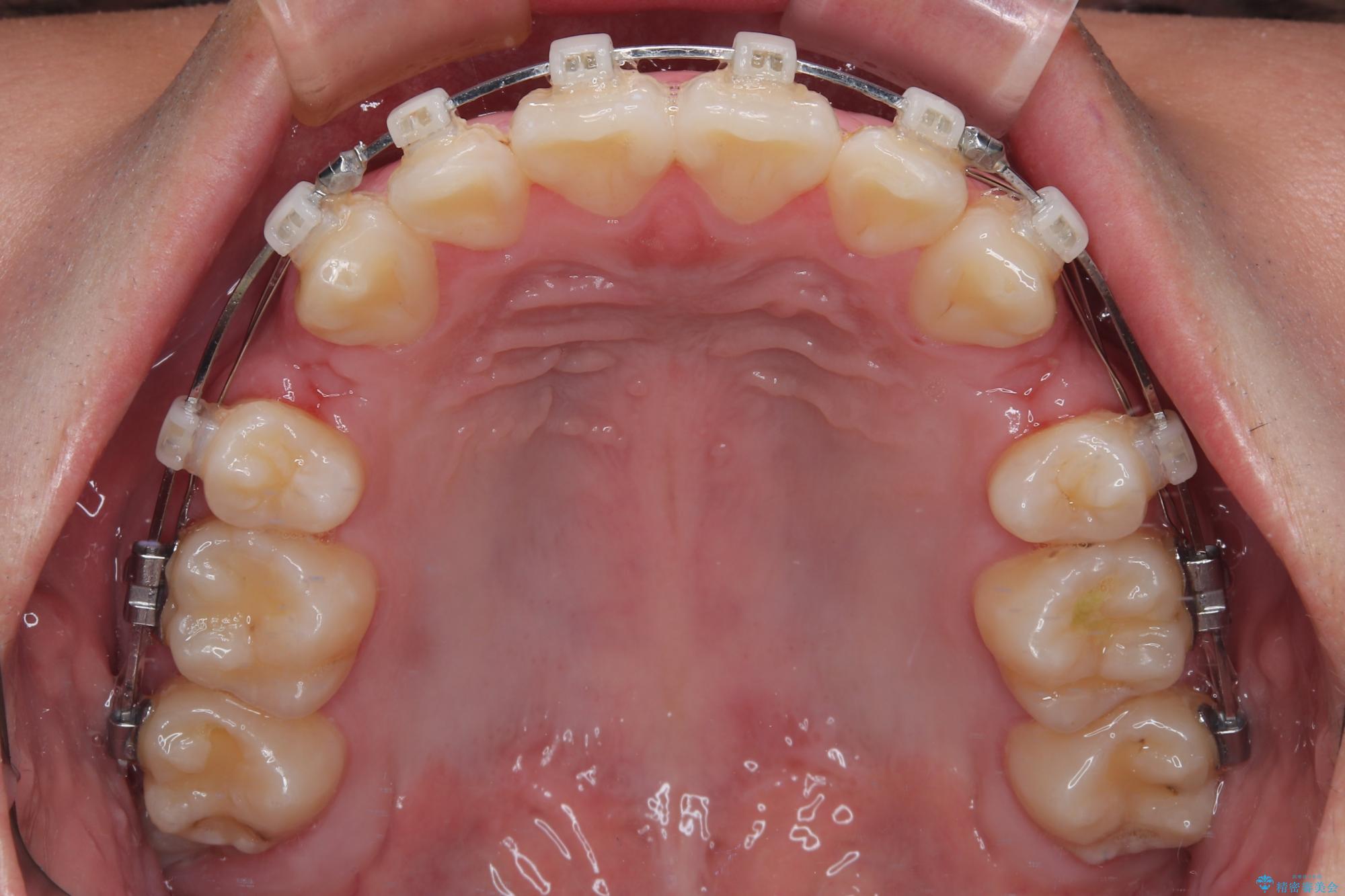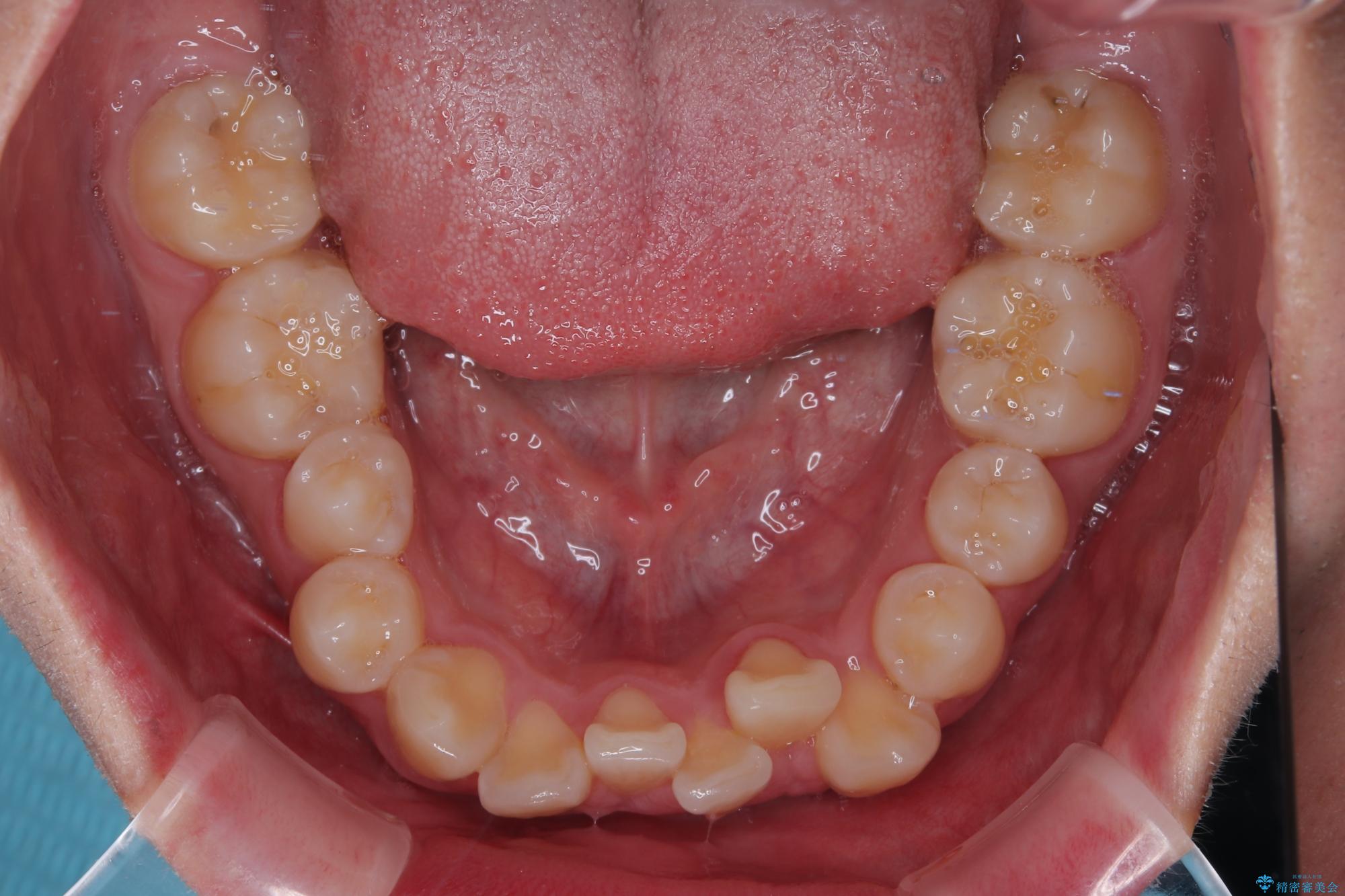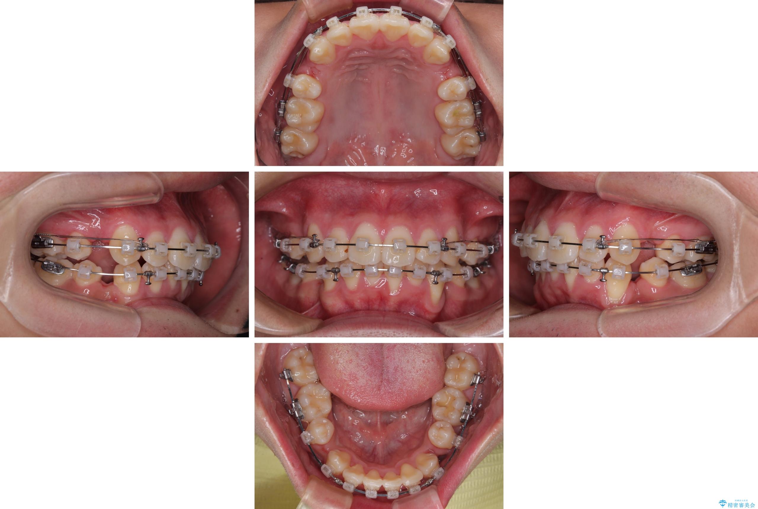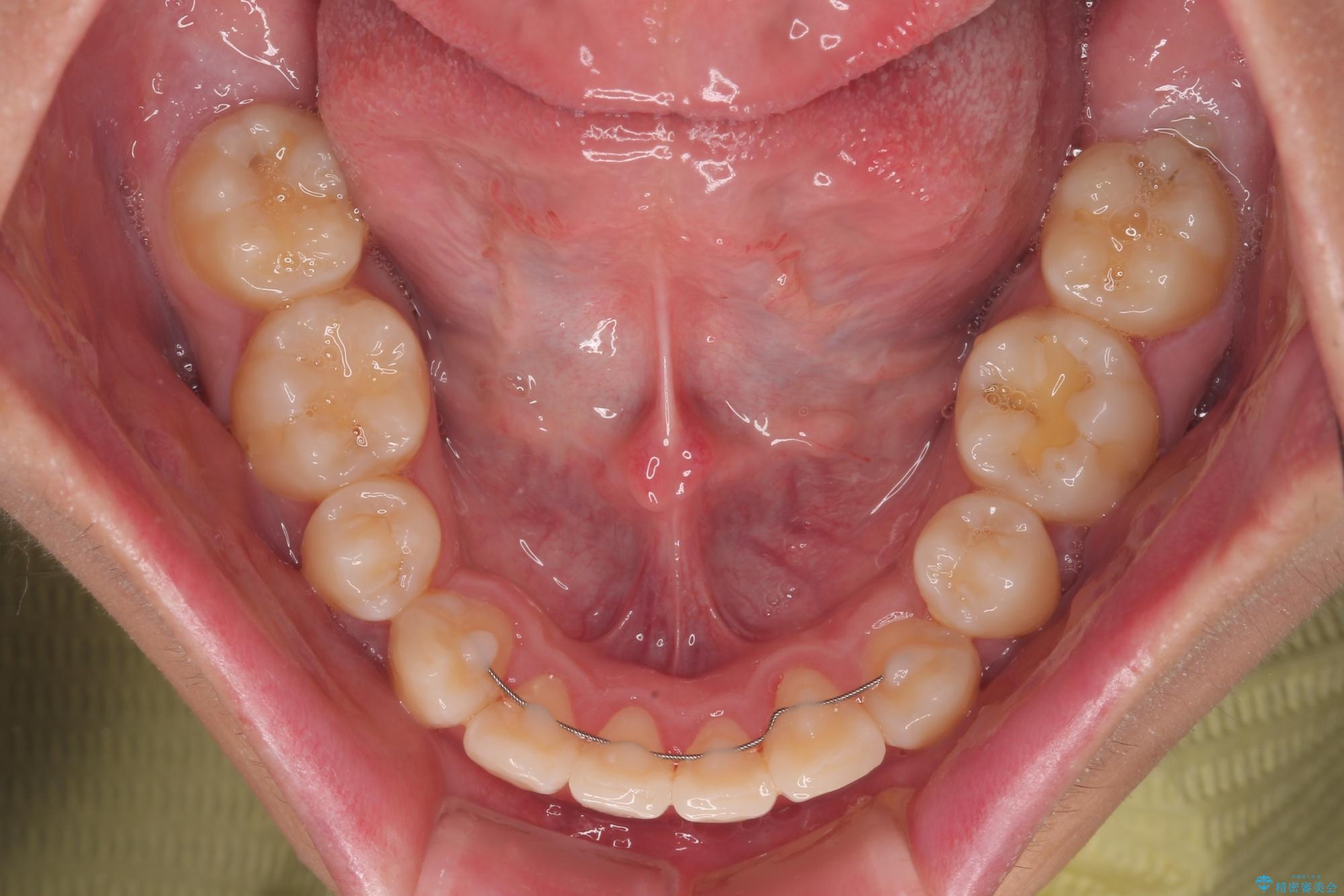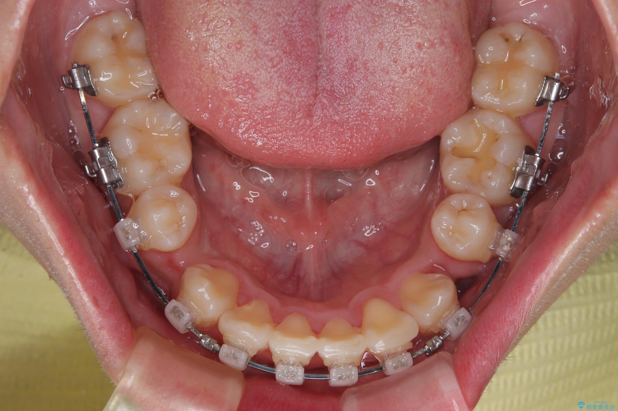 特に前歯のデコボコが顕著であり、上下左右第一小臼歯の4本を抜歯し、ワイヤー装置を使用して咬み合わせ高さを改善しながら、歯列を整えて行くこととしました。