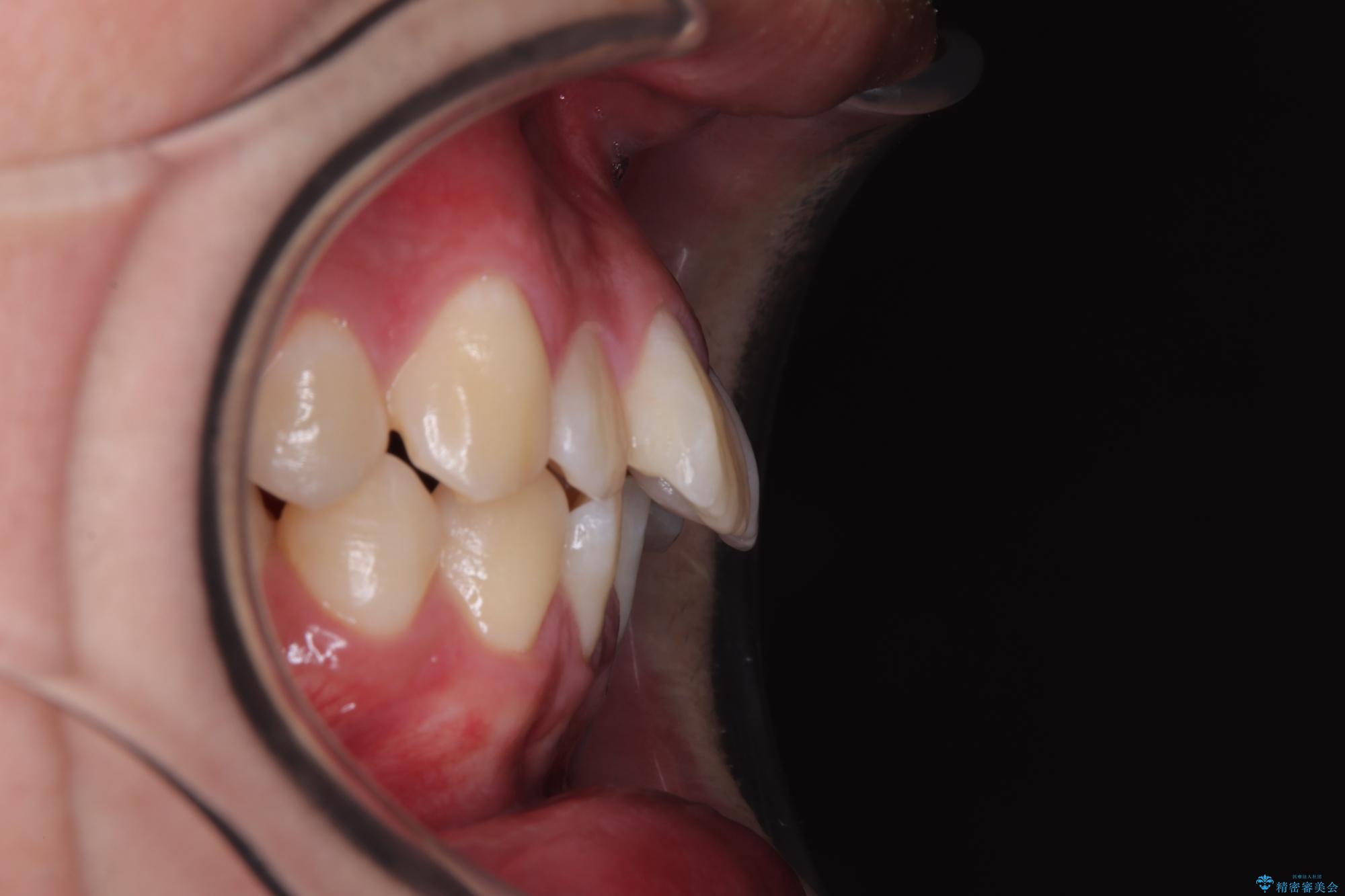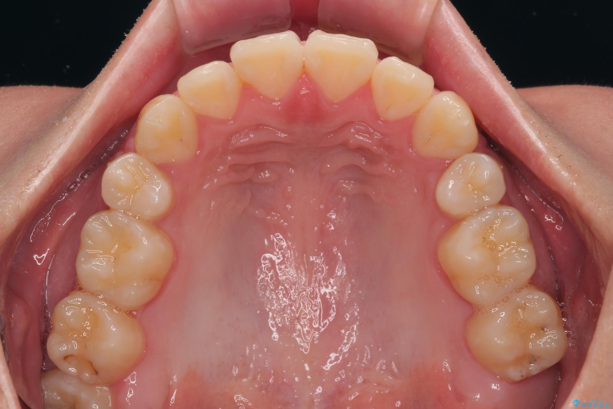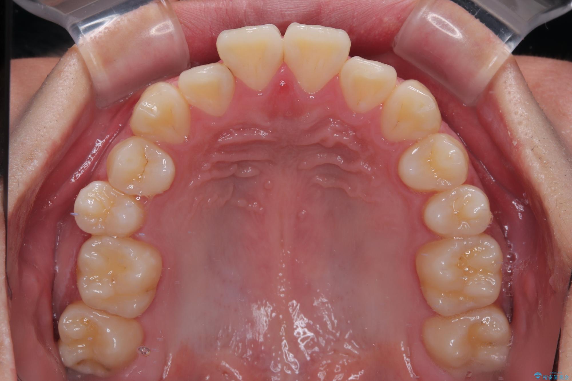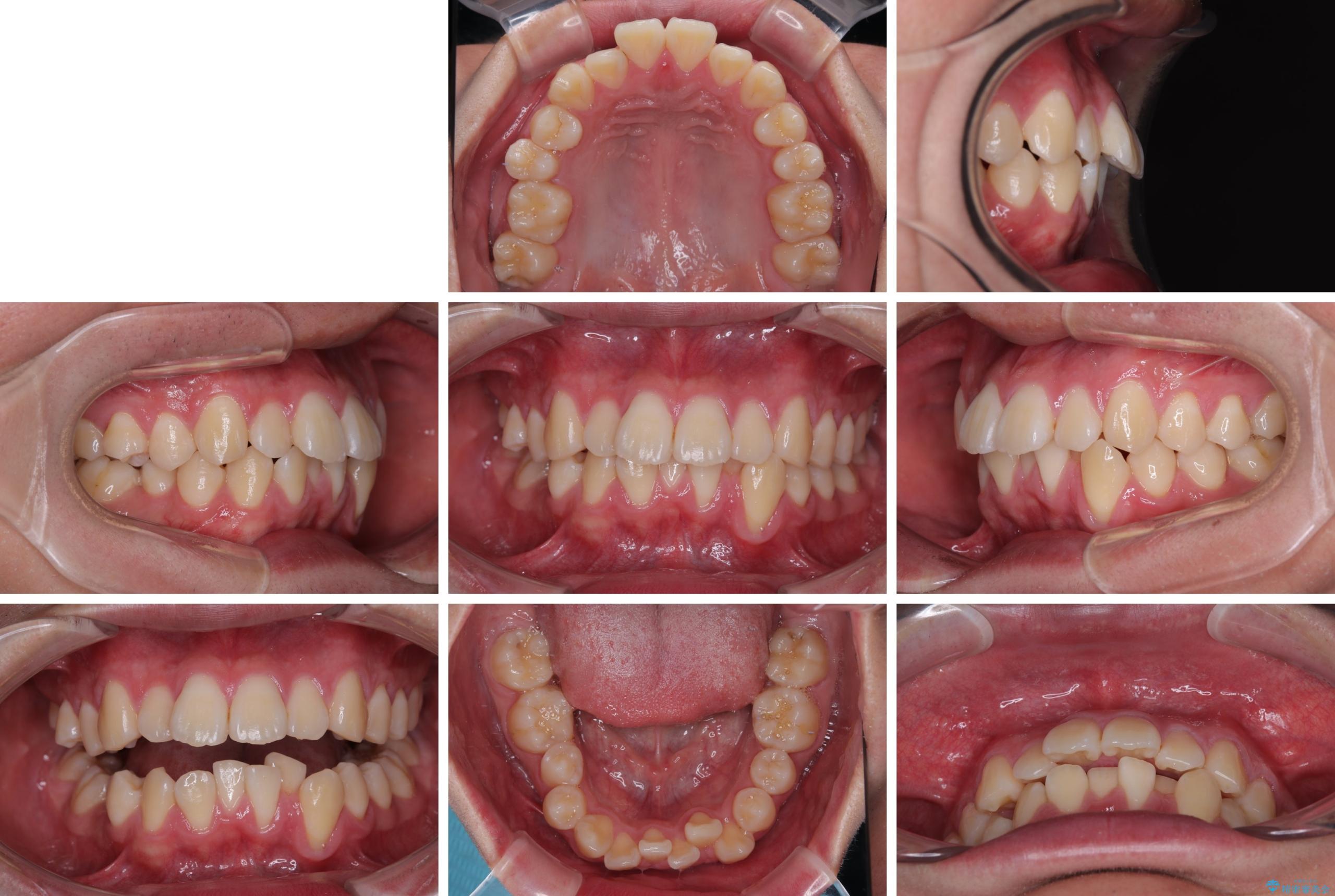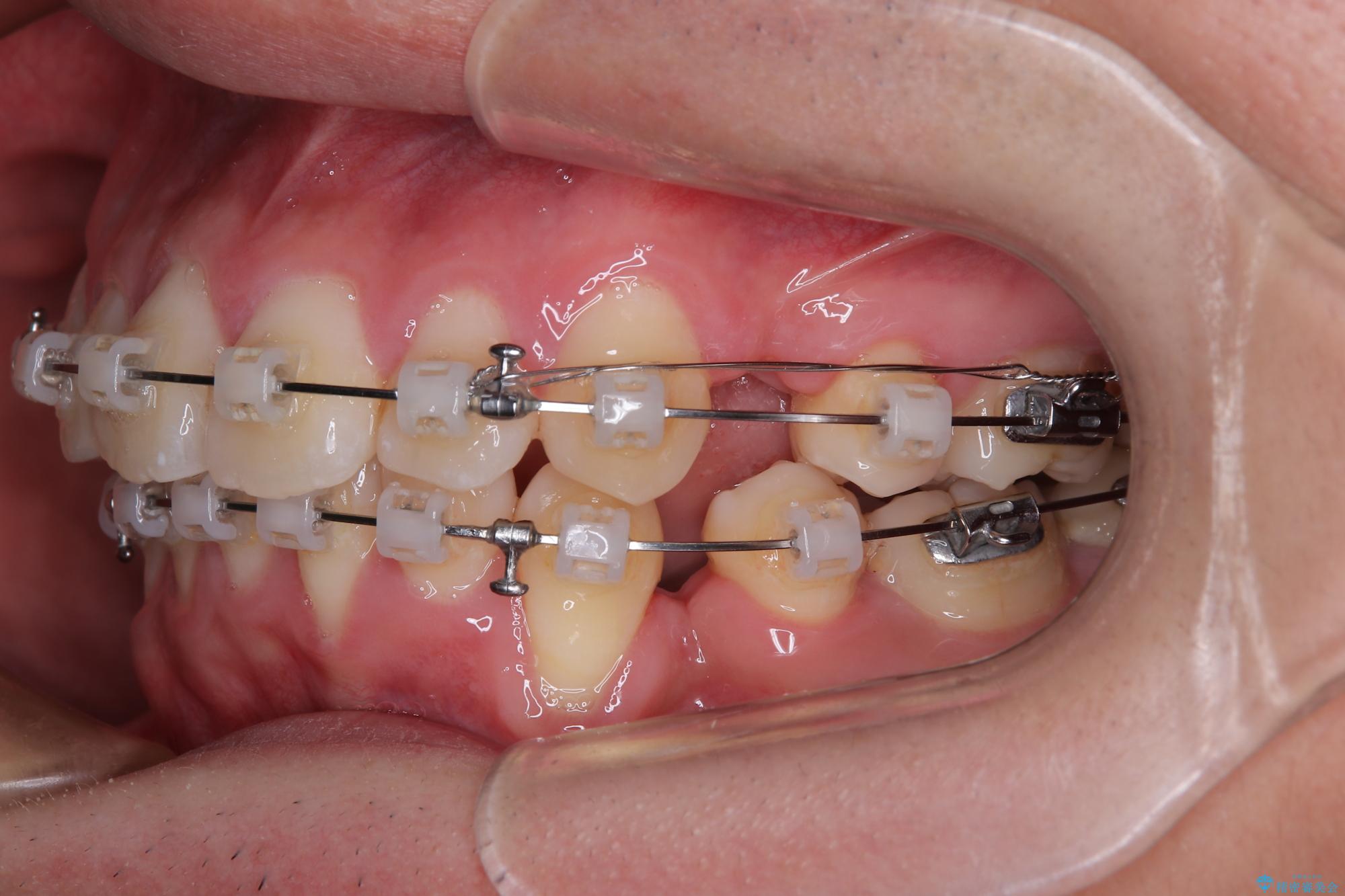 特に前歯のデコボコが顕著であり、上下左右第一小臼歯の4本を抜歯し、ワイヤー装置を使用して咬み合わせ高さを改善しながら、歯列を整えて行くこととしました。