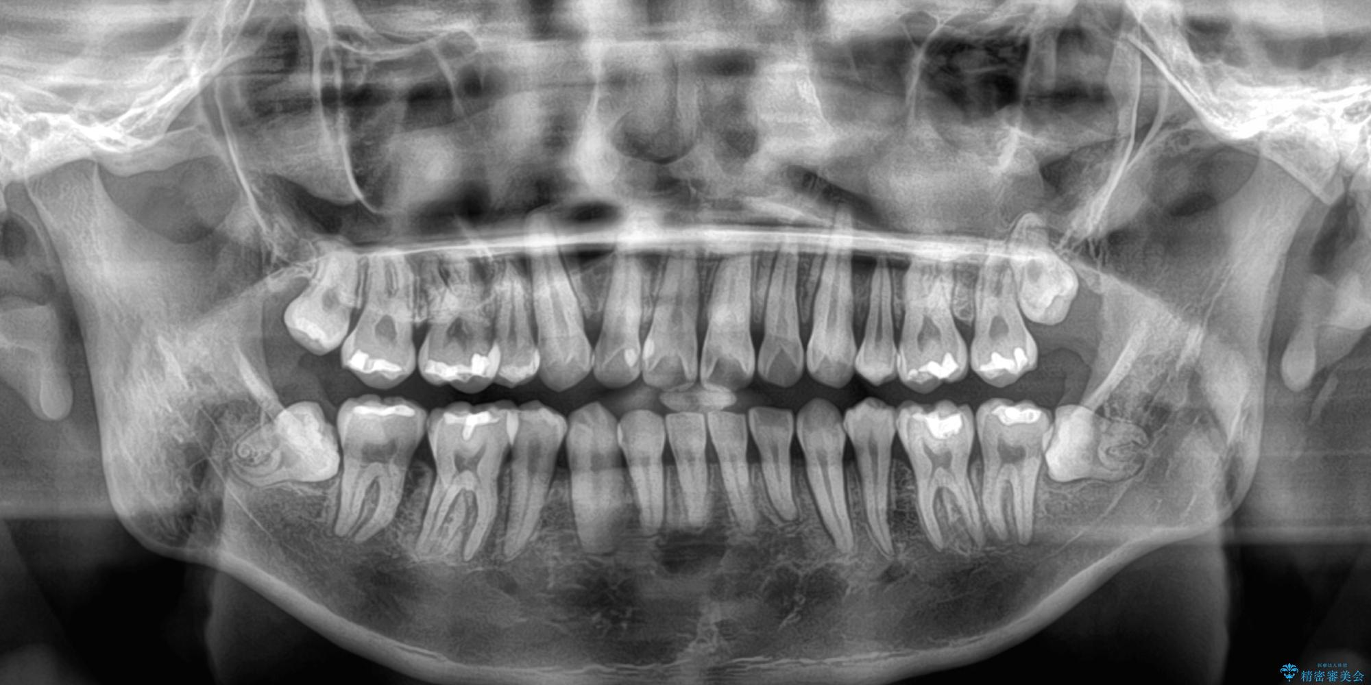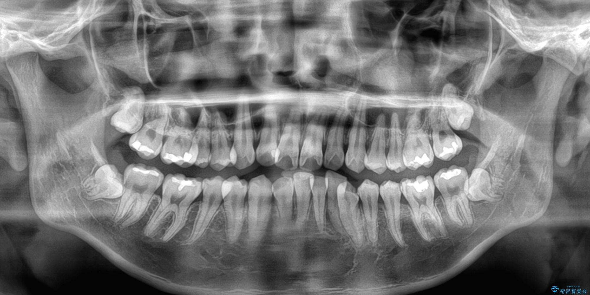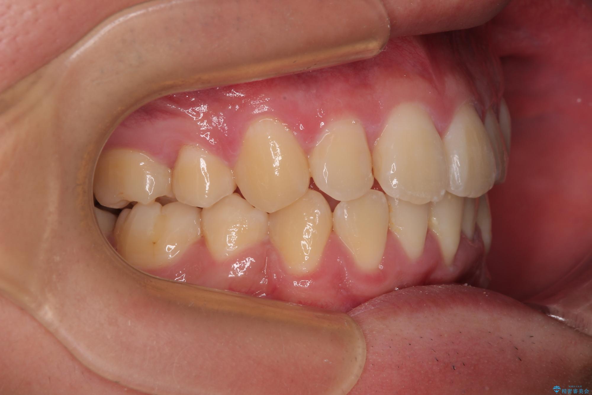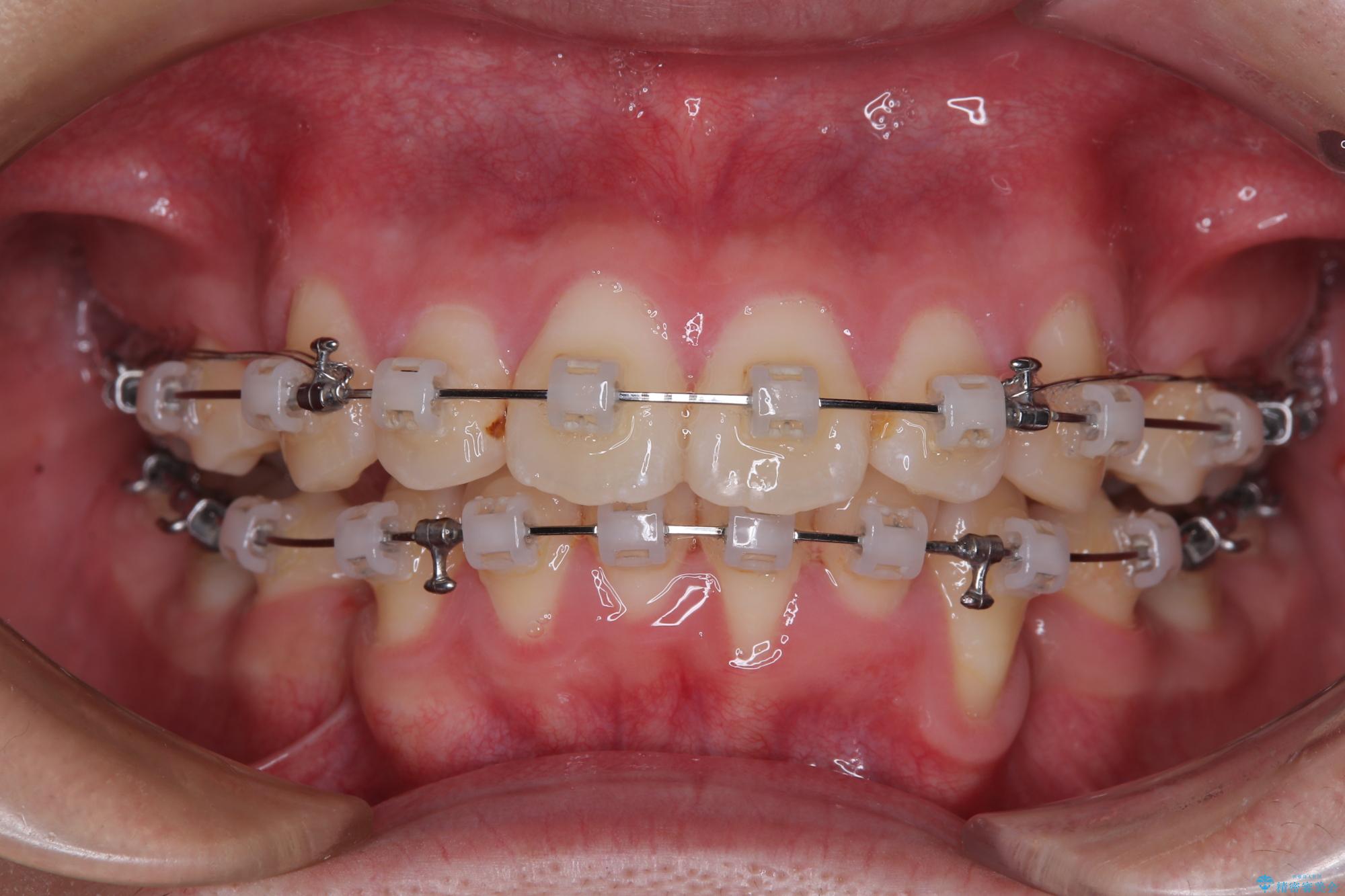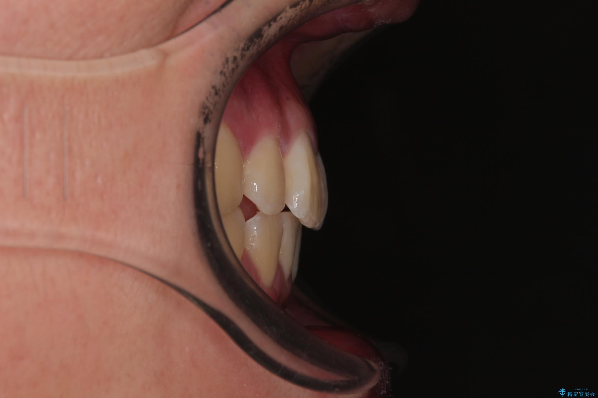 特に前歯のデコボコが顕著であり、上下左右第一小臼歯の4本を抜歯し、ワイヤー装置を使用して咬み合わせ高さを改善しながら、歯列を整えて行くこととしました。