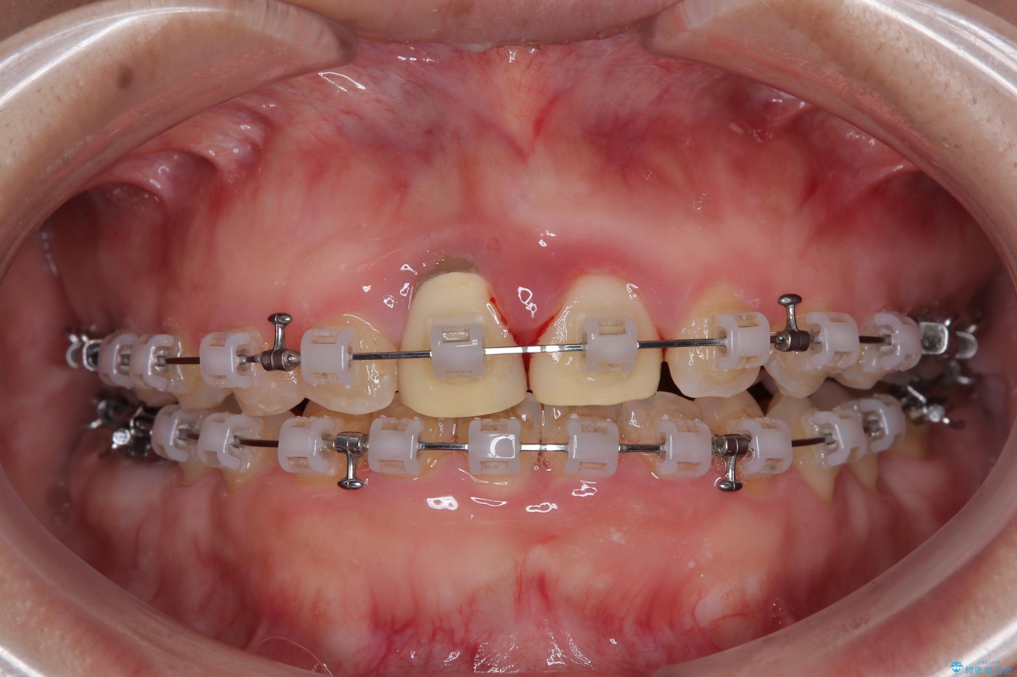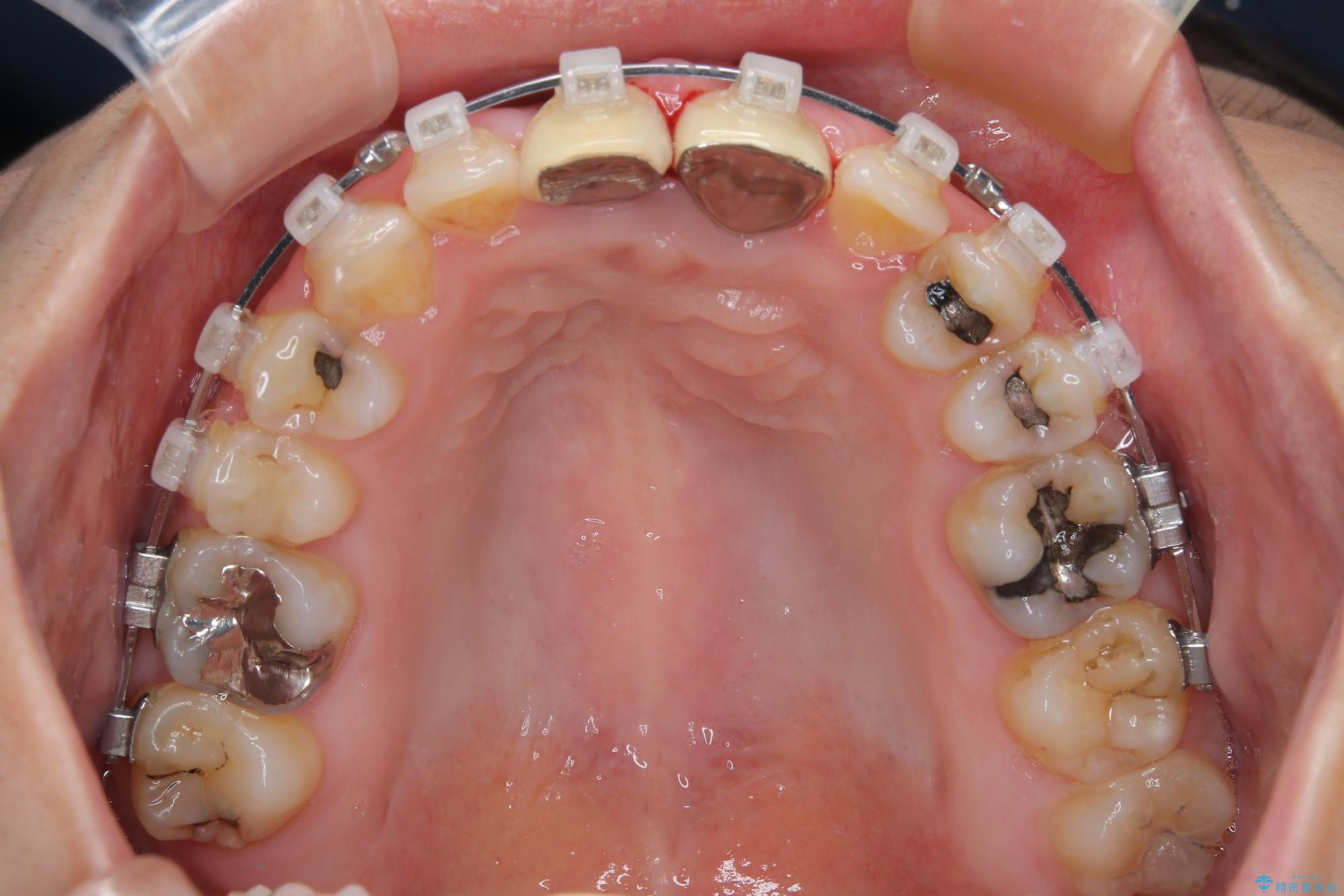 マウスピース装着は煩わしいとのことで、表側のワイヤー装置にて矯正治療を行うこととしました。