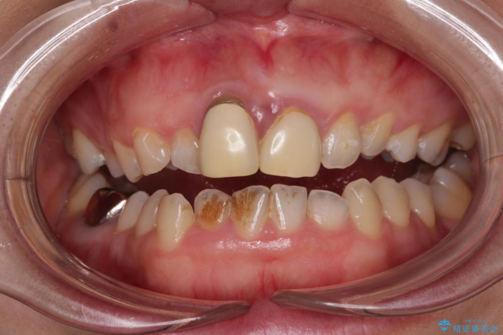 - 前歯のデコボコと、着色が著しい保険診療の前歯クラウンを気にして来院された患者様です。