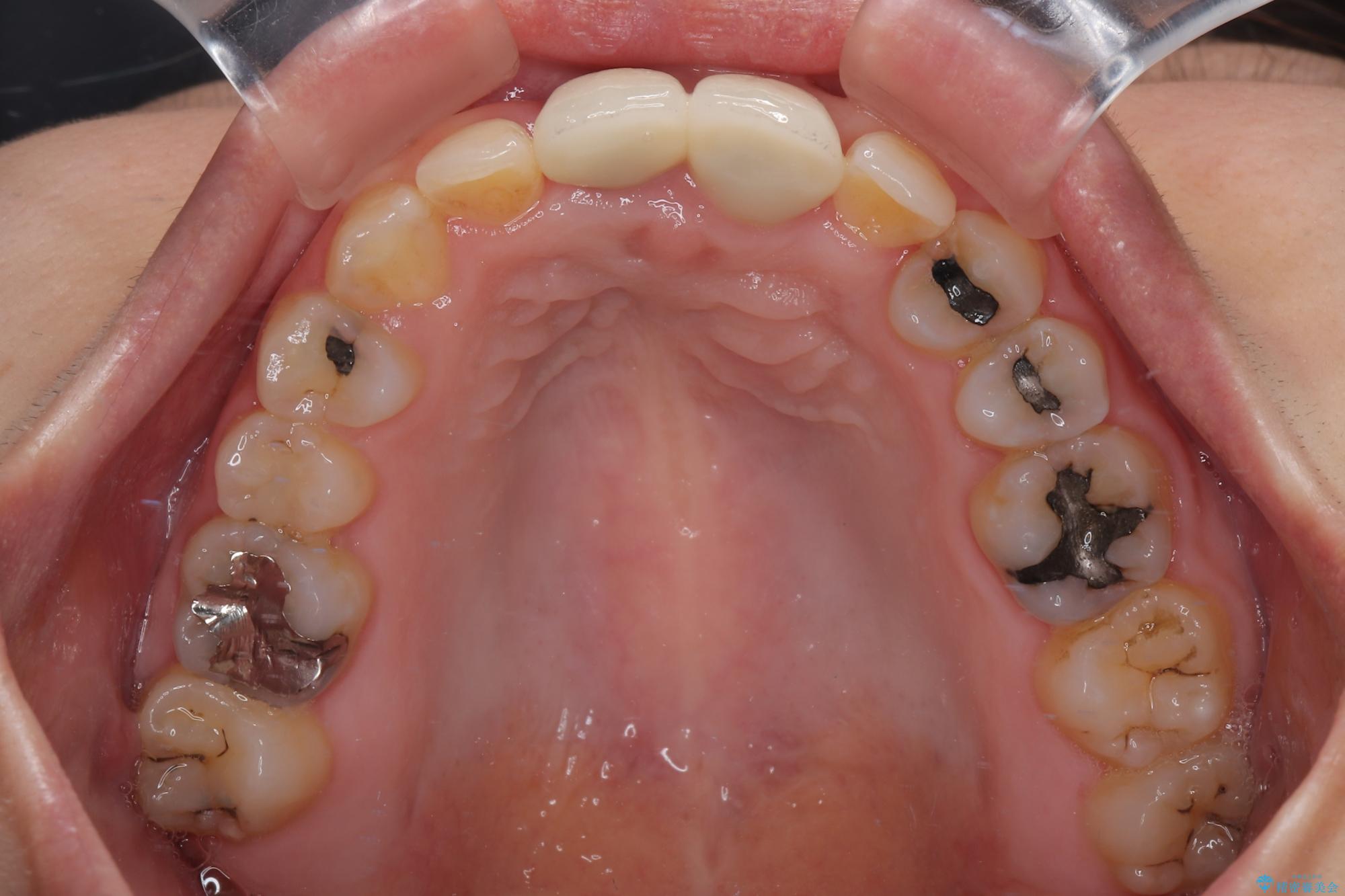 前歯のクラウンは変色が顕著なため、矯正治療後にオールセラミッククラウンによる補綴治療を行うこととしました。