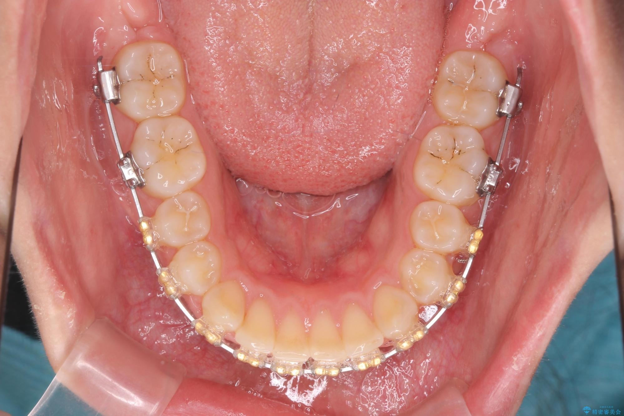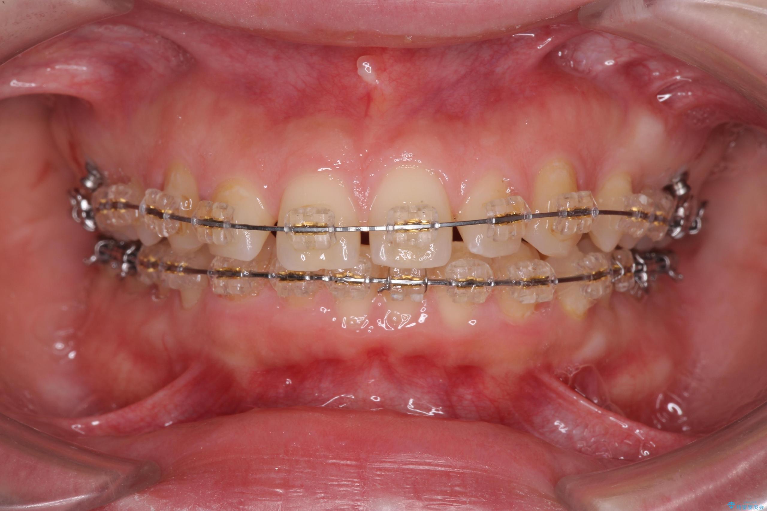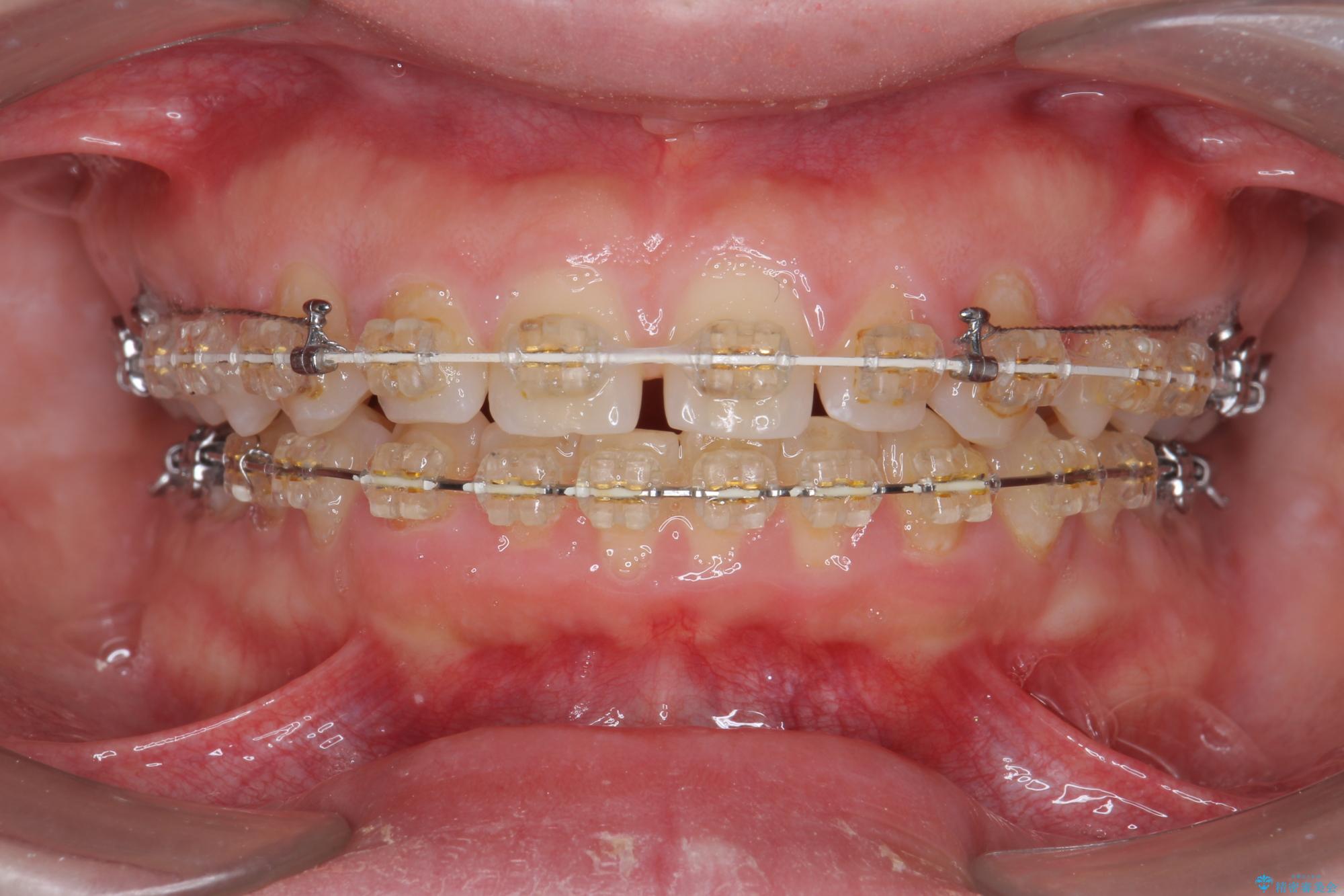 ワイヤーを用いたマルチブラケット矯正を行うことで深い噛み合わせを改善し、前歯の隙間もなくし審美的な歯列へと治療をおこなっていきます。