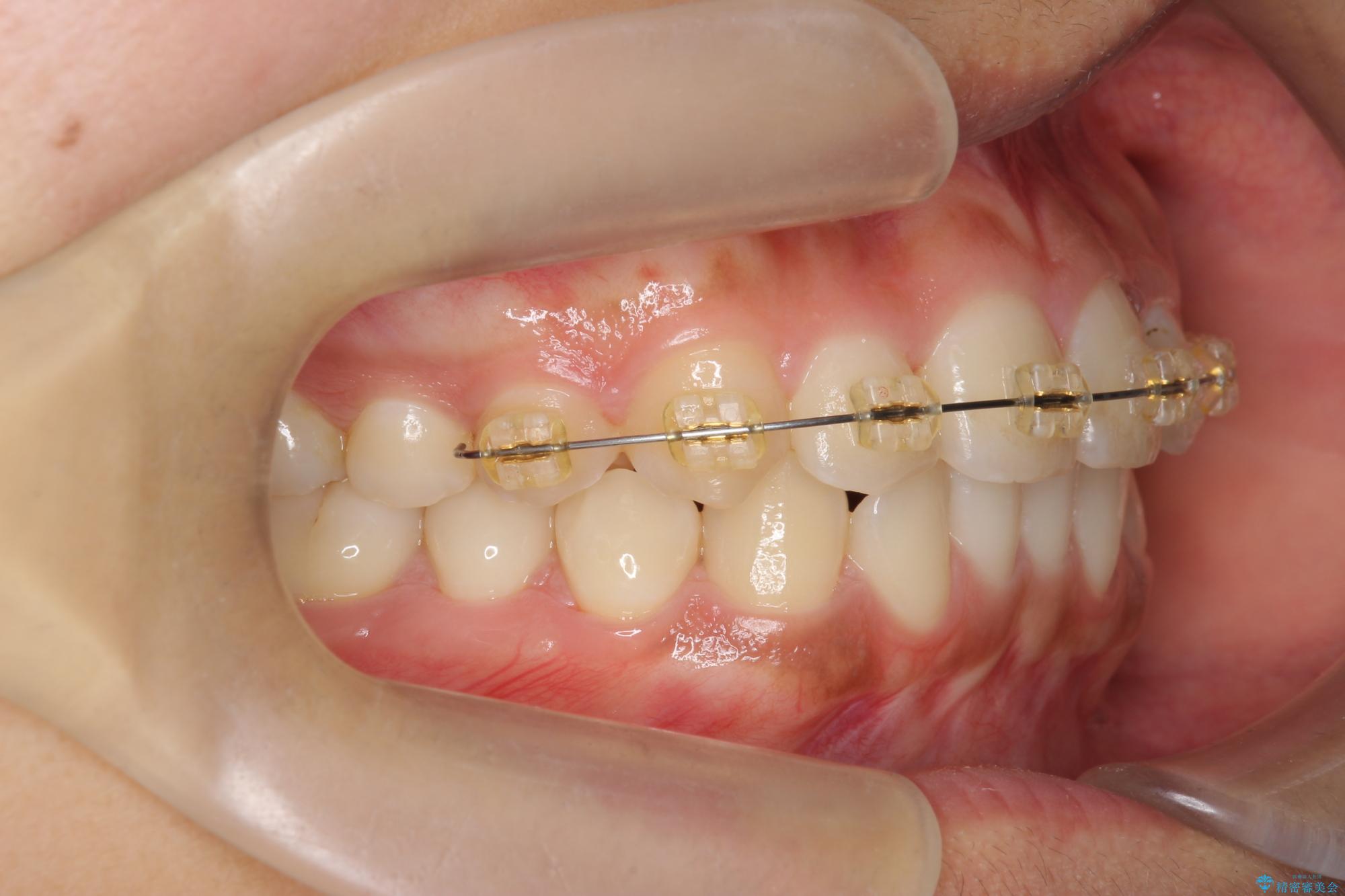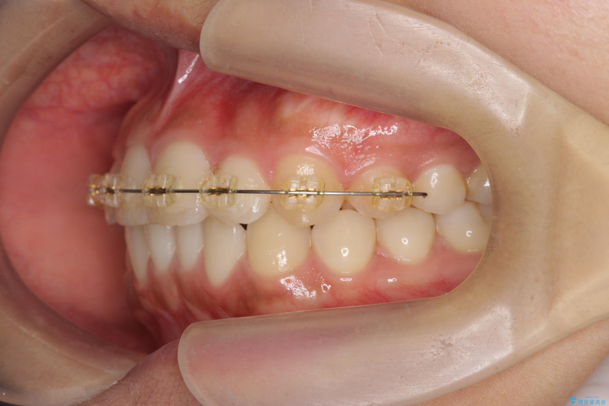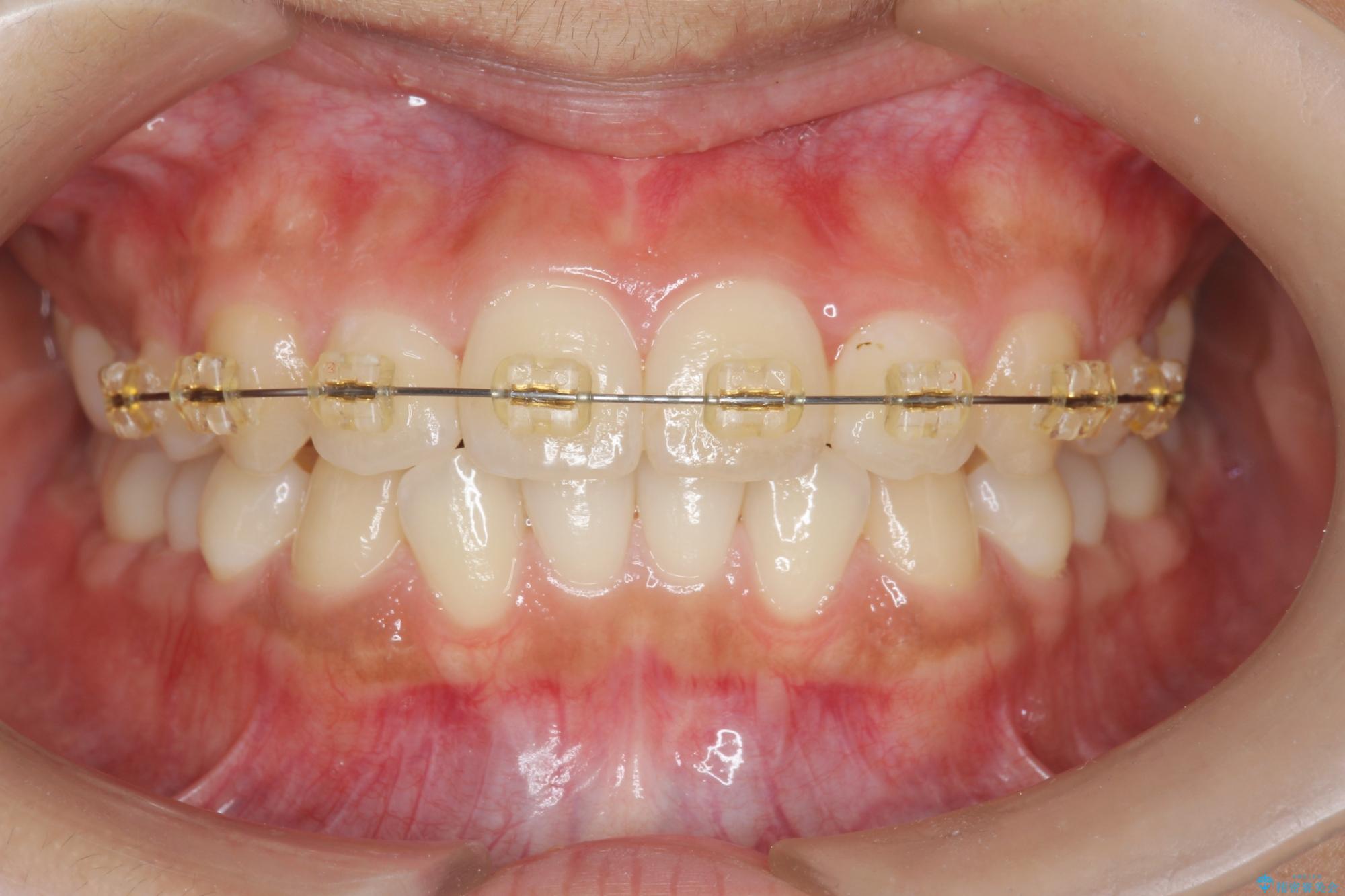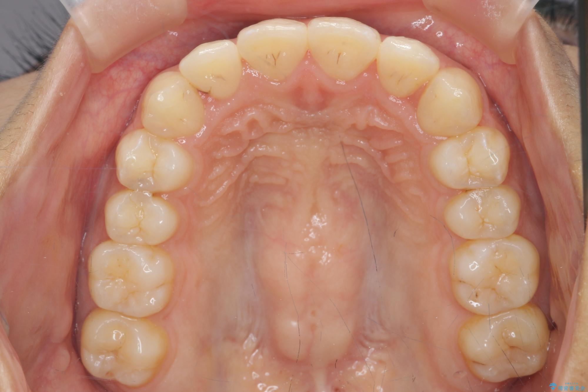 上顎前歯のみの部分ワイヤー治療を約6ヶ月行い、ねじれの問題を解決したのち、マウスピース矯正で細かな歯列を整えていきます。