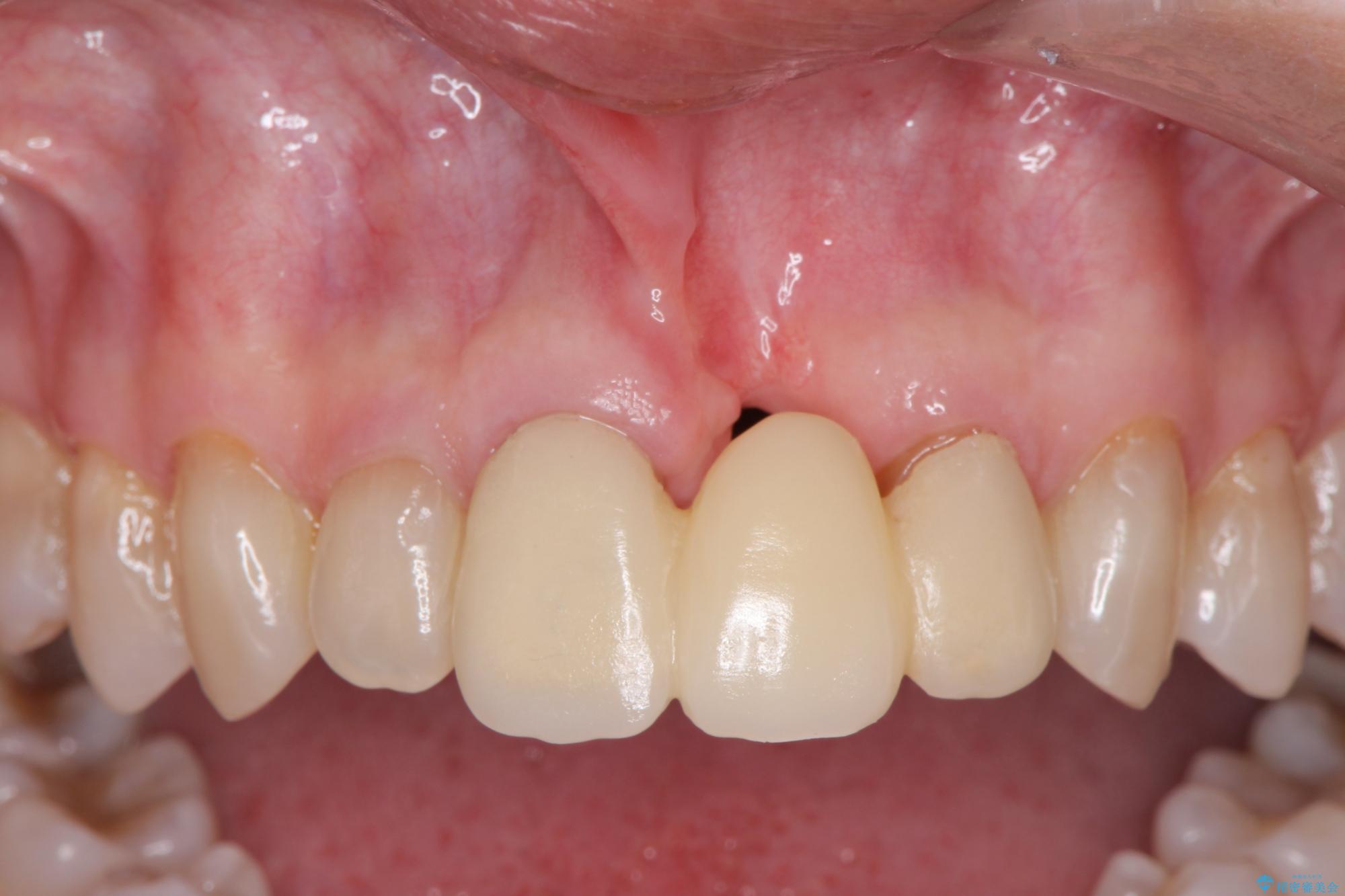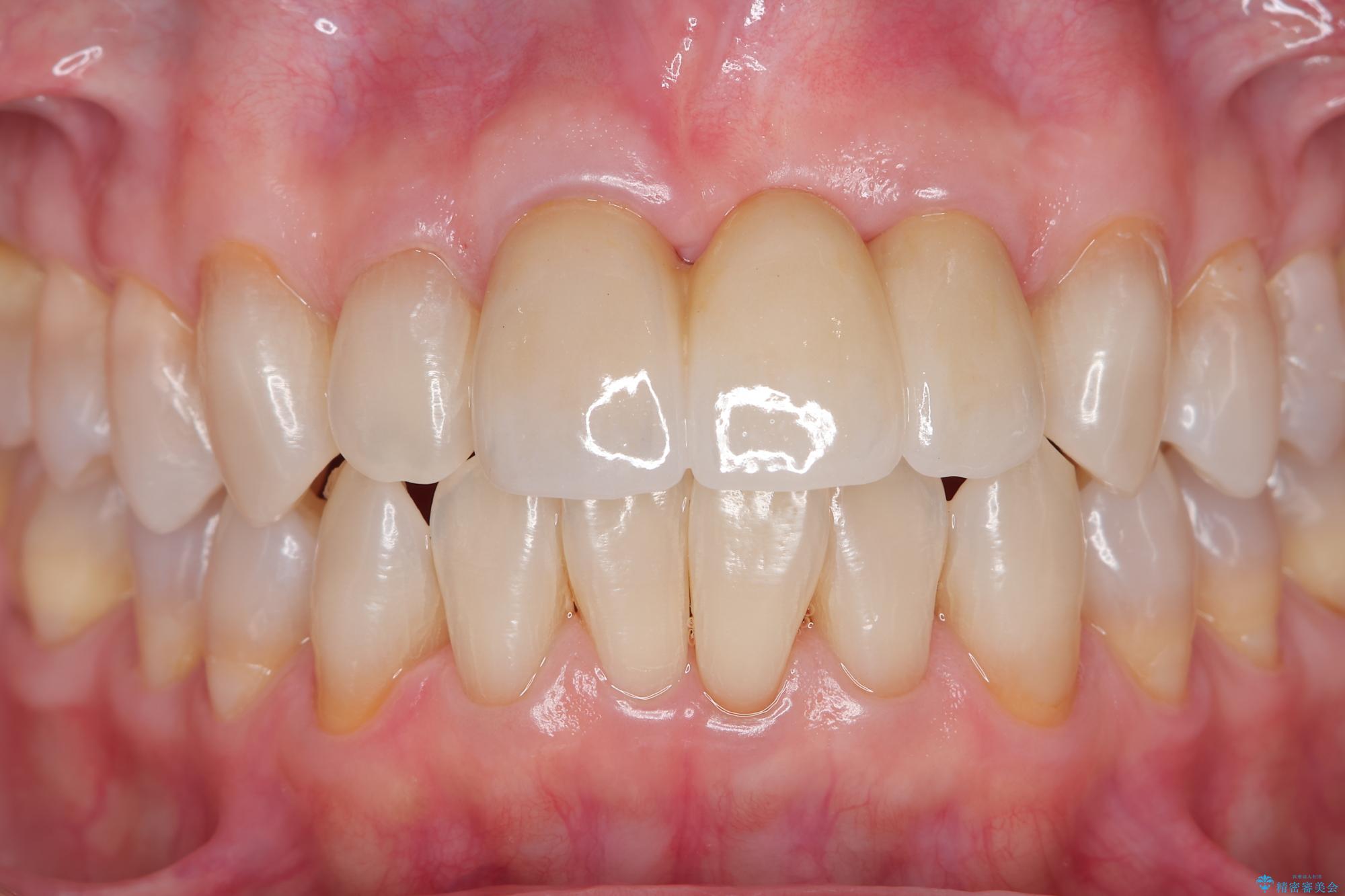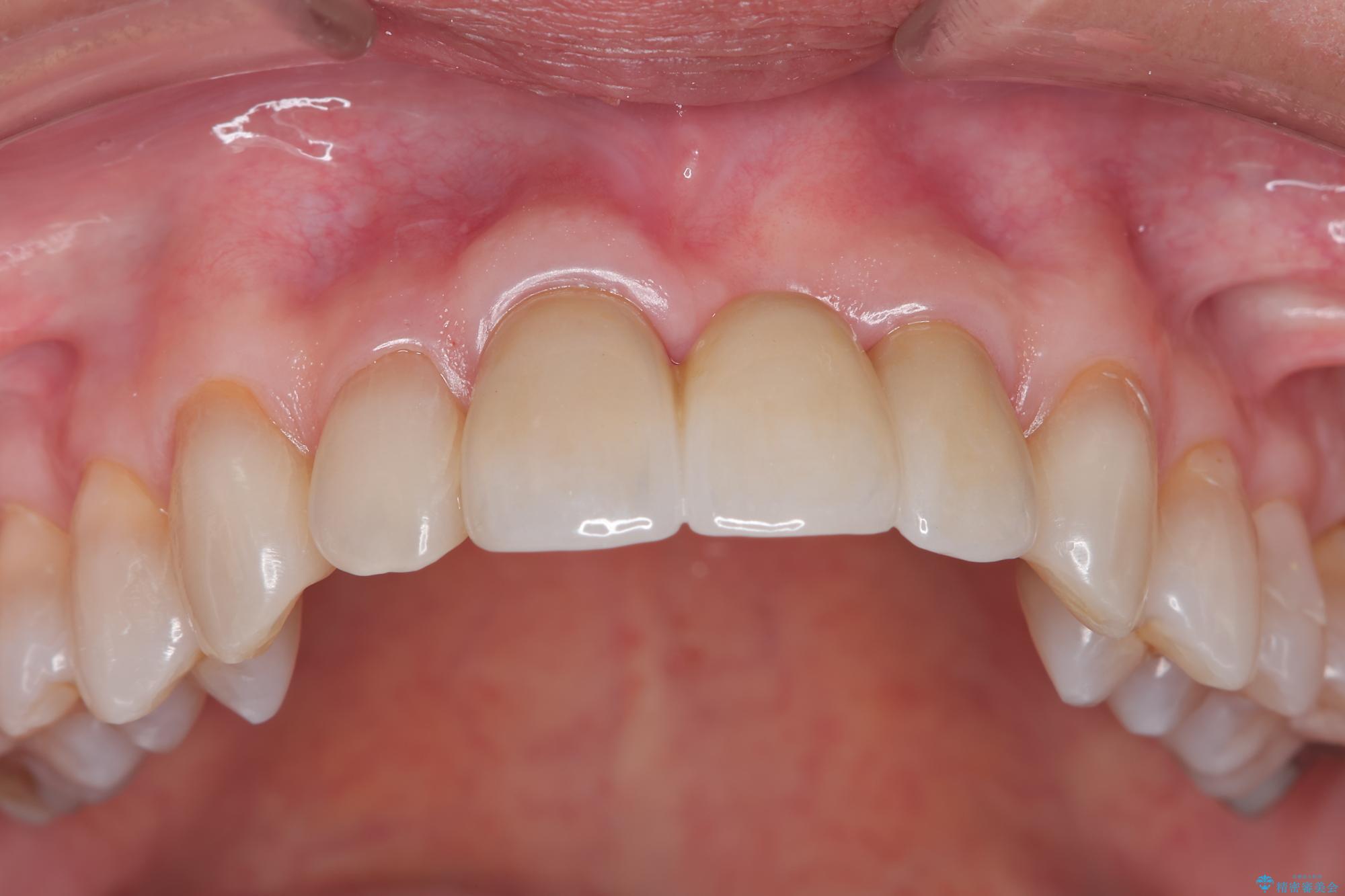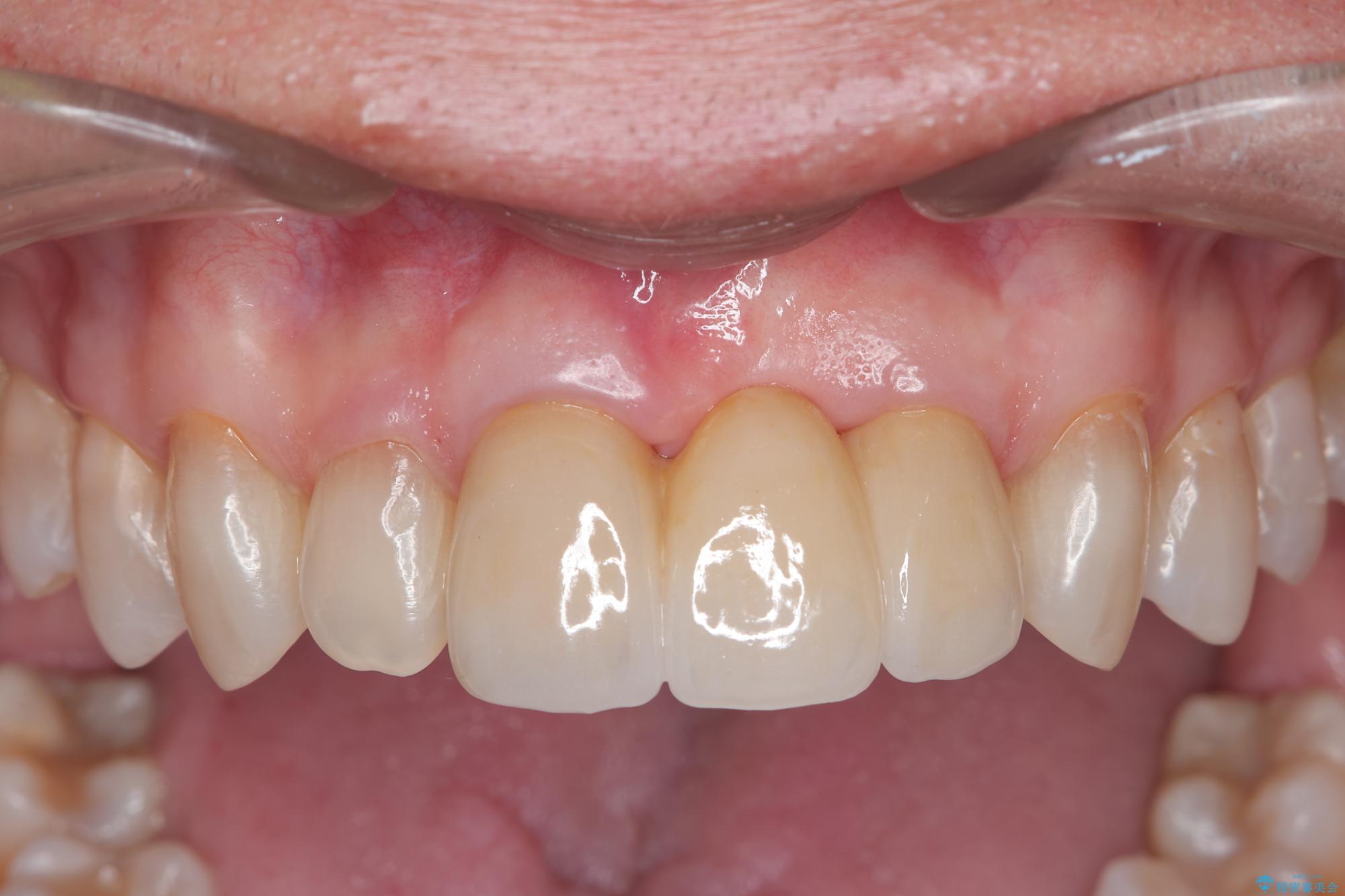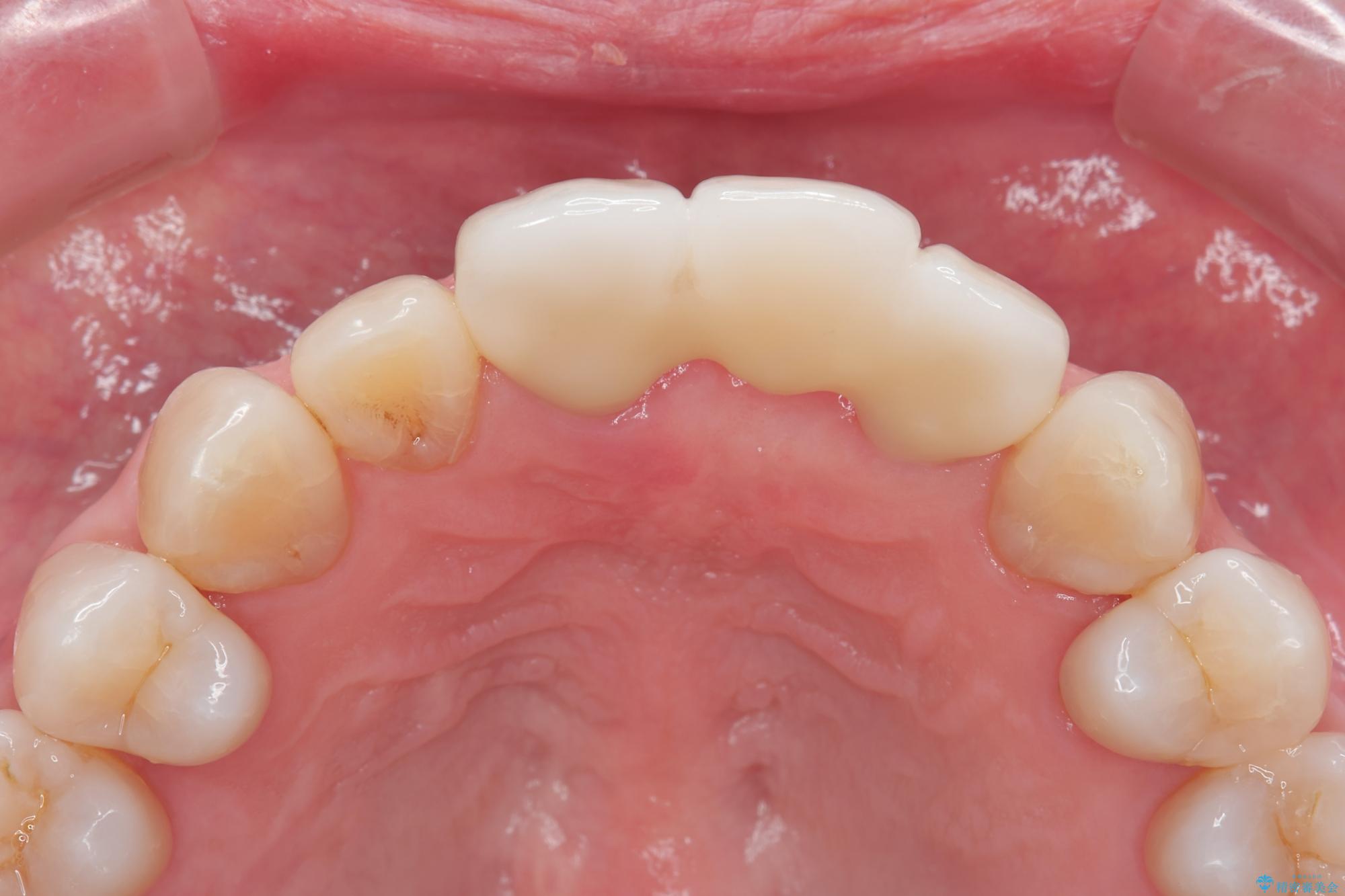 歯肉のボリュームはしっかりと改善し、色調にも優れた審美的なジルコニアセラミックブリッジを装着することができました。