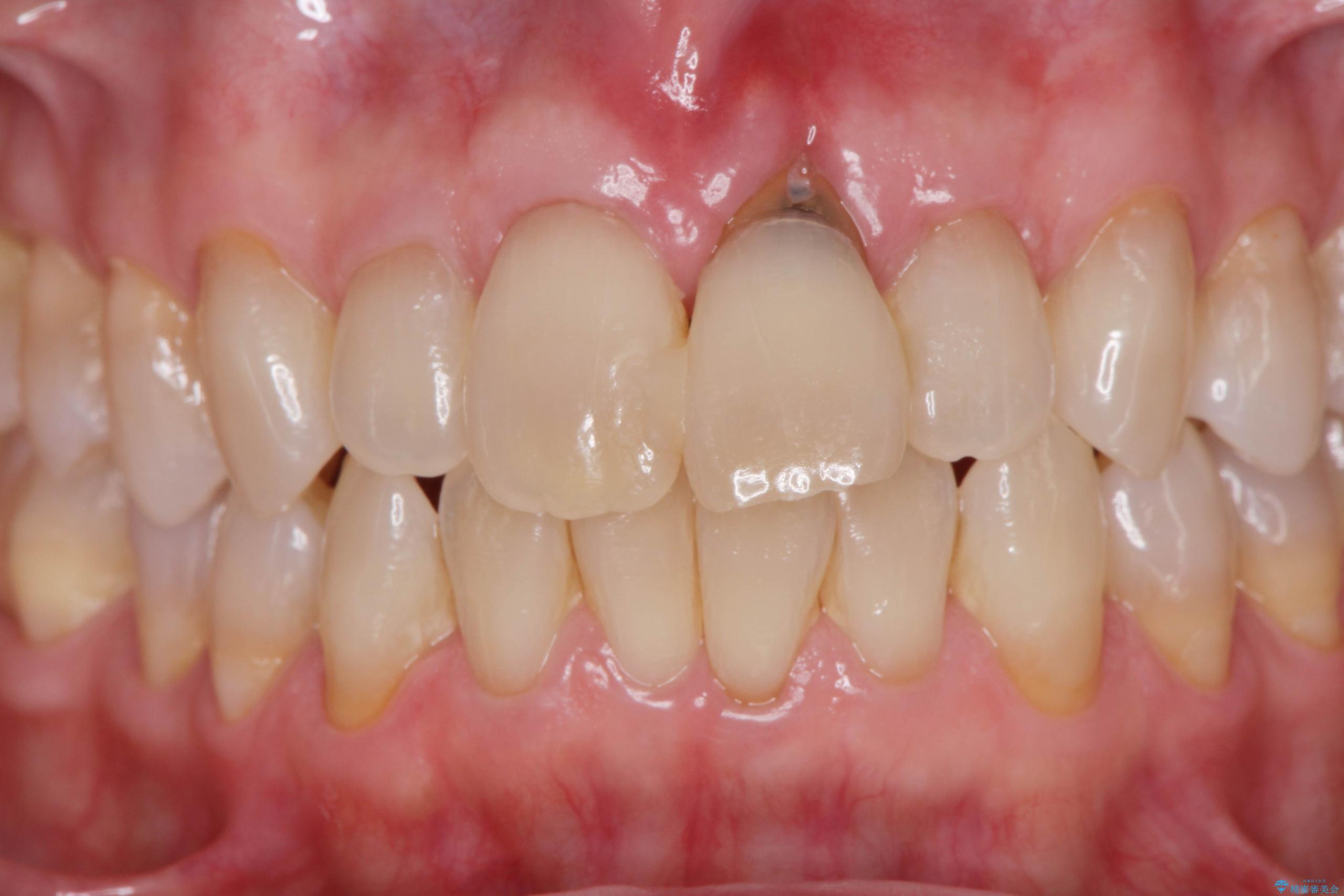 精査の結果、当該する前歯には破折が見られ抜歯を余儀なくされました。