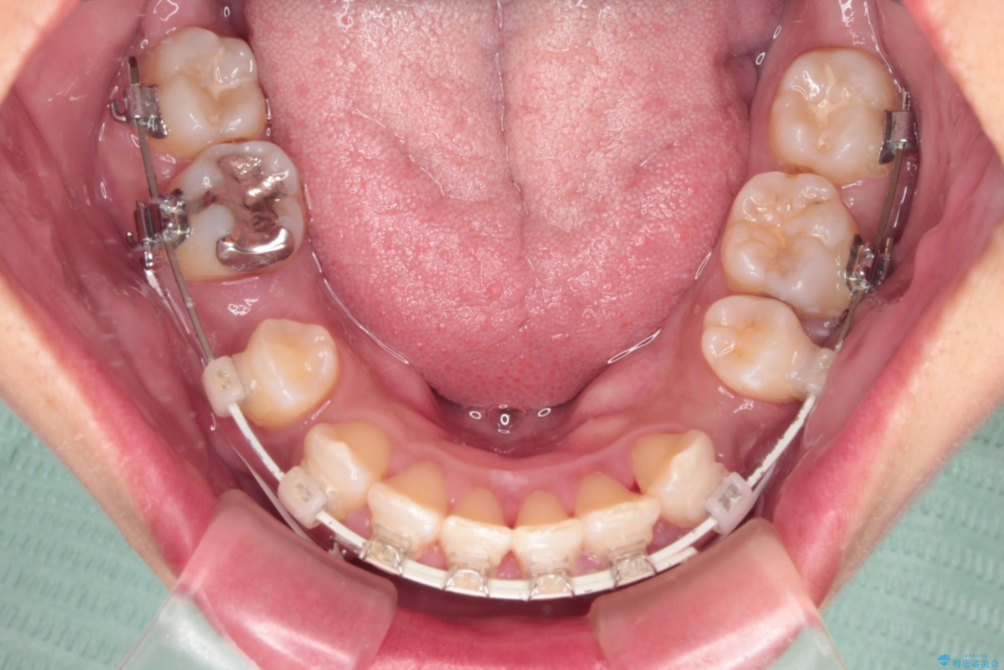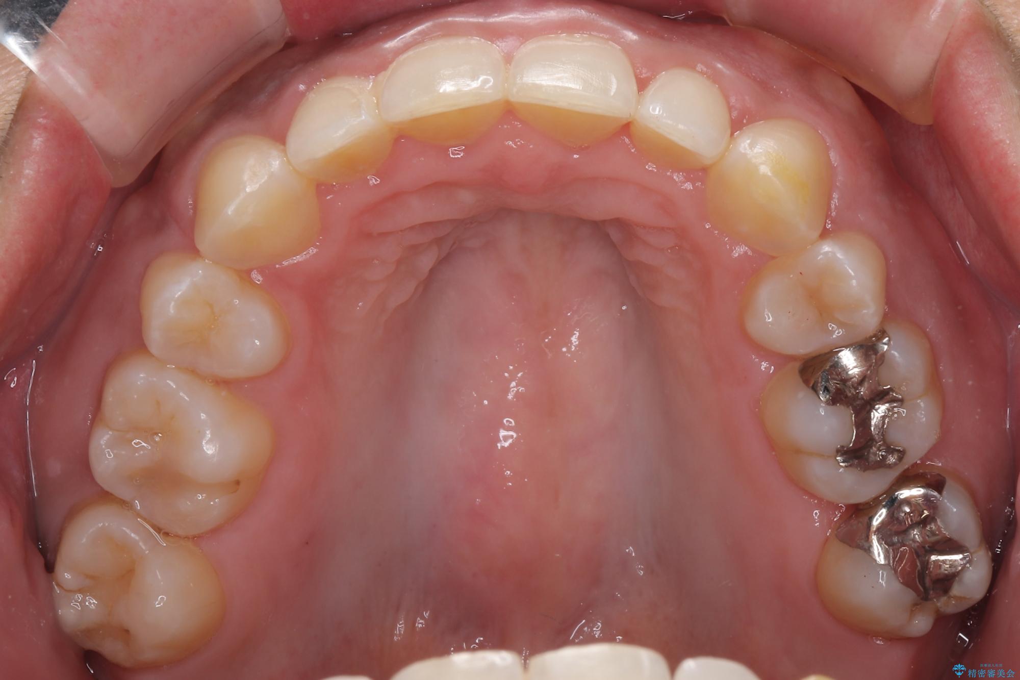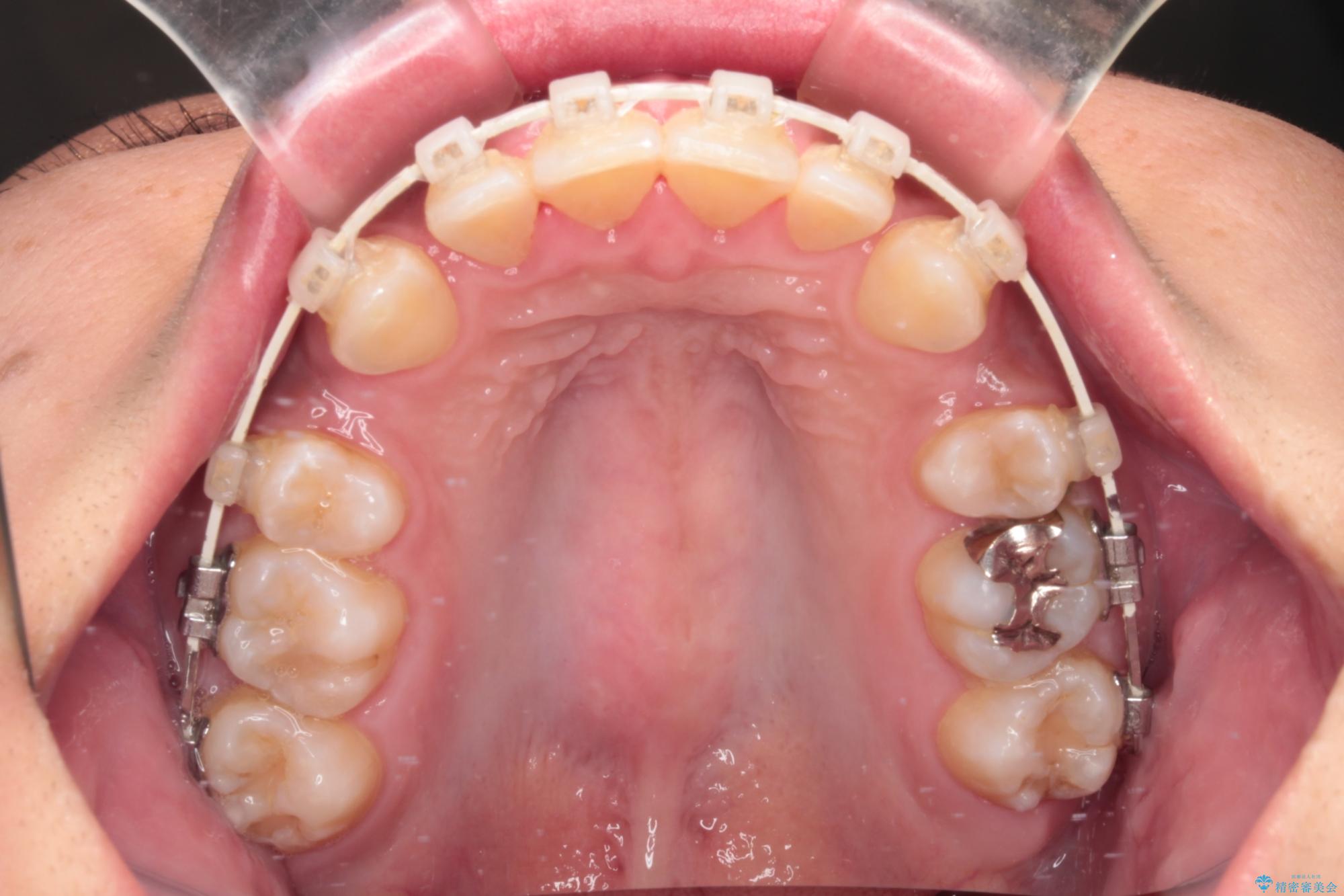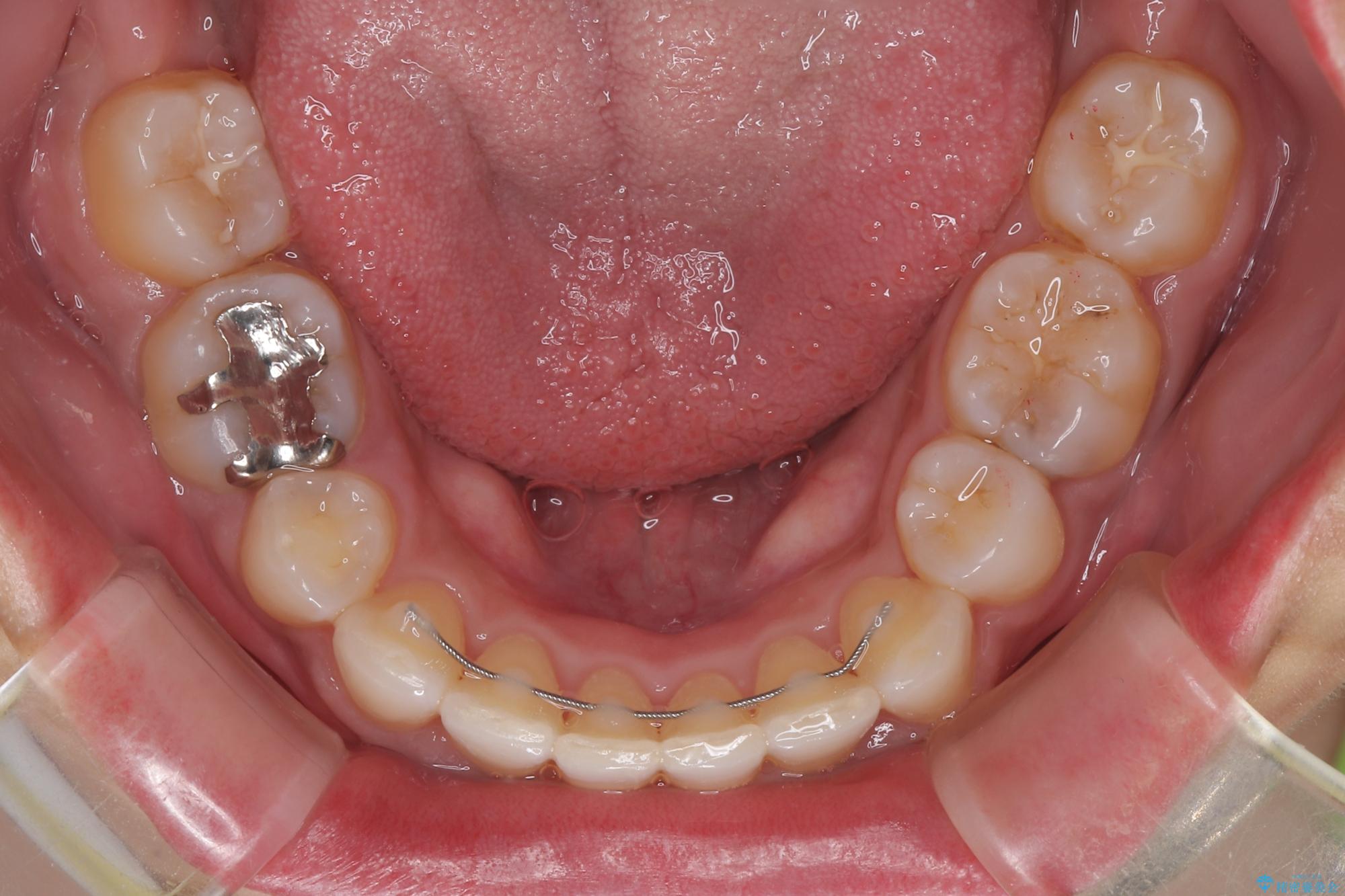 「矯正装置が目立つのは避けたい」というご希望があったため、プラスチックブラケット+コーティングワイヤーを使用した審美装置を選択しました。