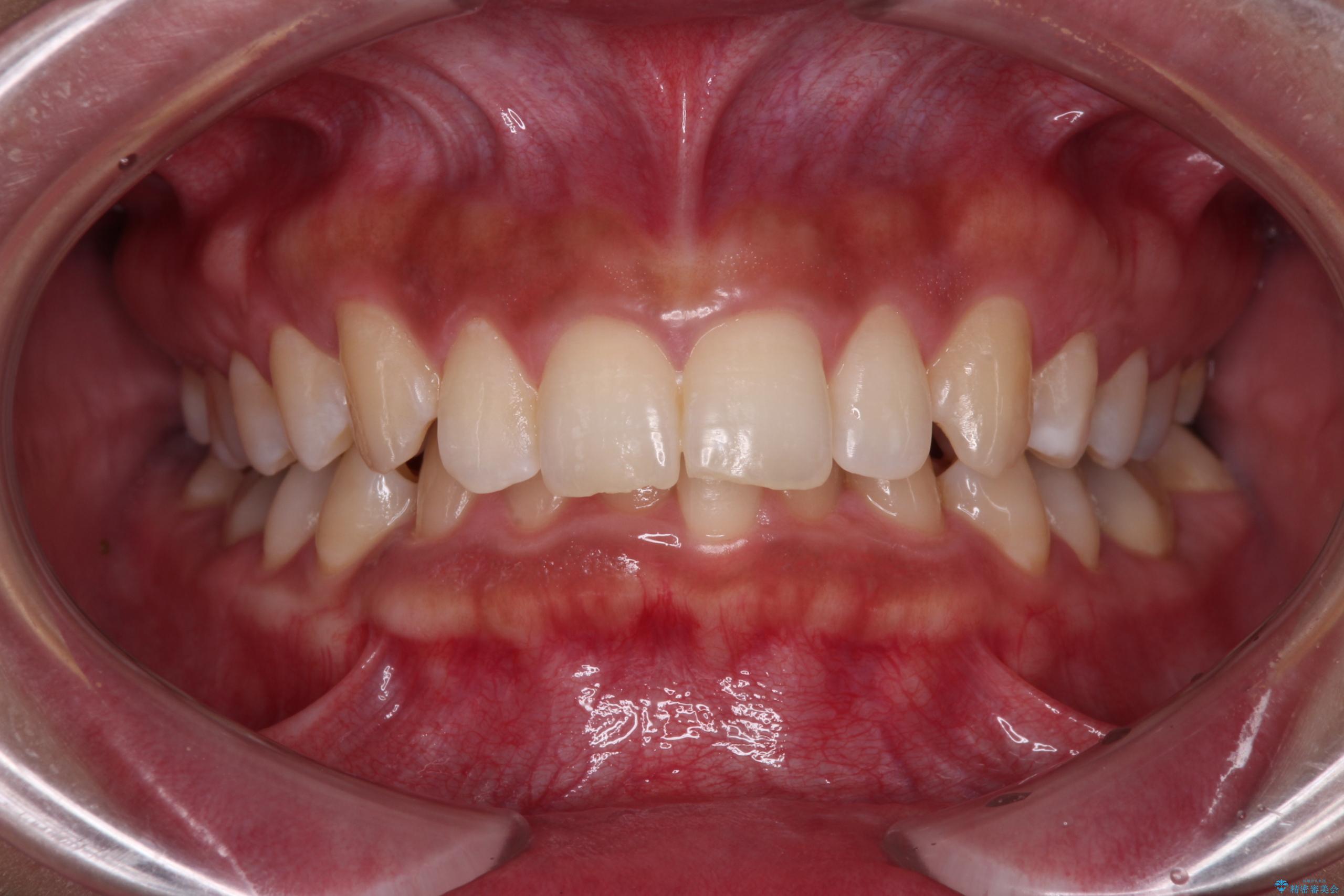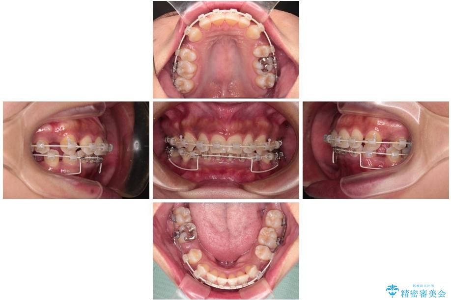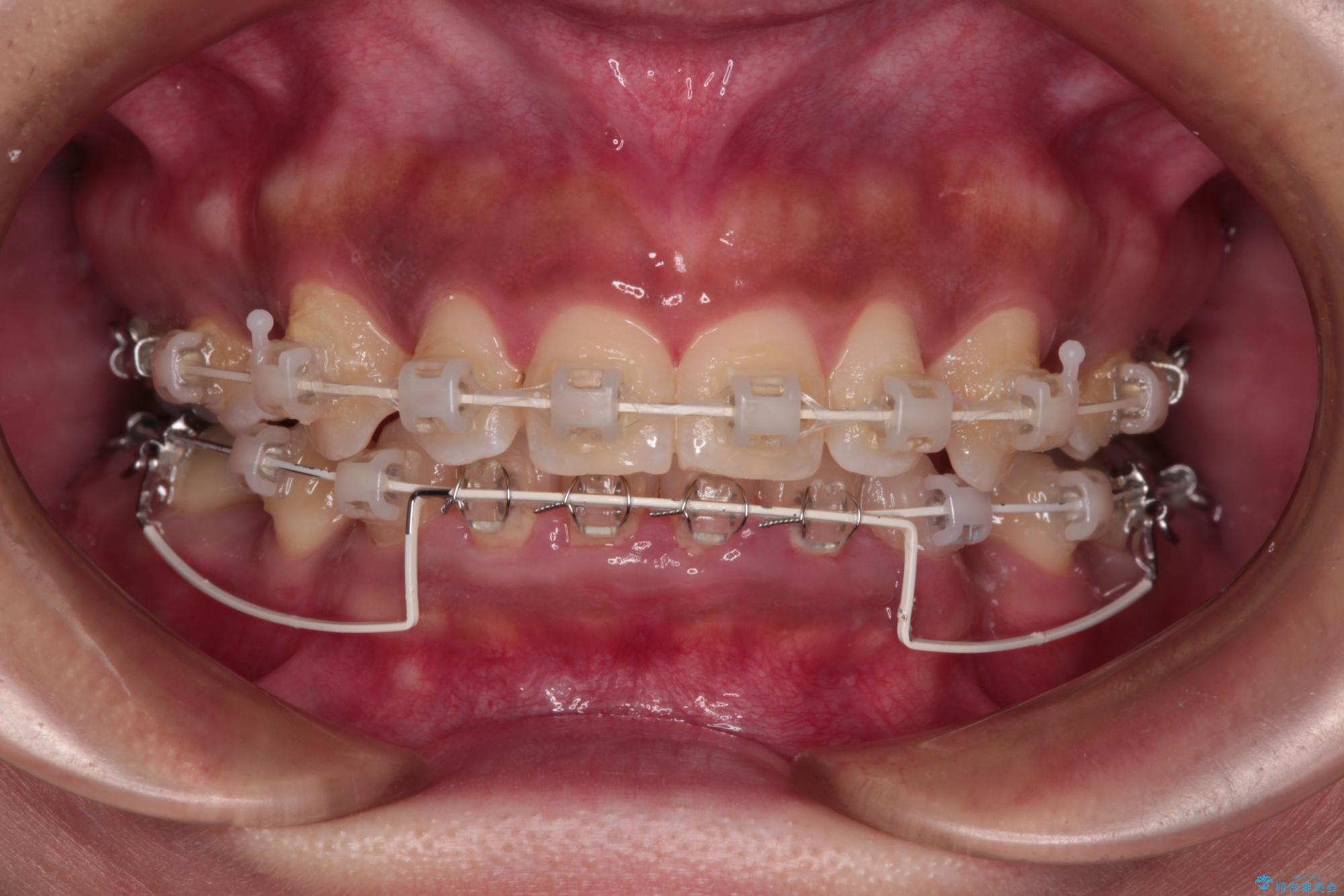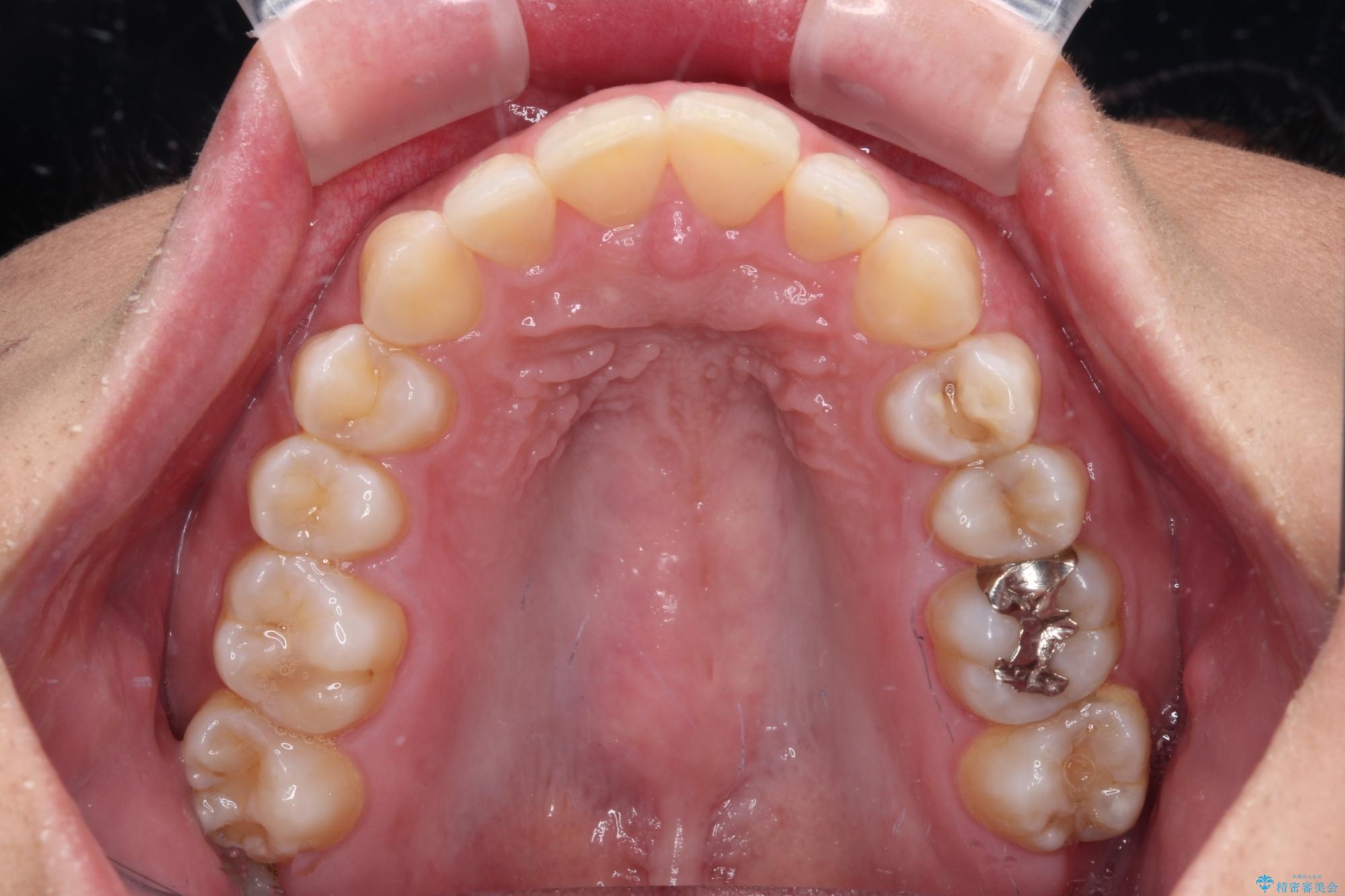 「矯正装置が目立つのは避けたい」というご希望があったため、プラスチックブラケット+コーティングワイヤーを使用した審美装置を選択しました。