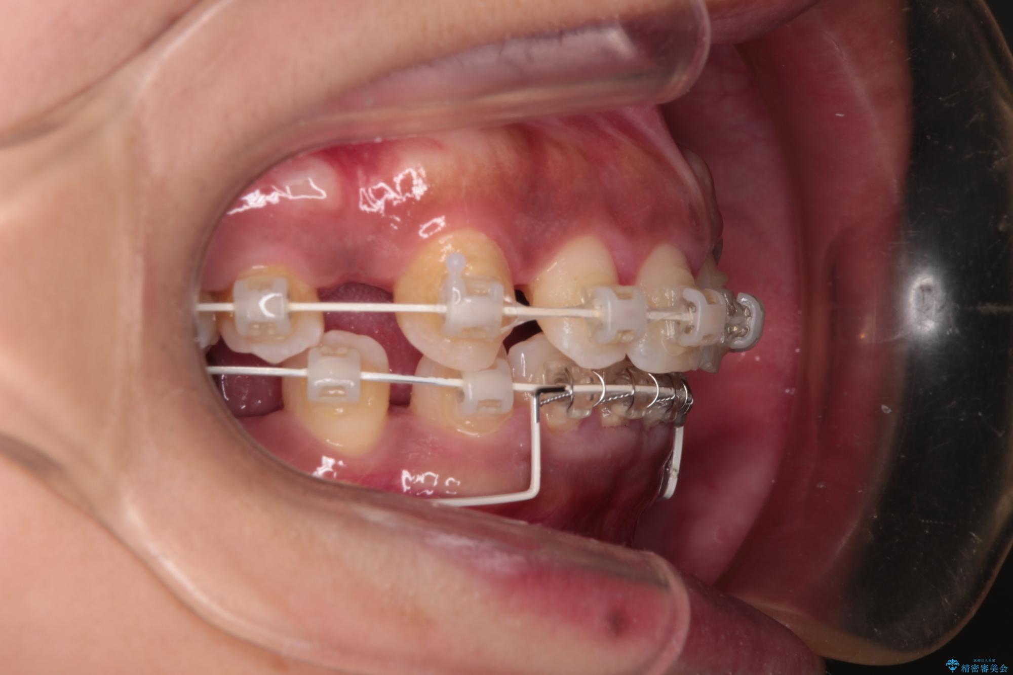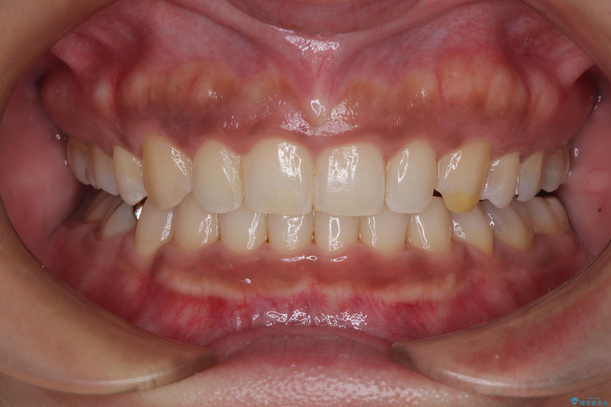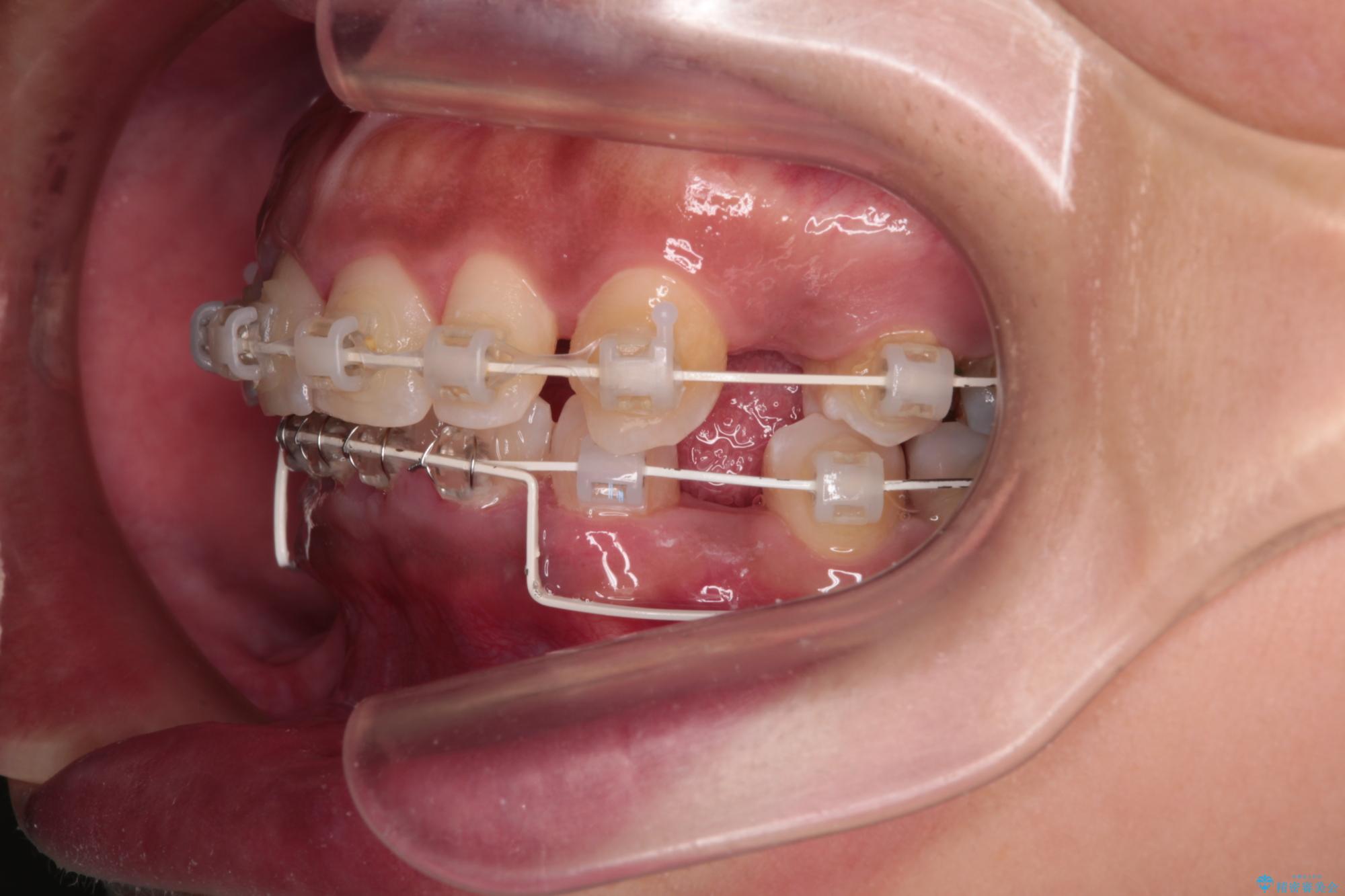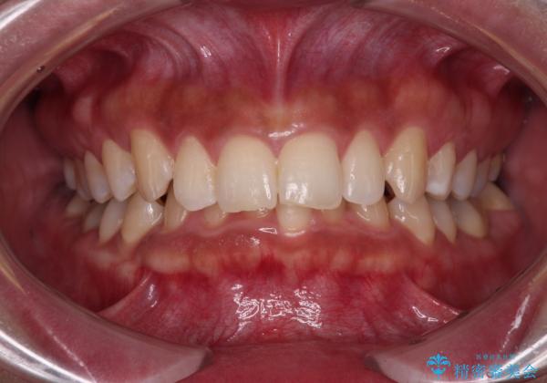 「矯正装置が目立つのは避けたい」というご希望があったため、プラスチックブラケット+コーティングワイヤーを使用した審美装置を選択しました。