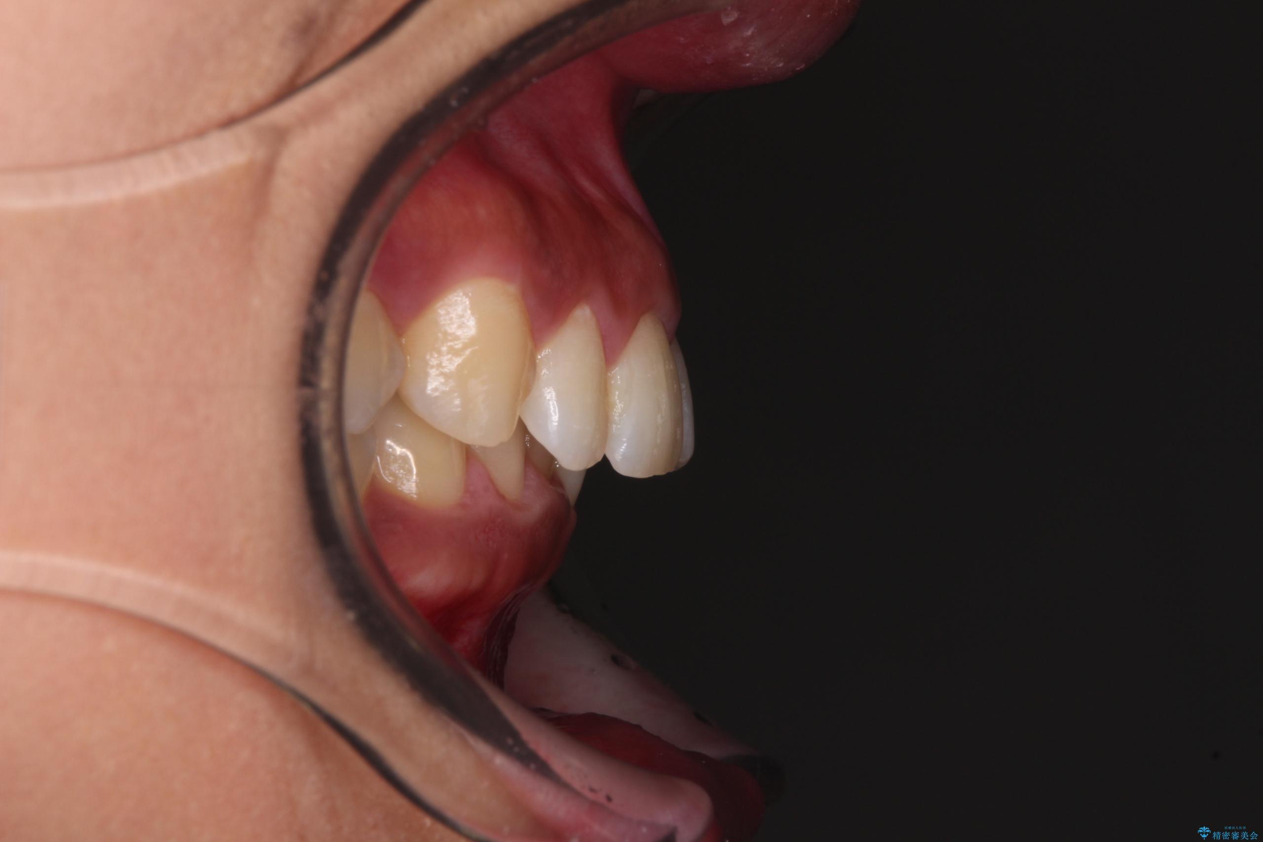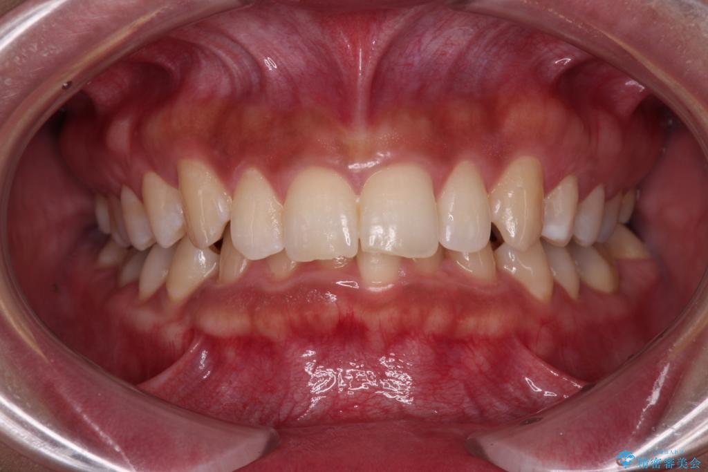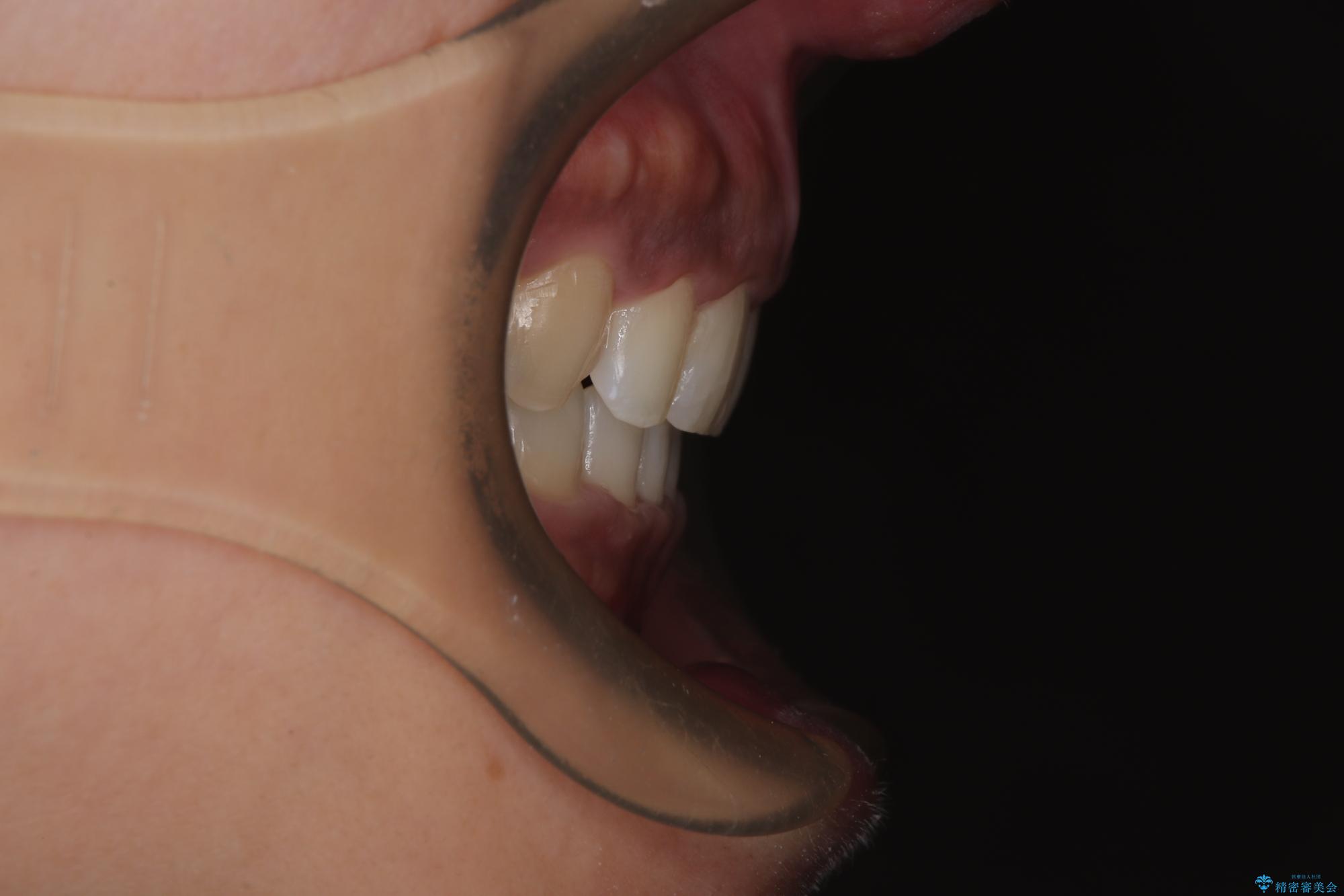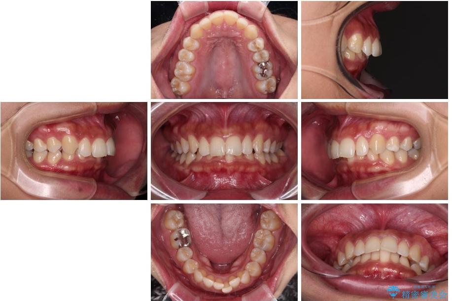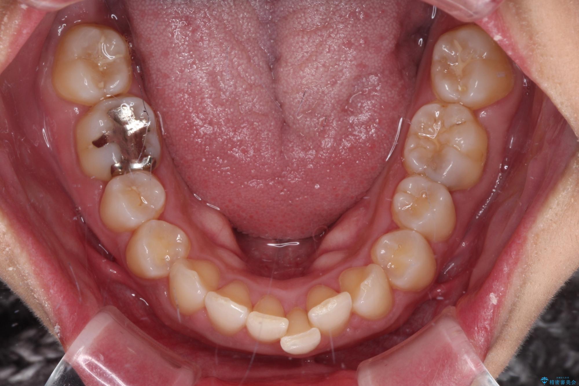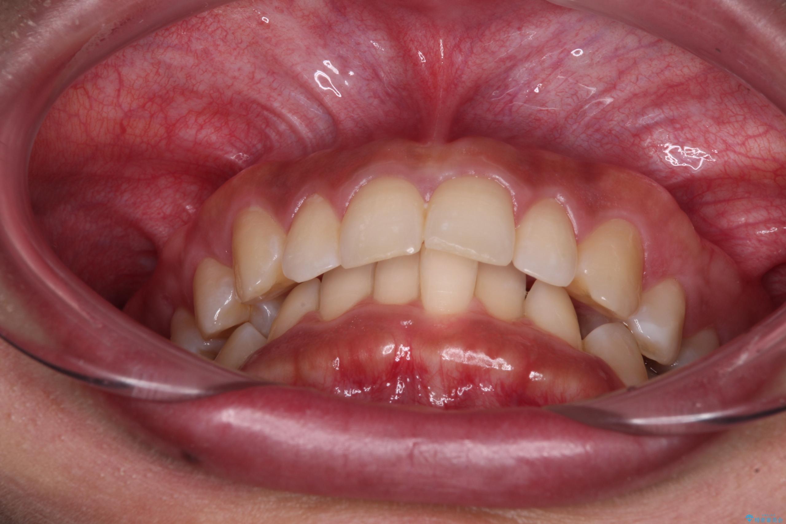 - 下顎前歯部には叢生が認められ、口を自然に閉じにくい状態でした。また、噛み合わせが深い「ディープバイト」の状態で、見た目だけでなく将来的な奥歯への負担も懸念されました。