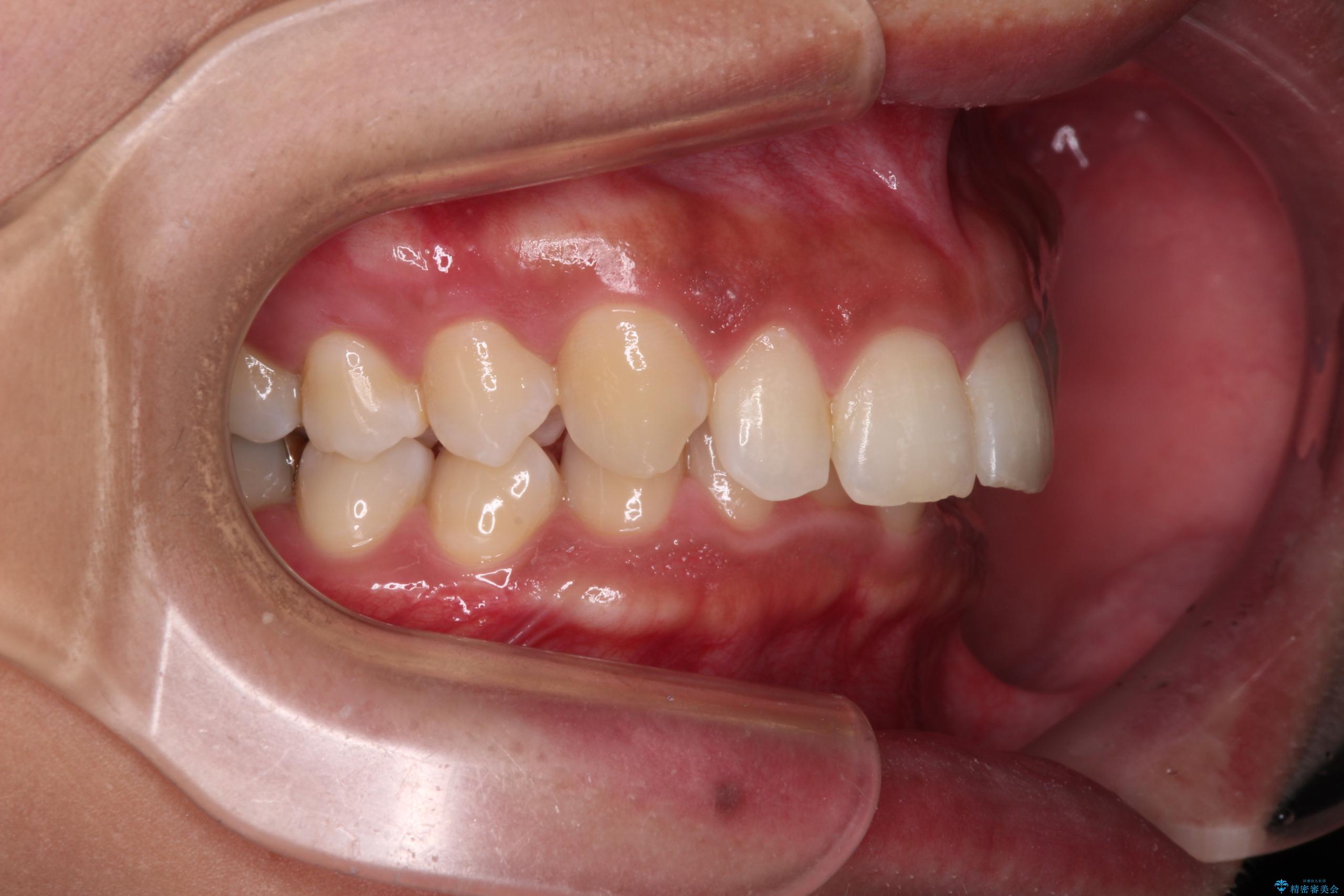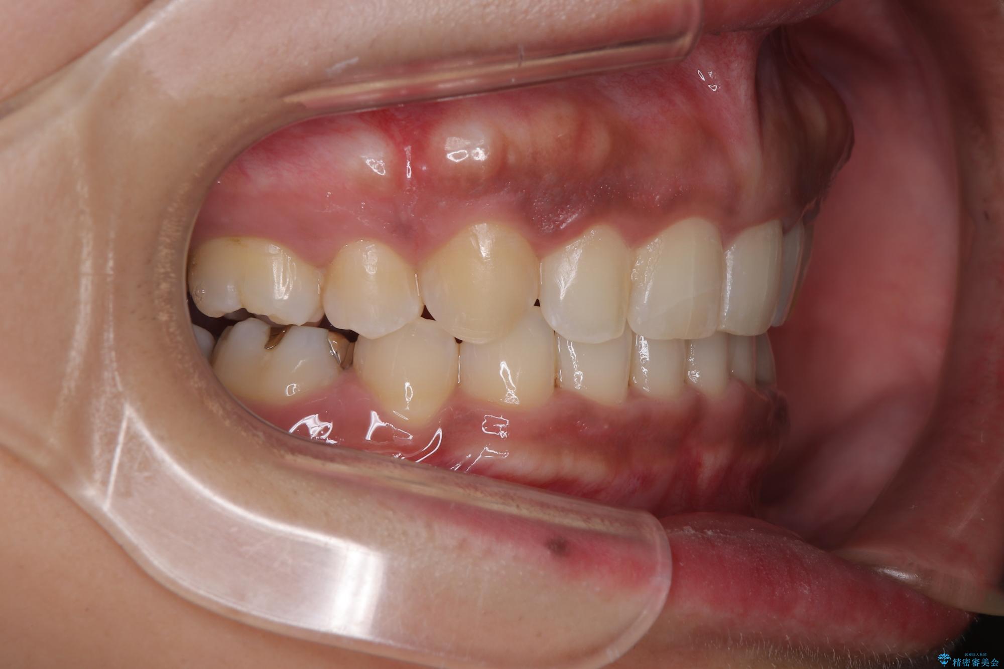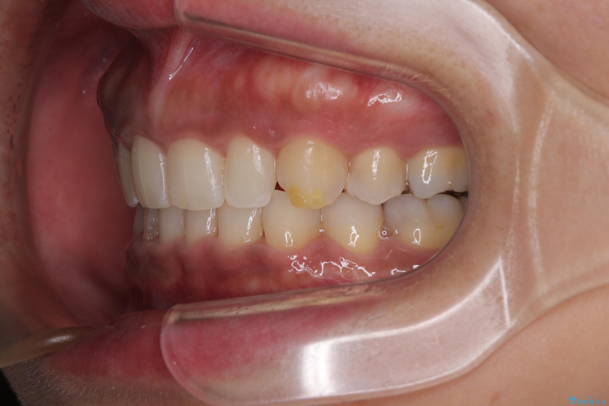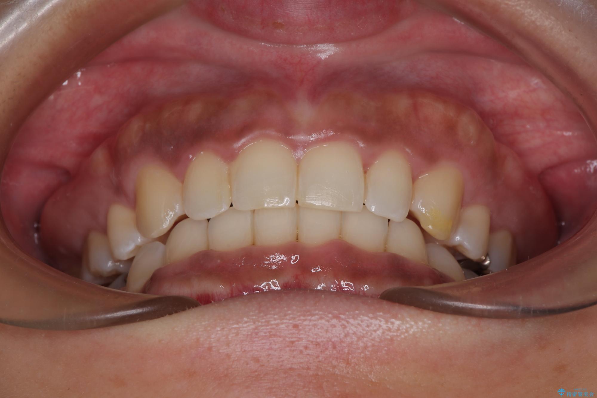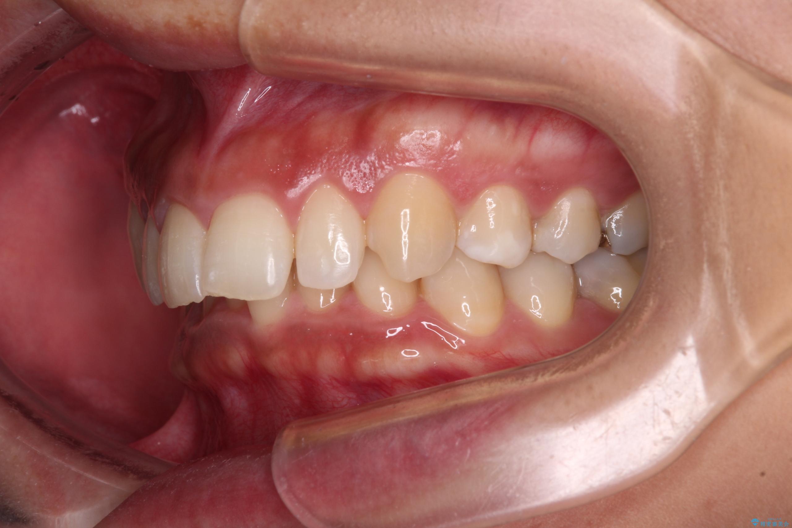 - 下顎前歯部には叢生が認められ、口を自然に閉じにくい状態でした。また、噛み合わせが深い「ディープバイト」の状態で、見た目だけでなく将来的な奥歯への負担も懸念されました。