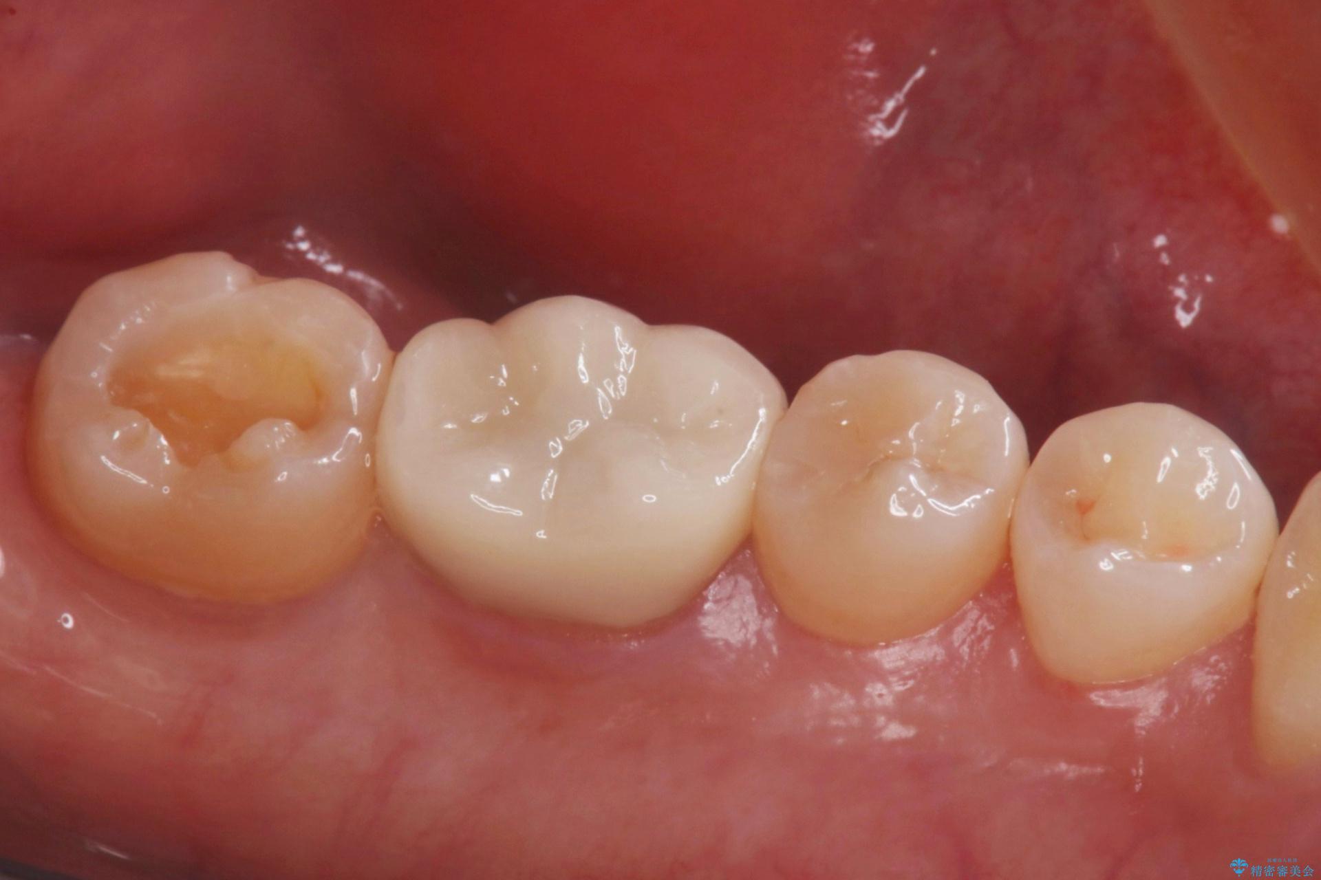 詰め物が取れてしまったところは虫歯になっていたため、虫歯を綺麗に取り除いて詰め物にしていく治療計画を立てました。